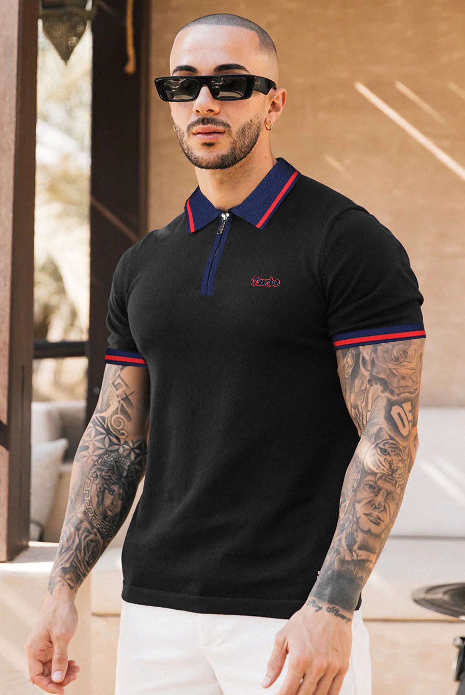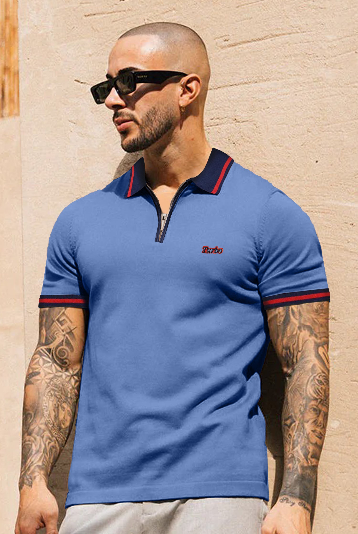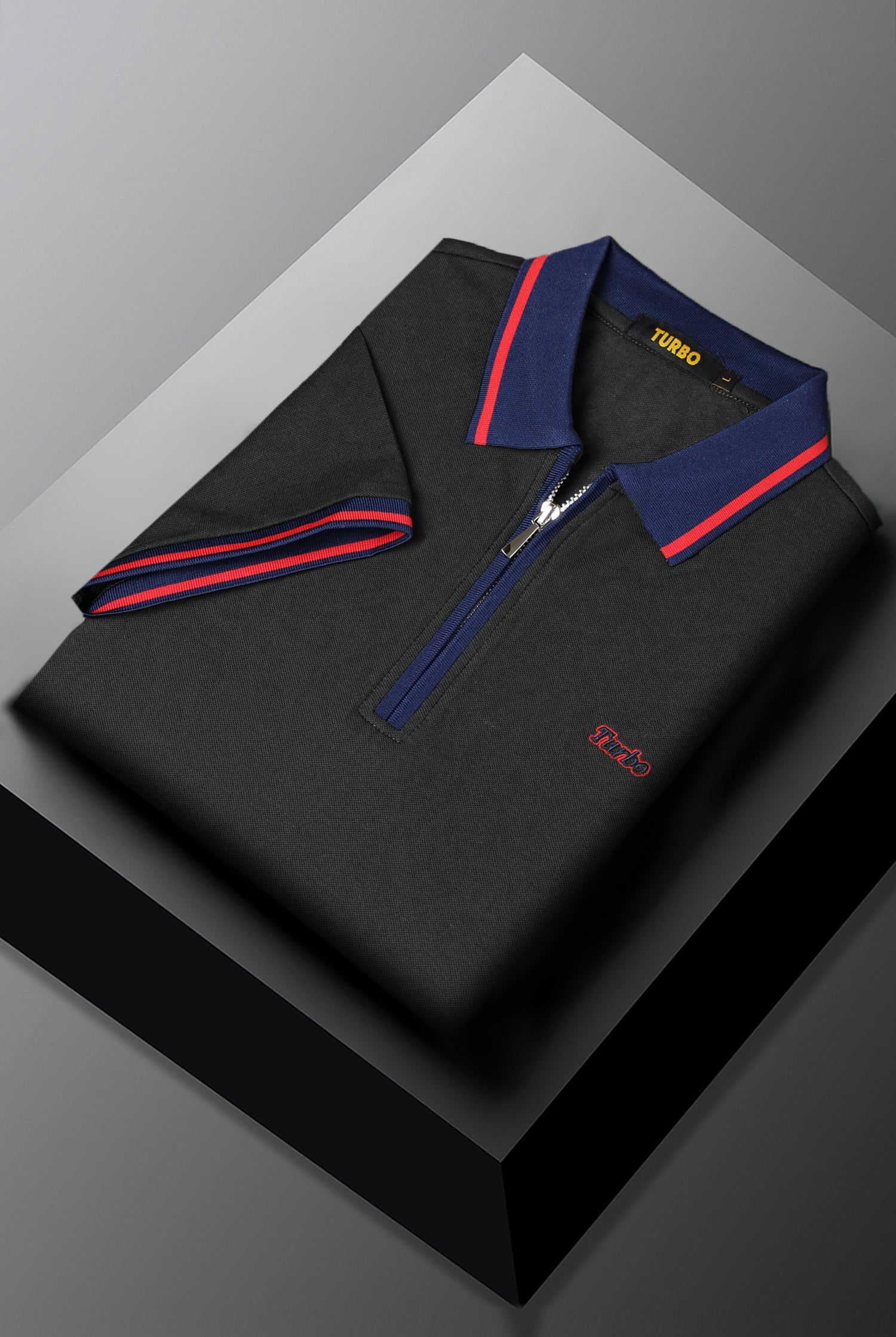 Turbo Record Zip Collar-Block Men's Polo Shirt