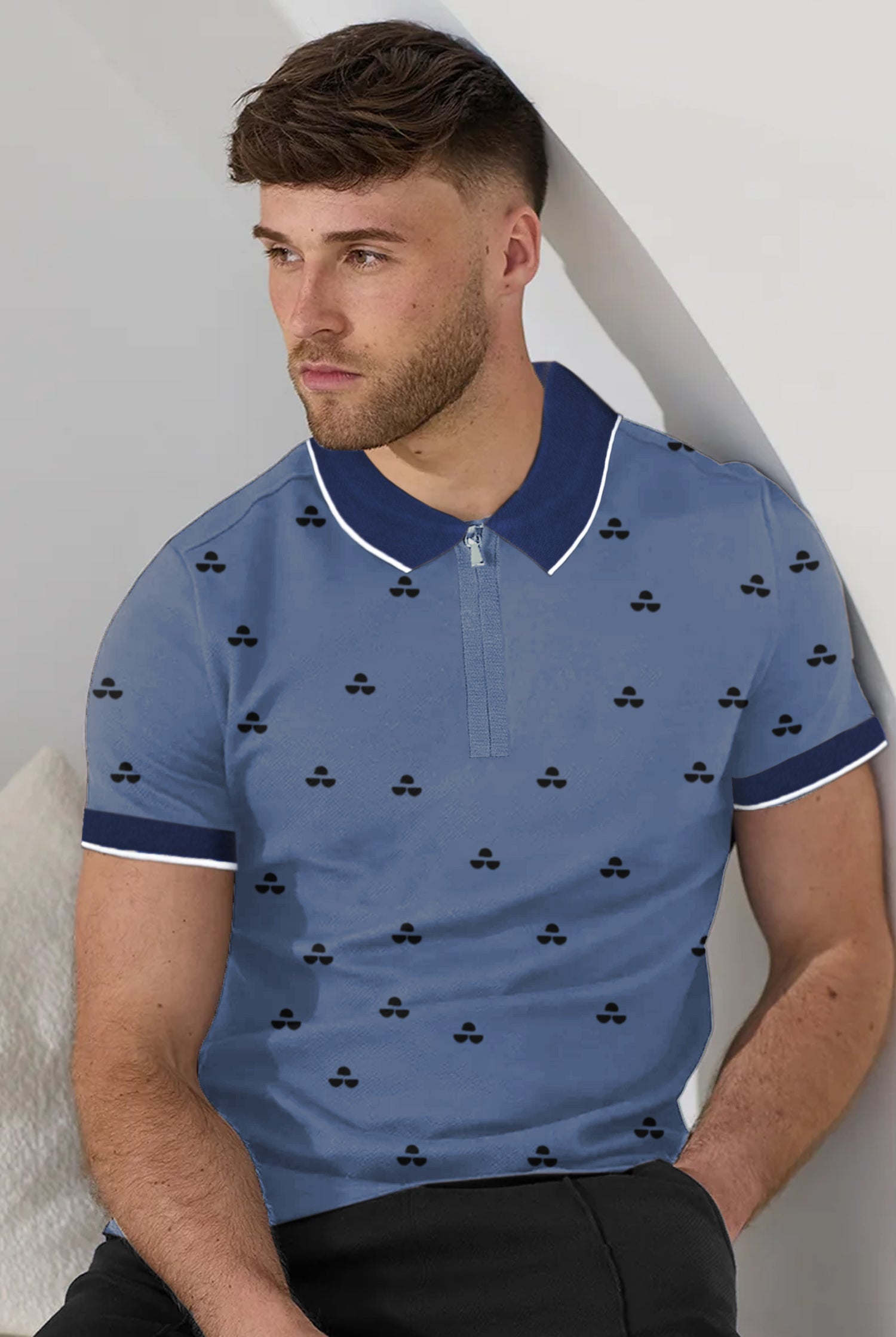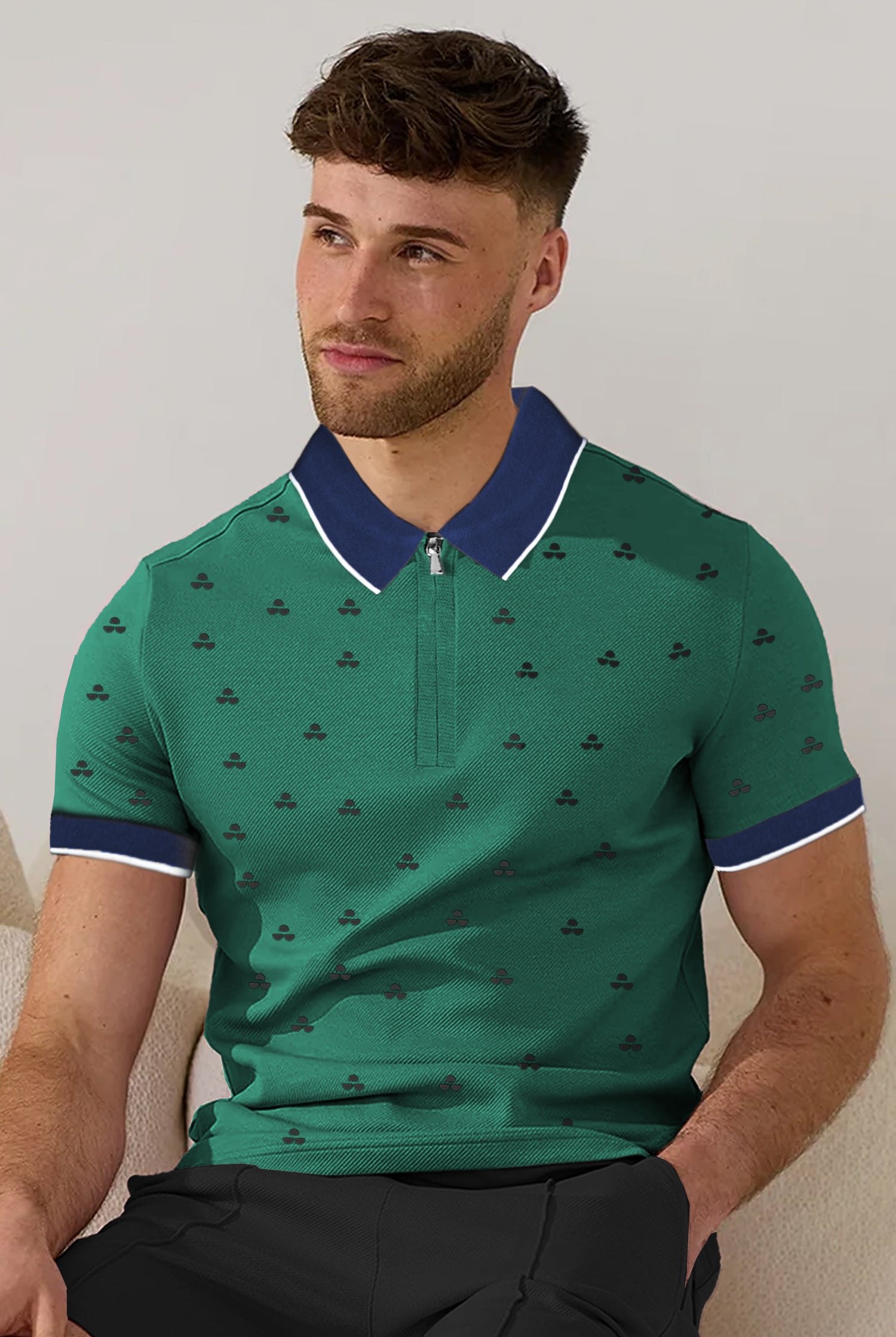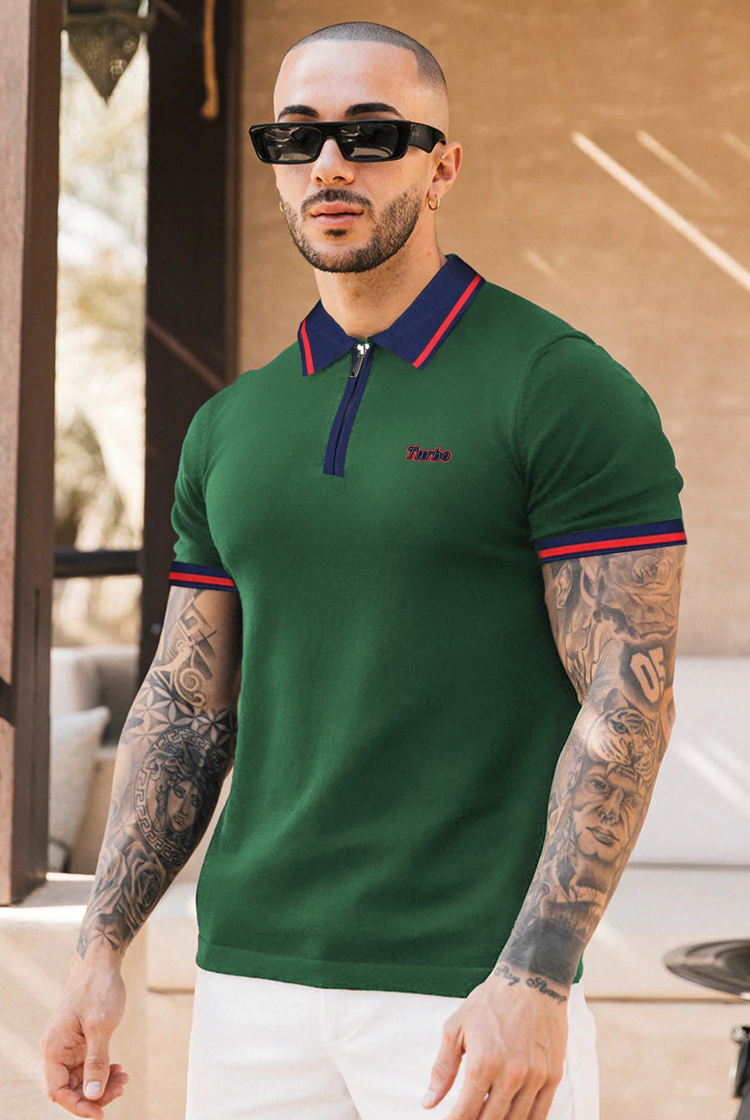 Turbo Record Zip Collar-Block Men's Polo Shirt