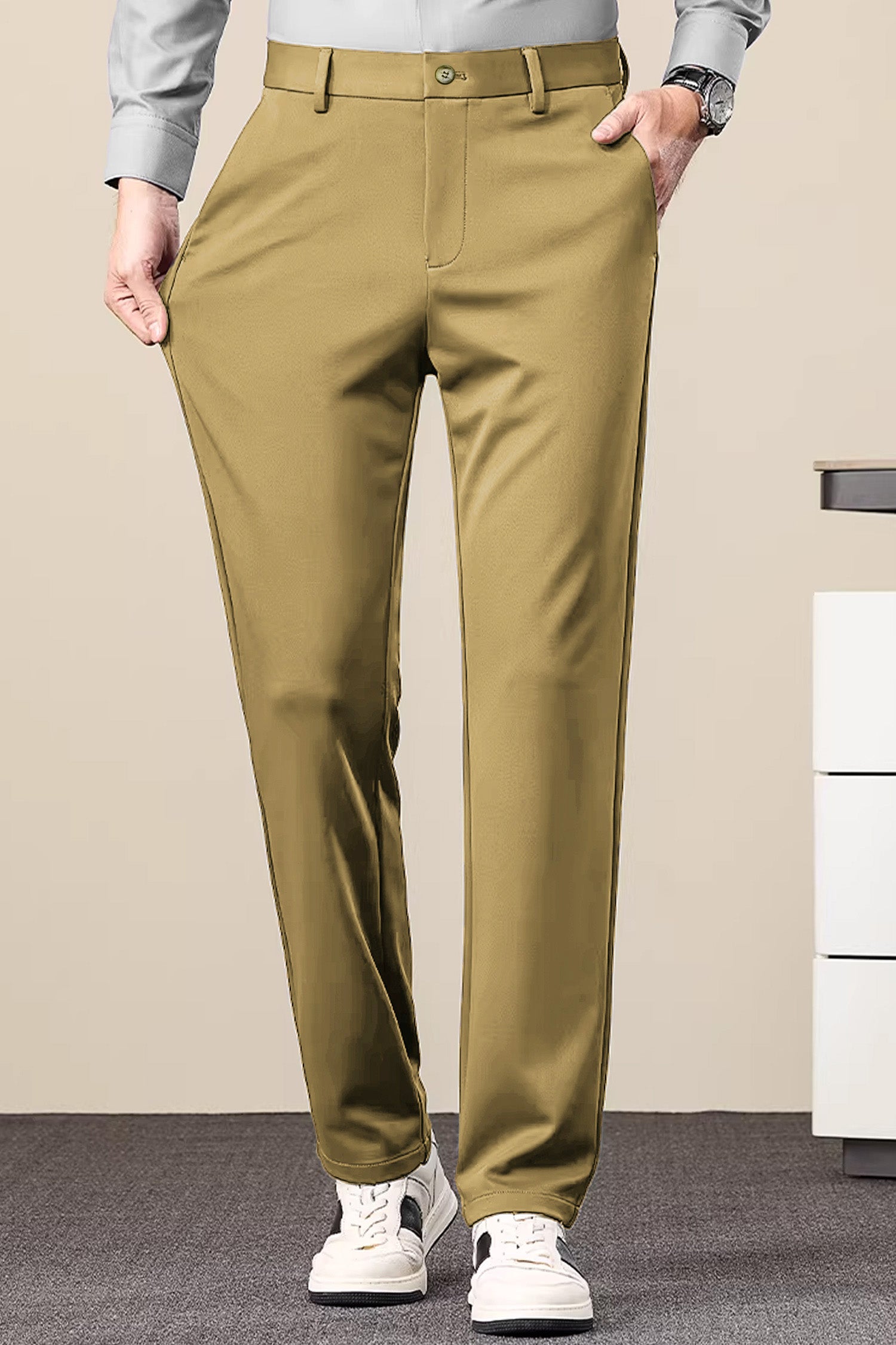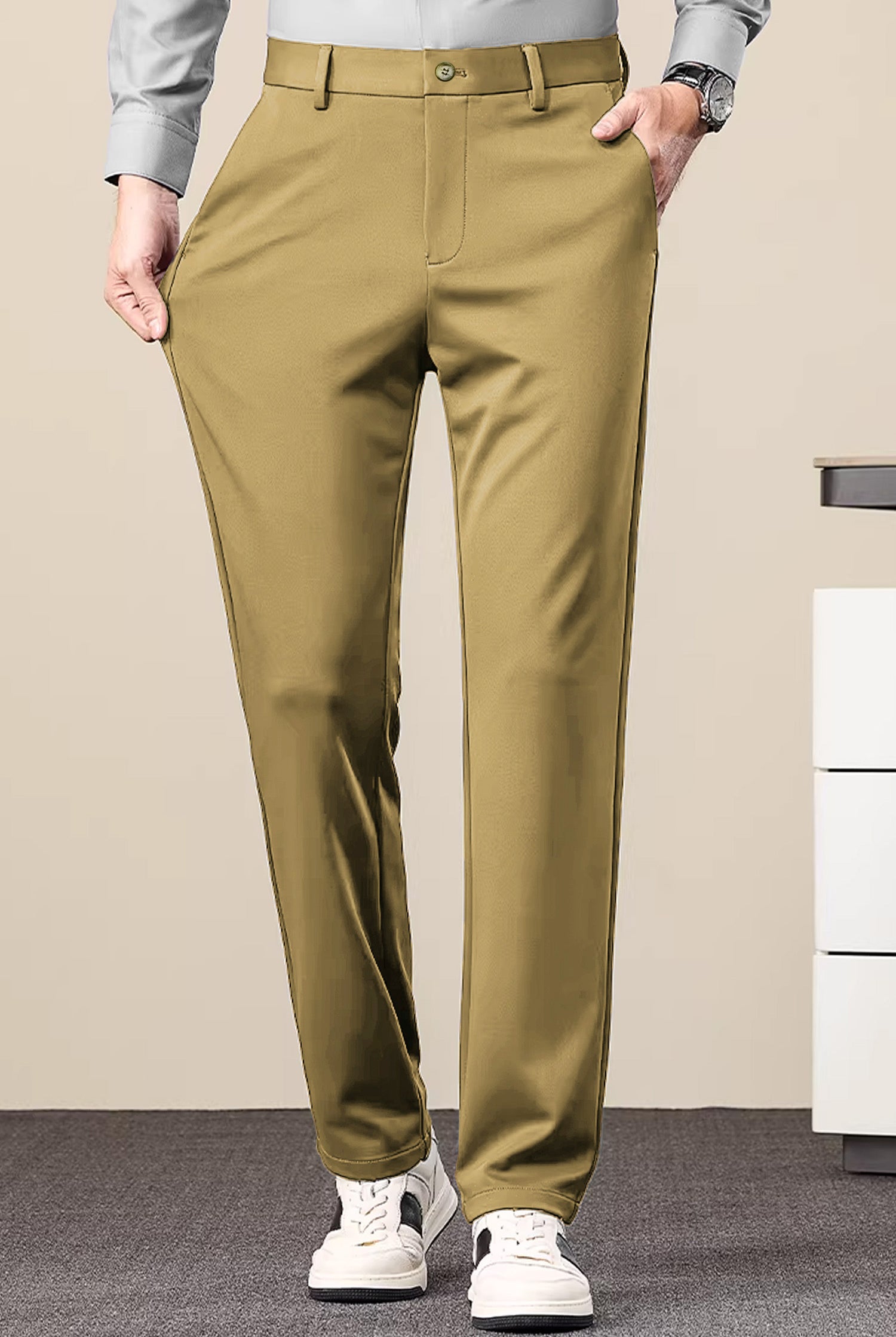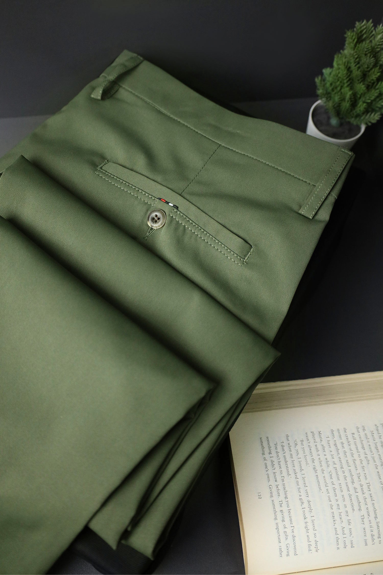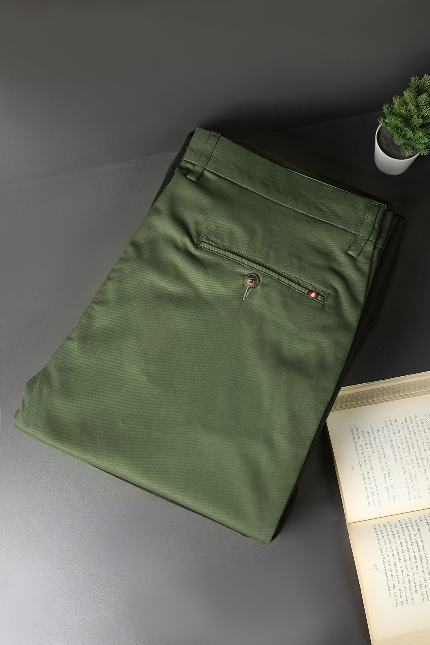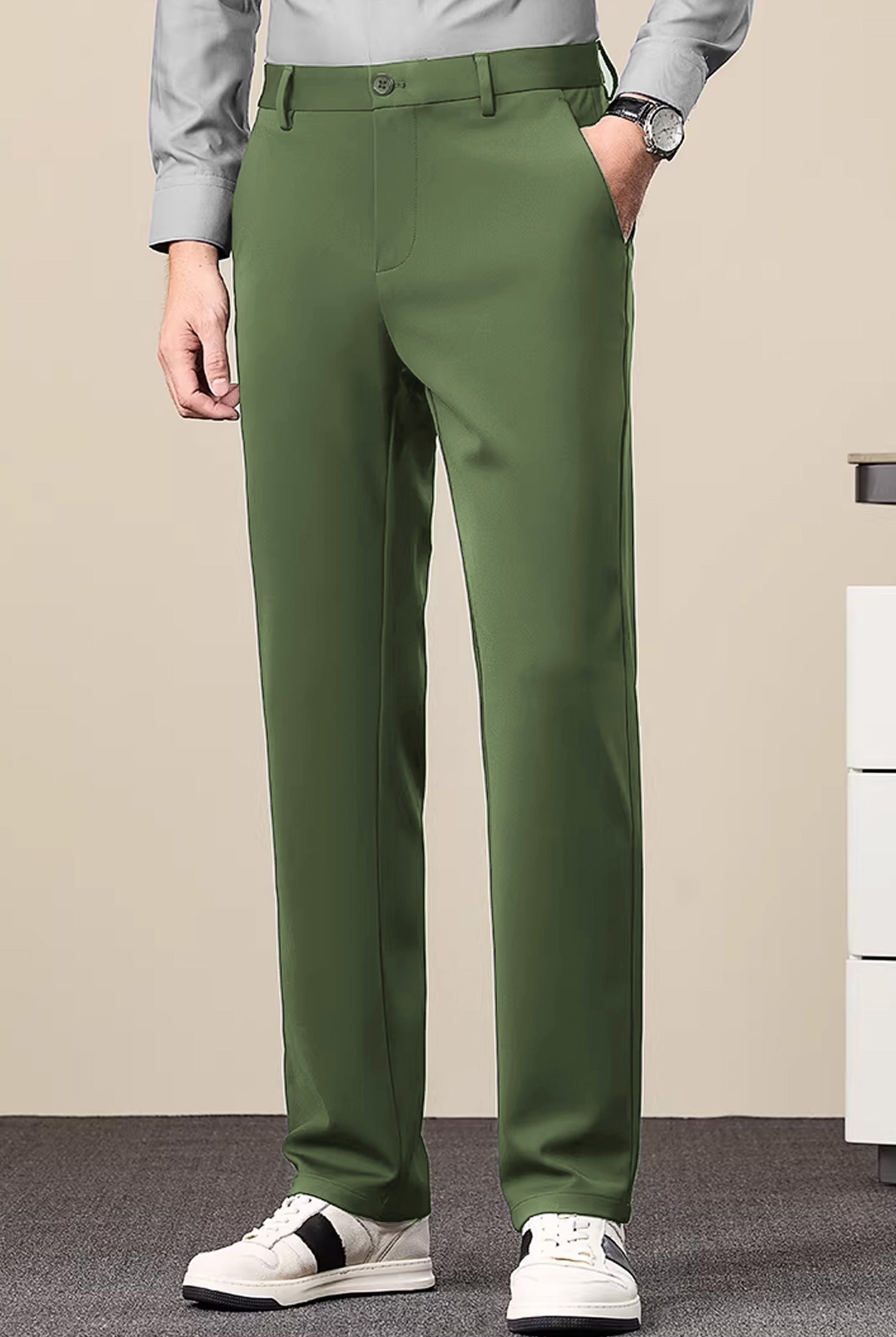 Turbo Axis Intelli-Drape Refined Fit Twil Cotton Pent In Olive Green