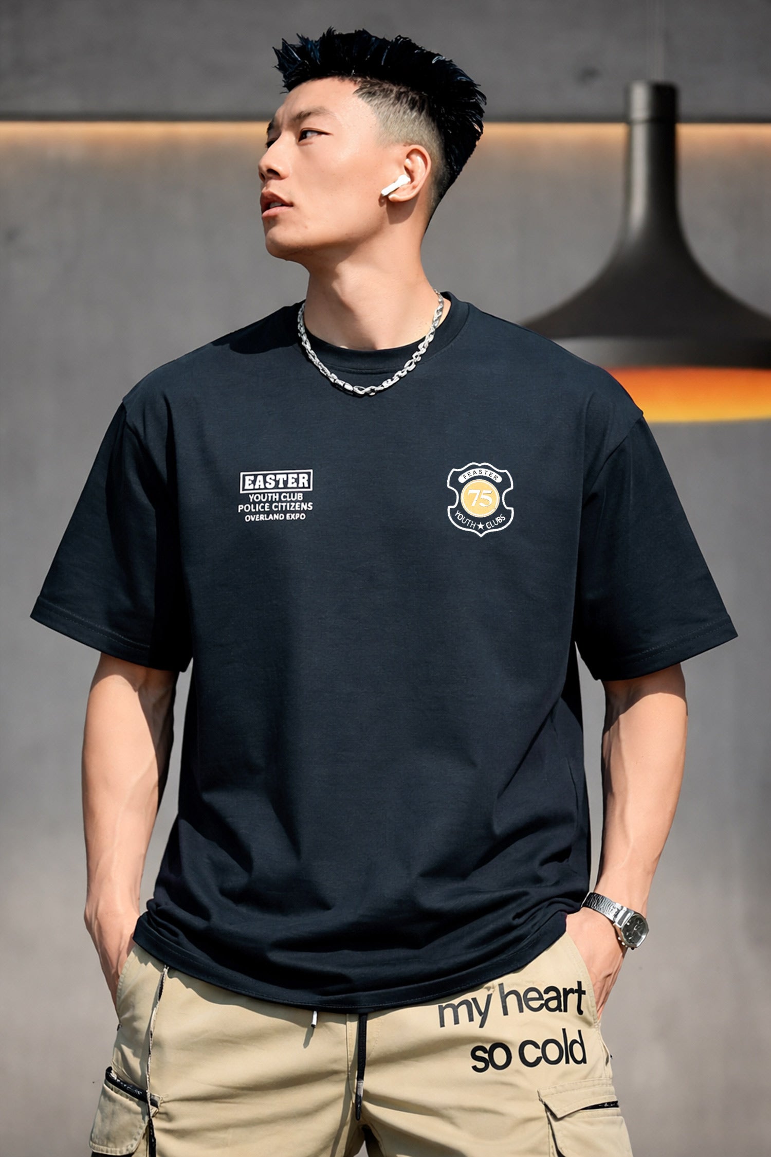 Mens Urban Fashion Round Neck T-shirt