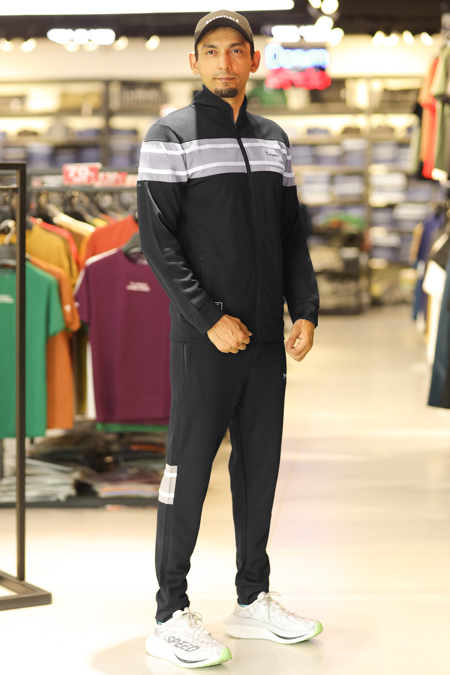 Turbo Color-Block Panel Standing Collar Zipper Tracksuit In Black