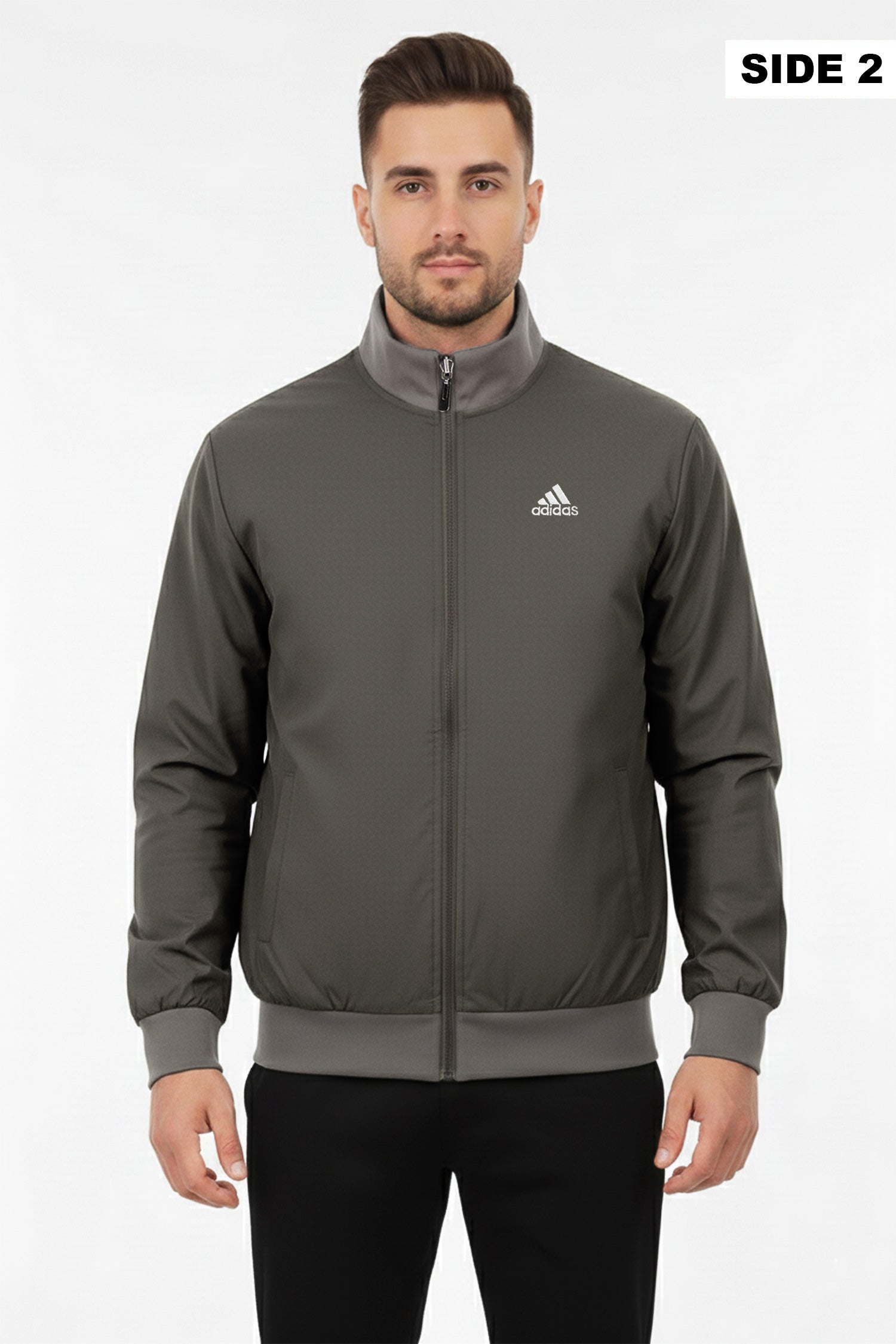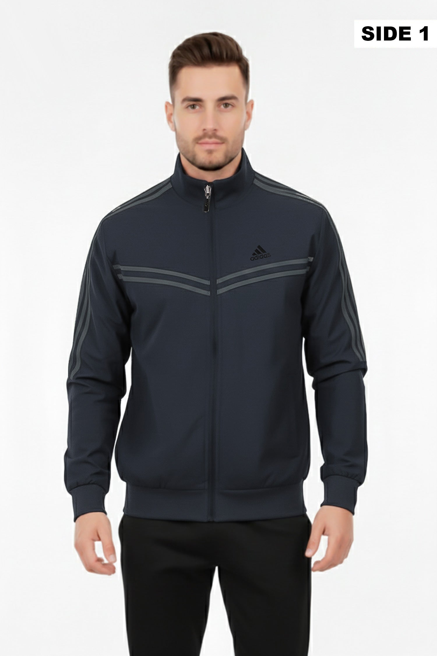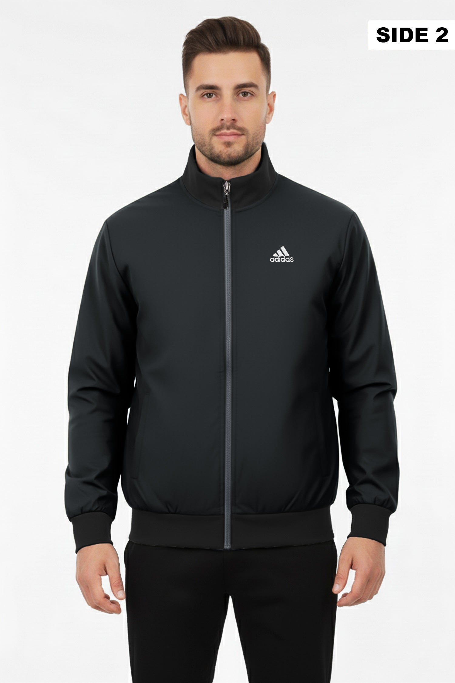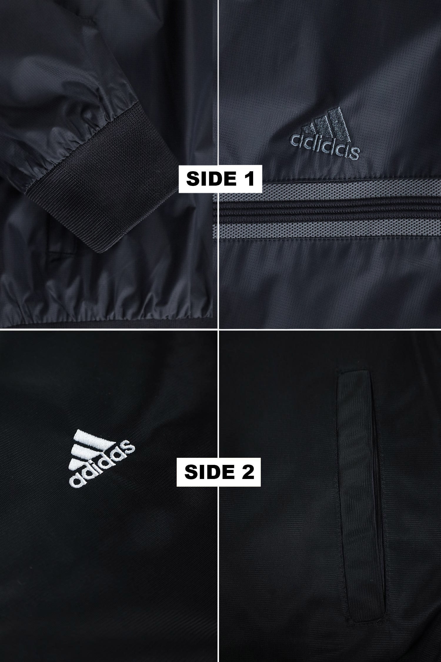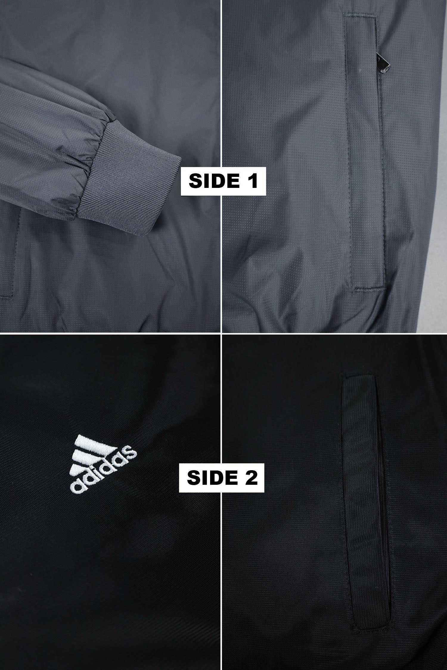- Reversible zip-up track jacket offering two distinct looks in one piece. Crafted from lightweight polyester with a sleek athletic fit, it features signature Adds stripes and logo detailing. Ideal for workouts, travel, or everyday wear—simply flip it to match your mood or outfit.