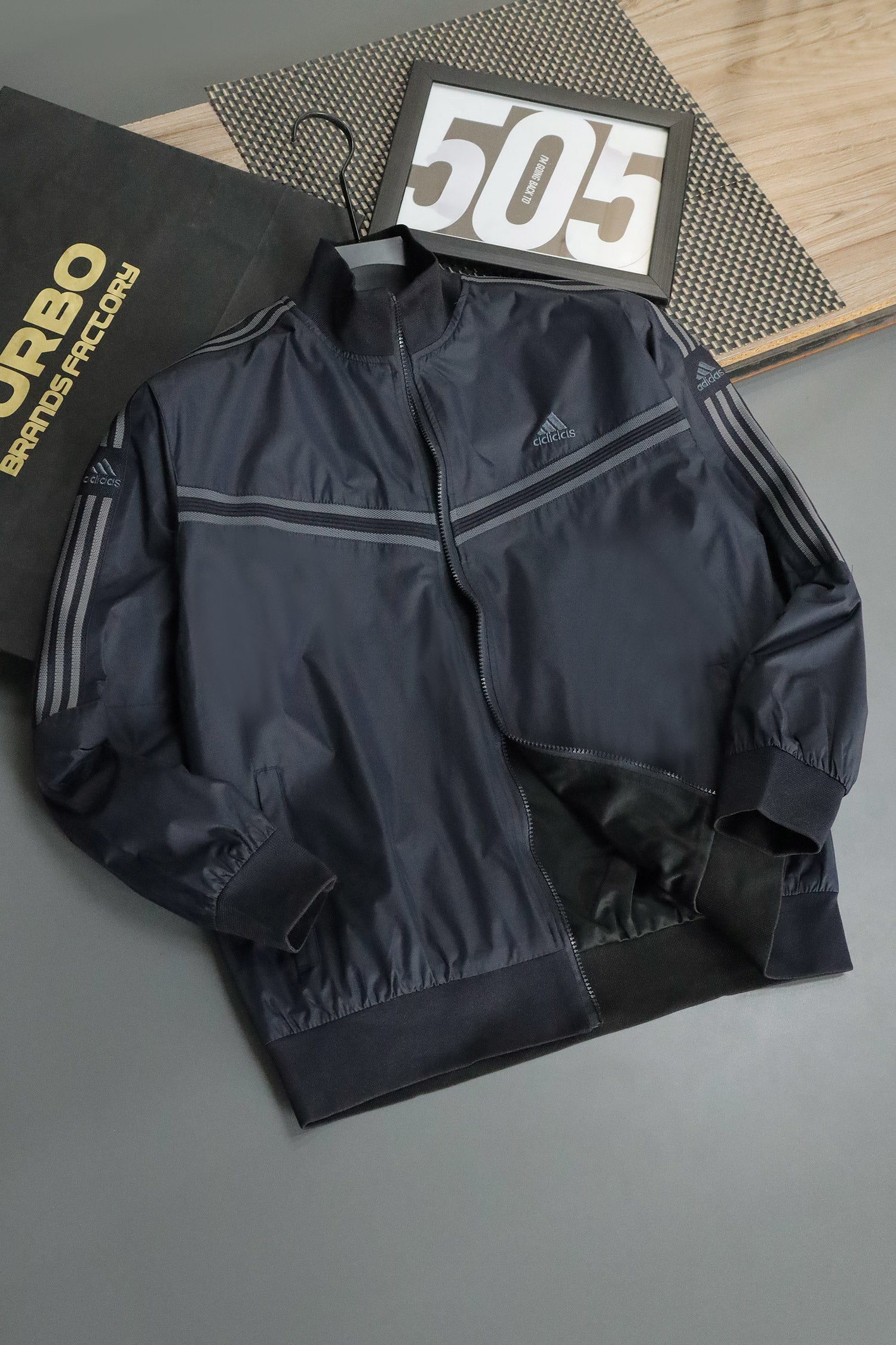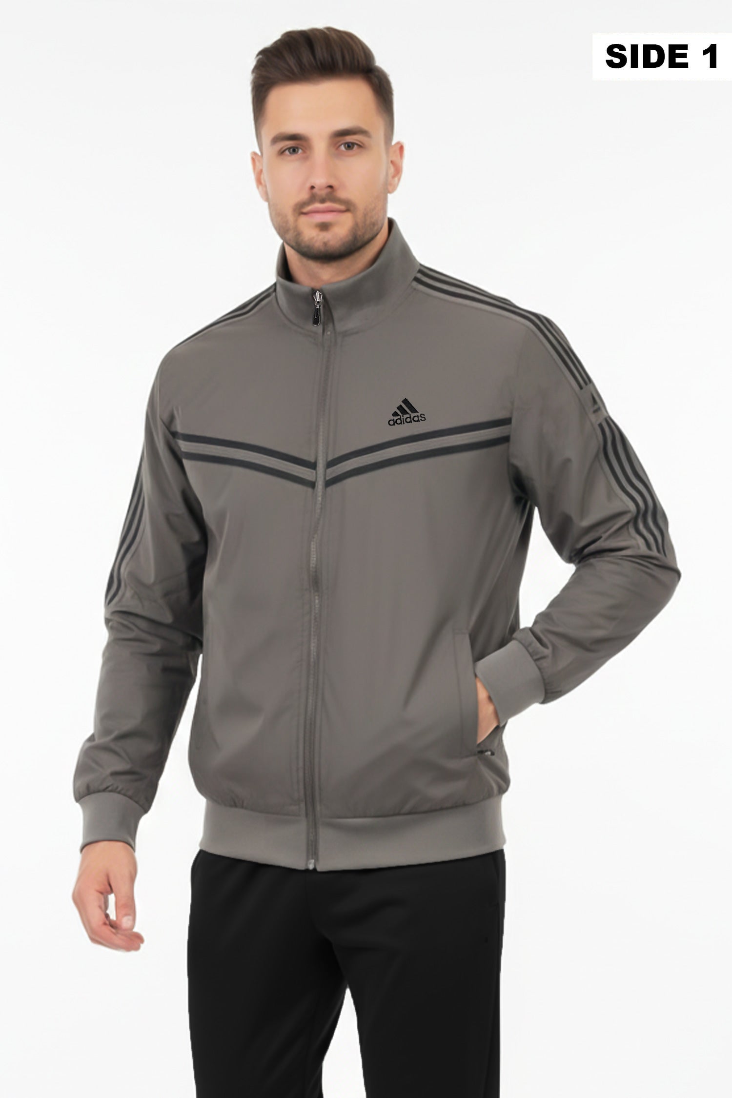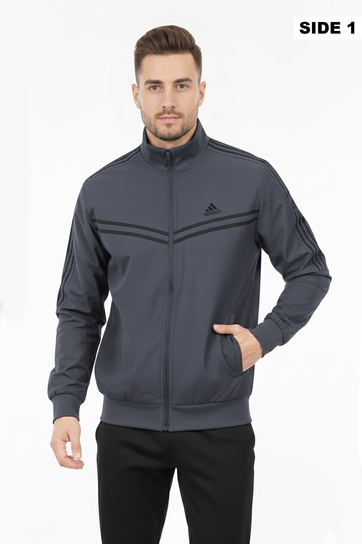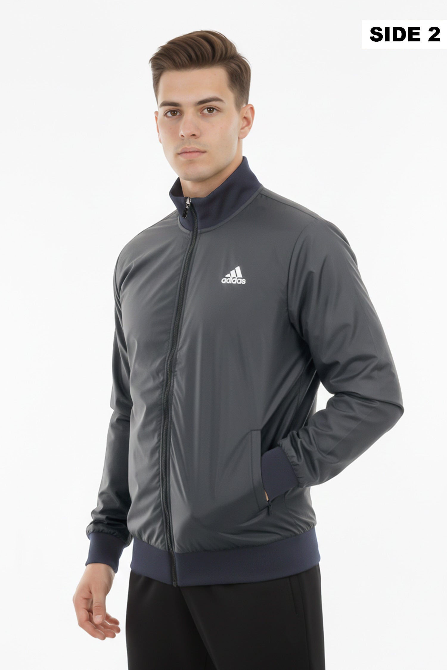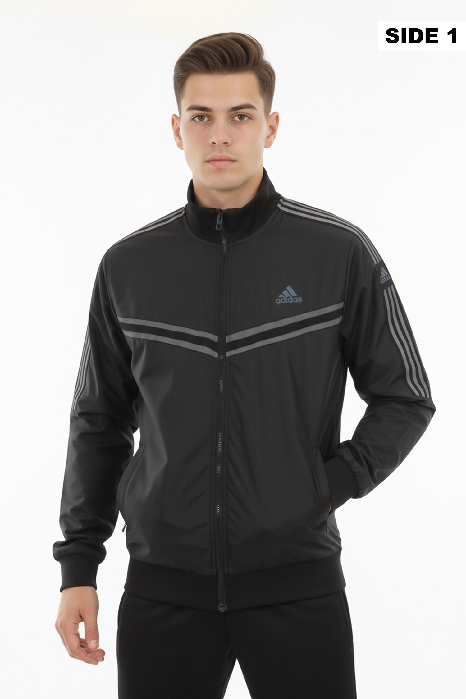 - Reversible zip-up track jacket offering two distinct looks in one piece. Crafted from lightweight polyester with a sleek athletic fit, it features signature Adds stripes and logo detailing. Ideal for workouts, travel, or everyday wear—simply flip it to match your mood or outfit.