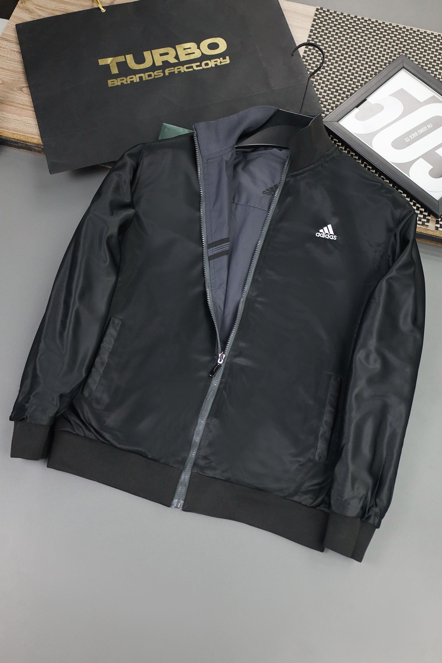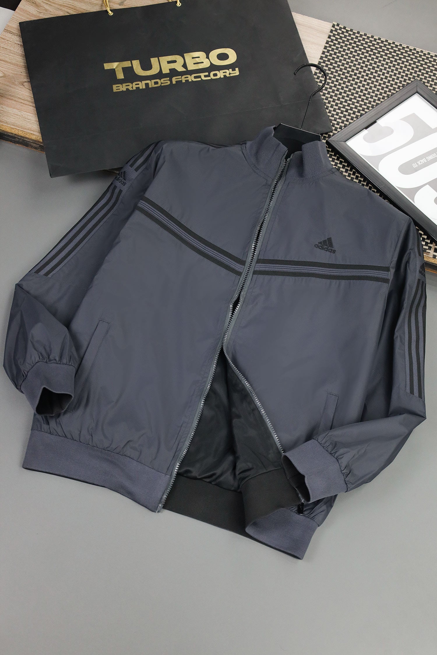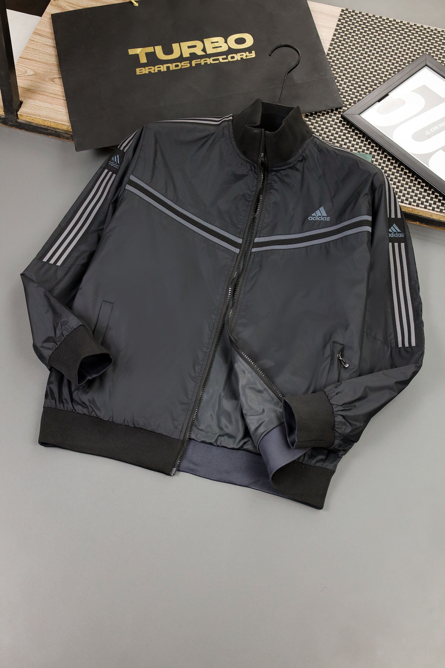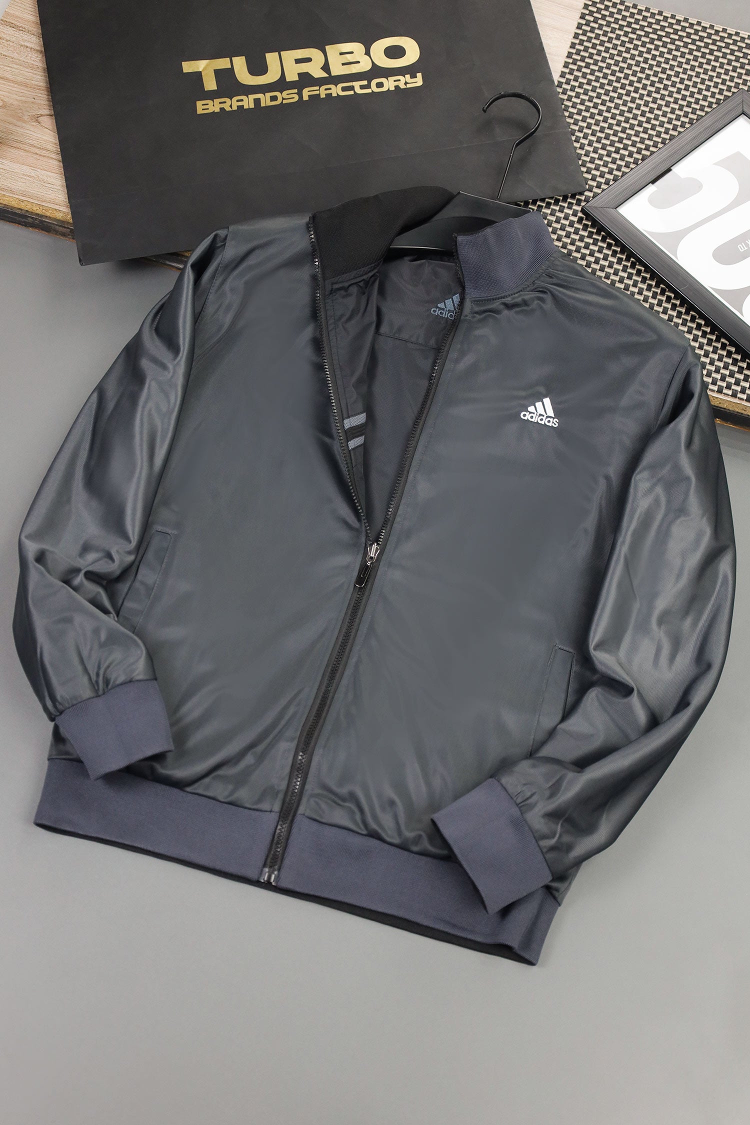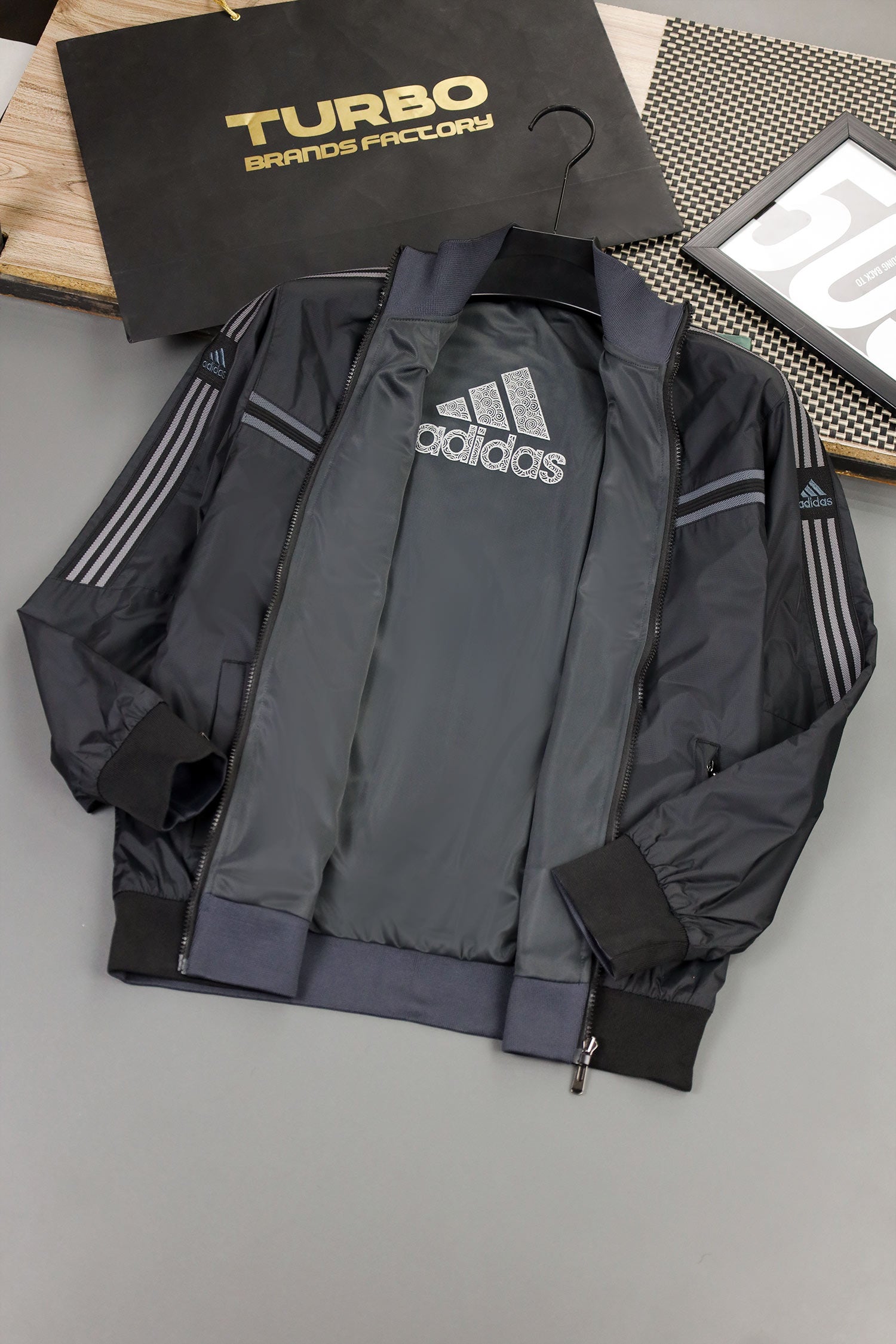 - Reversible zip-up track jacket offering two distinct looks in one piece. Crafted from lightweight polyester with a sleek athletic fit, it features signature Adds stripes and logo detailing. Ideal for workouts, travel, or everyday wear—simply flip it to match your mood or outfit.