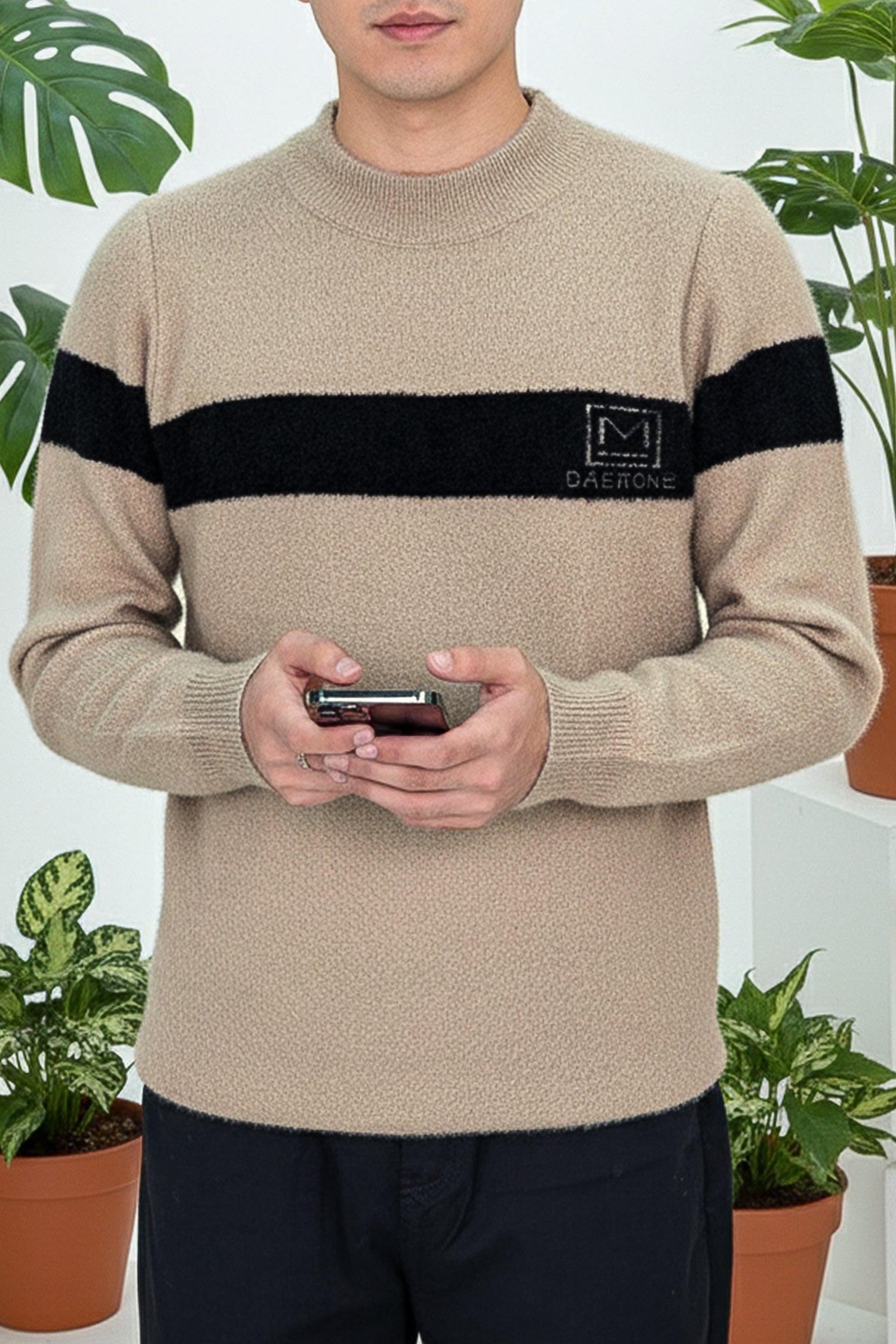 • This Sweater is made with Imported Cotton Lycra & features a classic plain Crew -neck design.