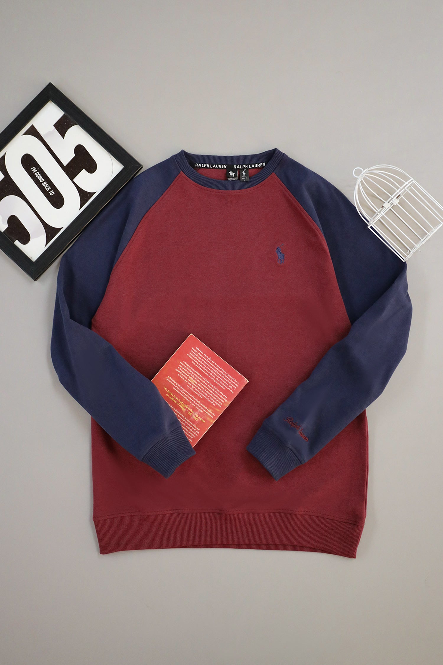 Rph Lren Raglan Pullover Round Neck Imported Men's Sweatshirt In Maroon