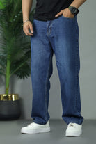 Turbo Denim Look Men Relaxed Fit Baggy Jeans In Navy Blue