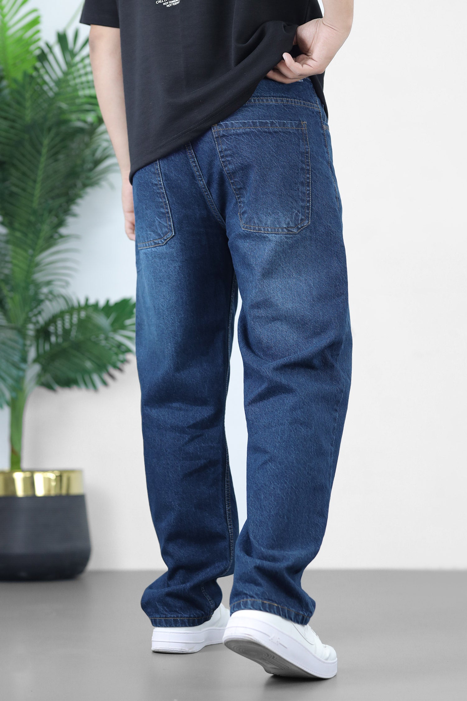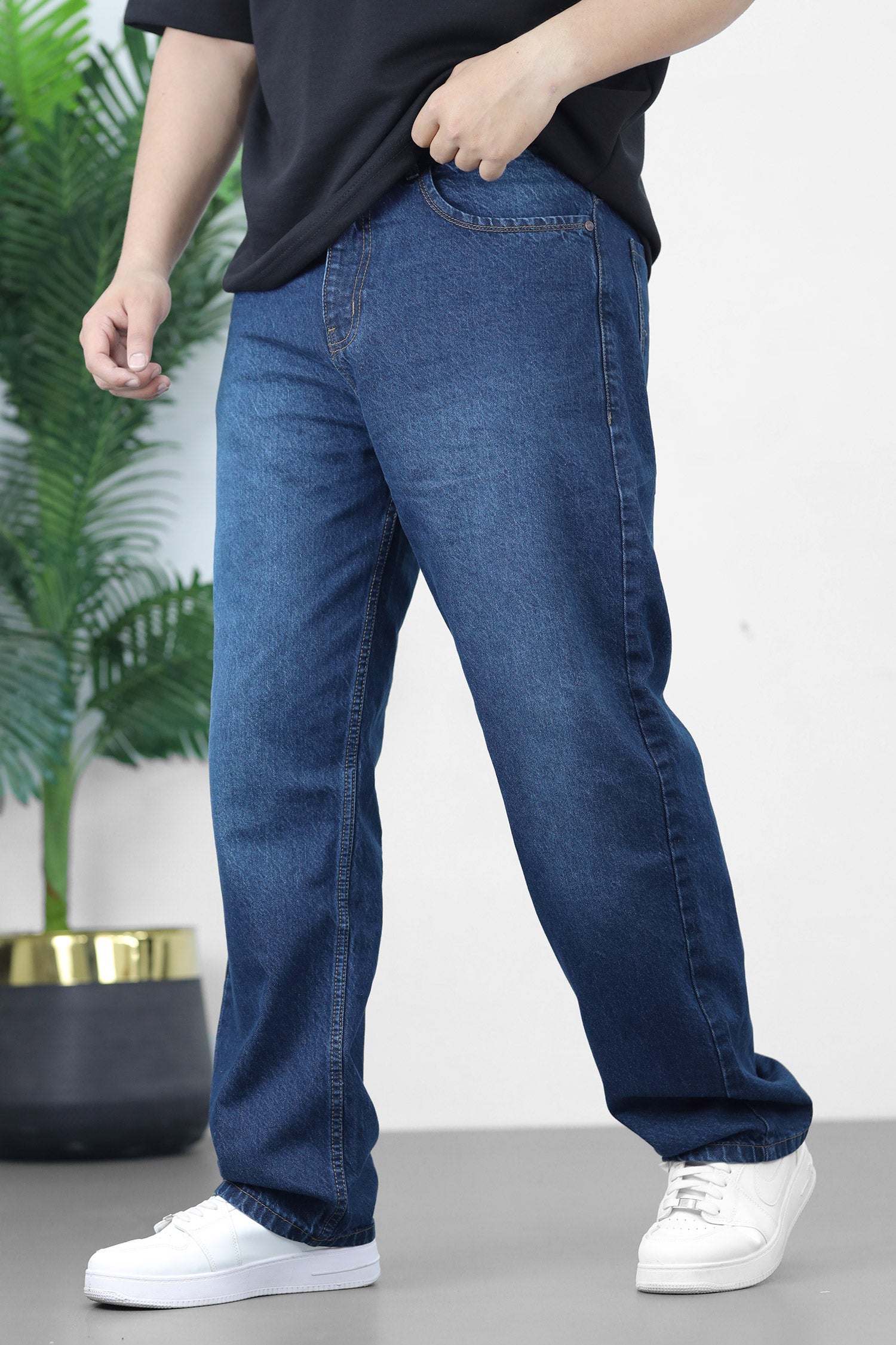 Turbo Denim Classic Design Baggy Jeans In Navy Blue