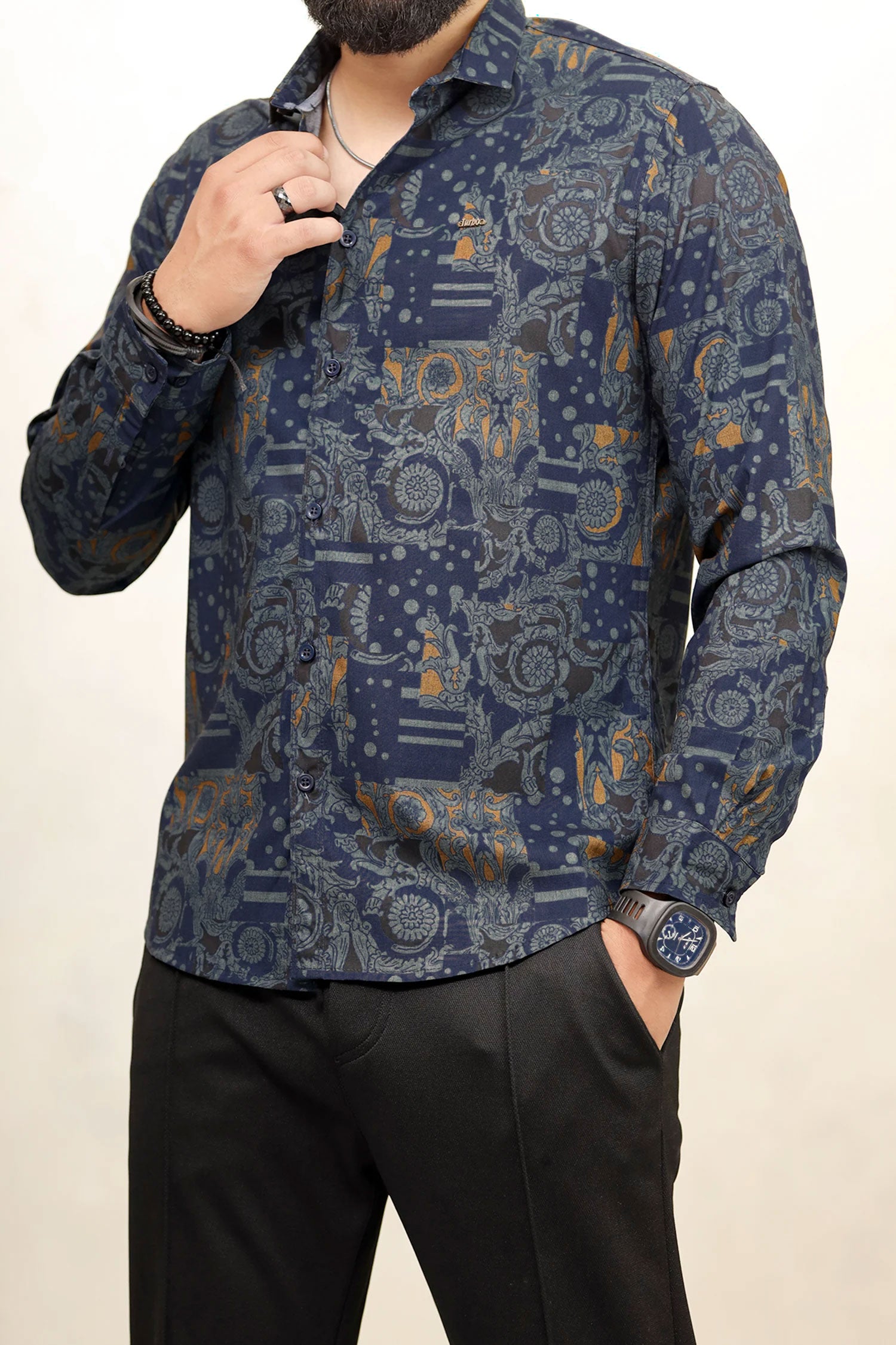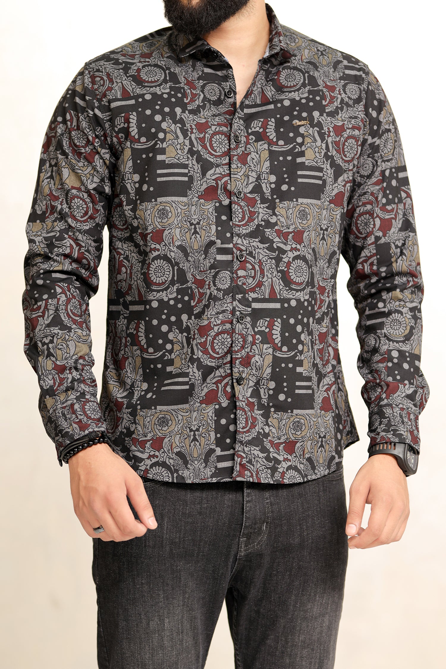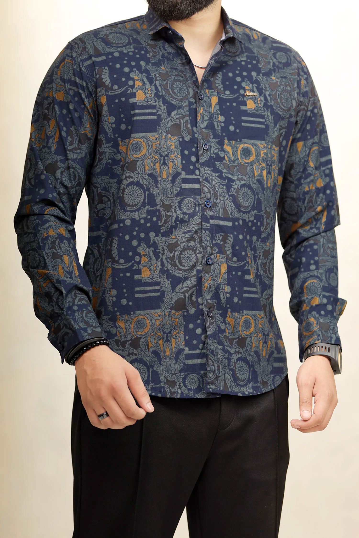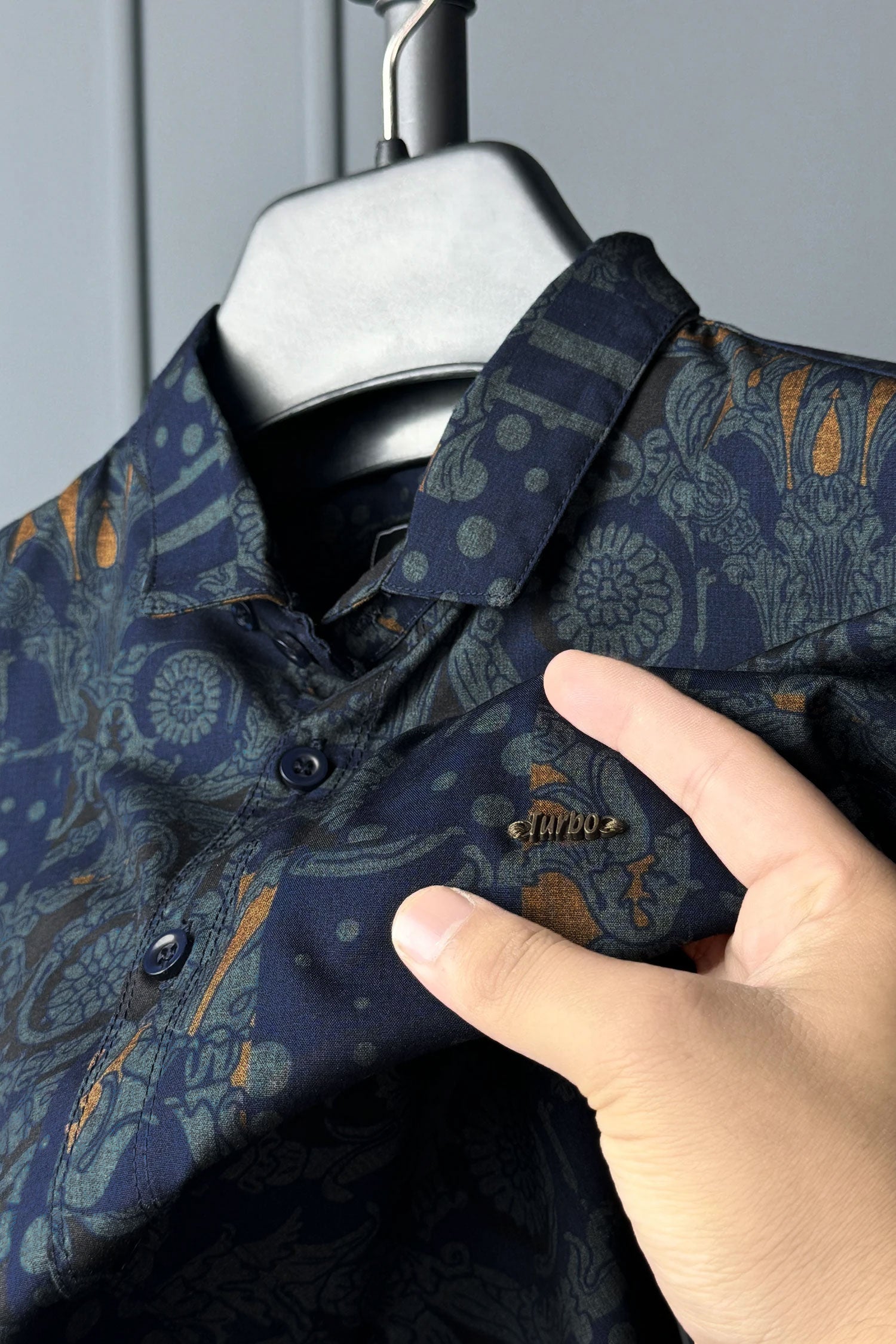 Turbo Retro Flower Motif Long Sleeve Cotton Casual Shirt