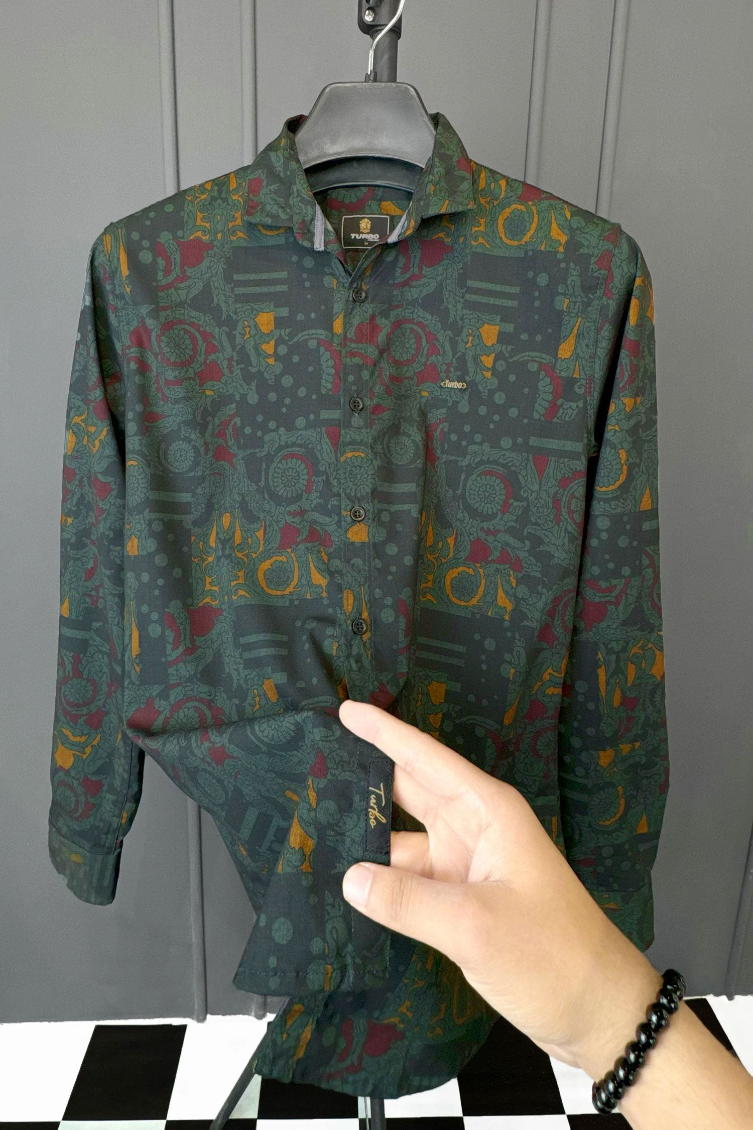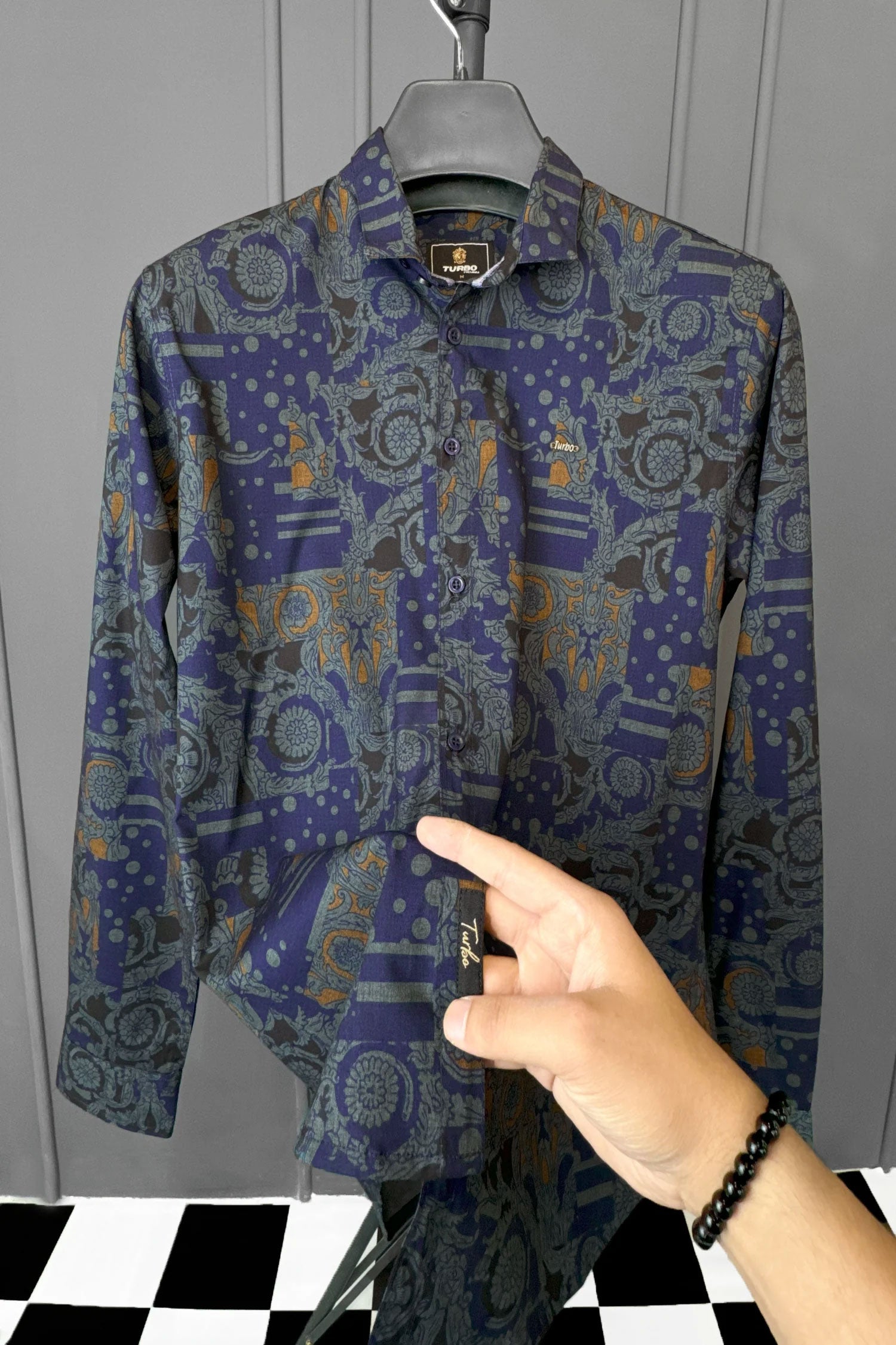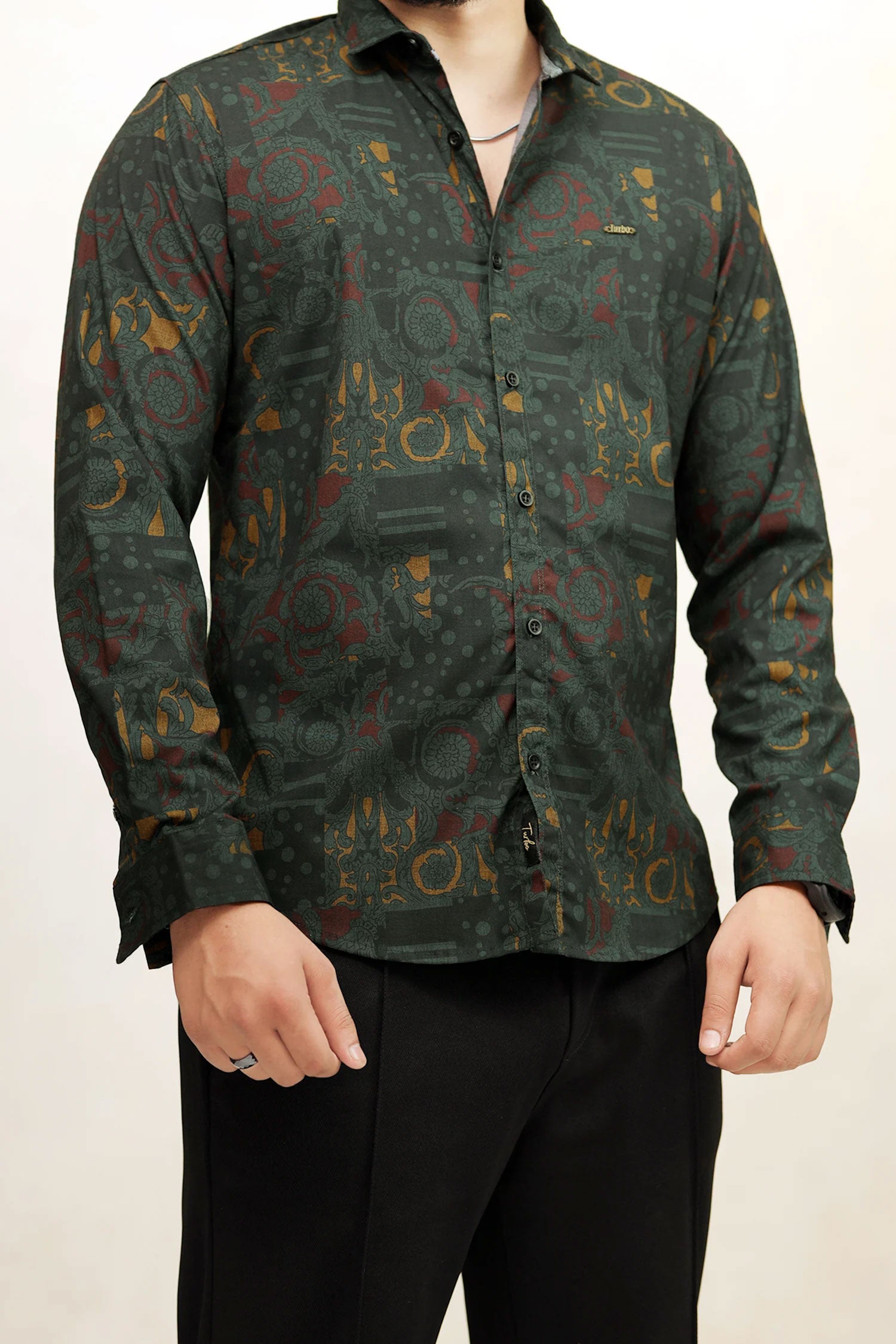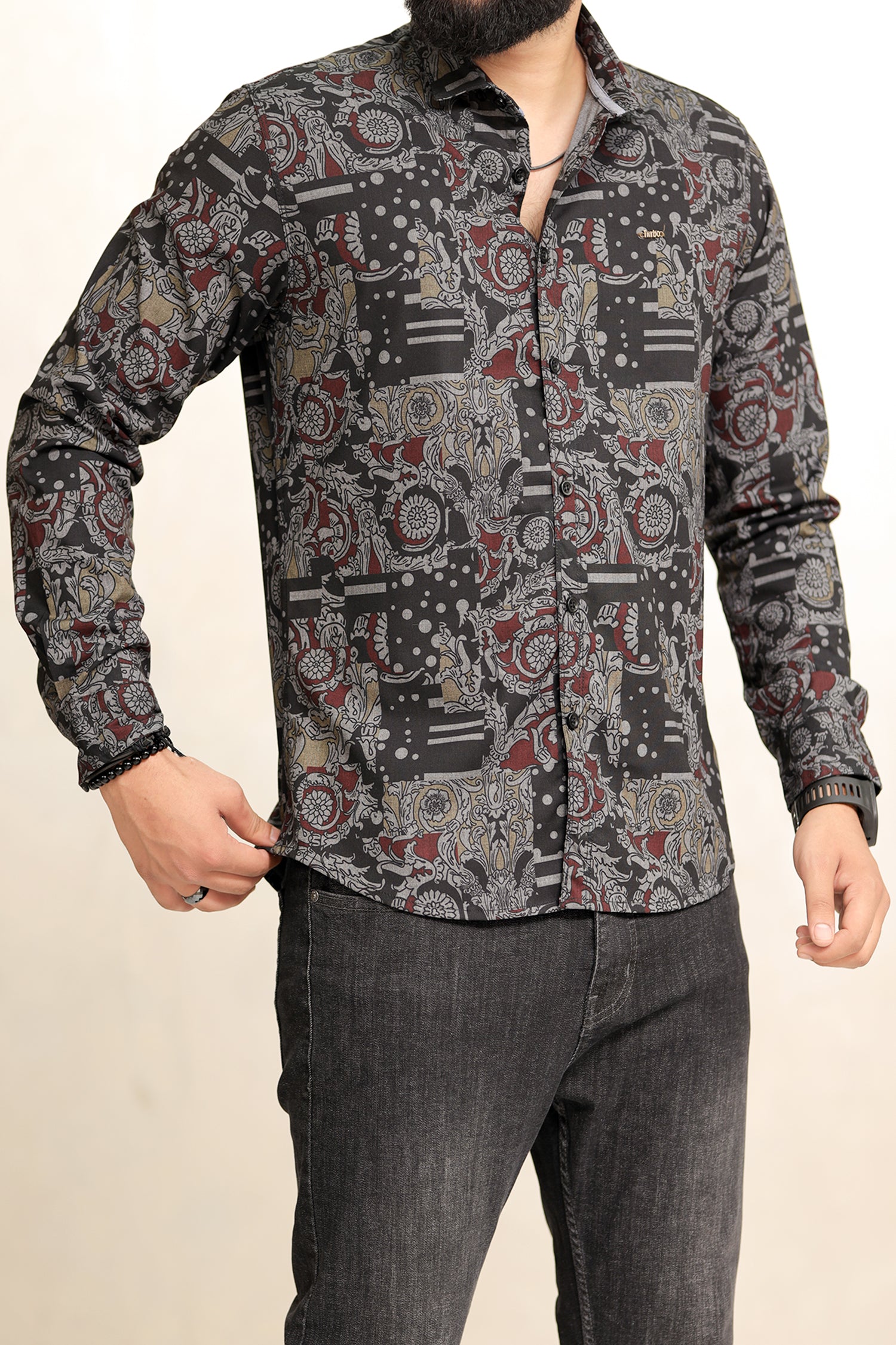 Turbo Retro Flower Motif Long Sleeve Cotton Casual Shirt