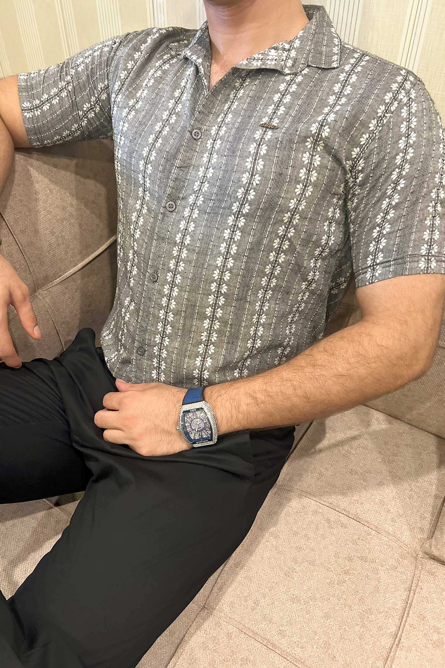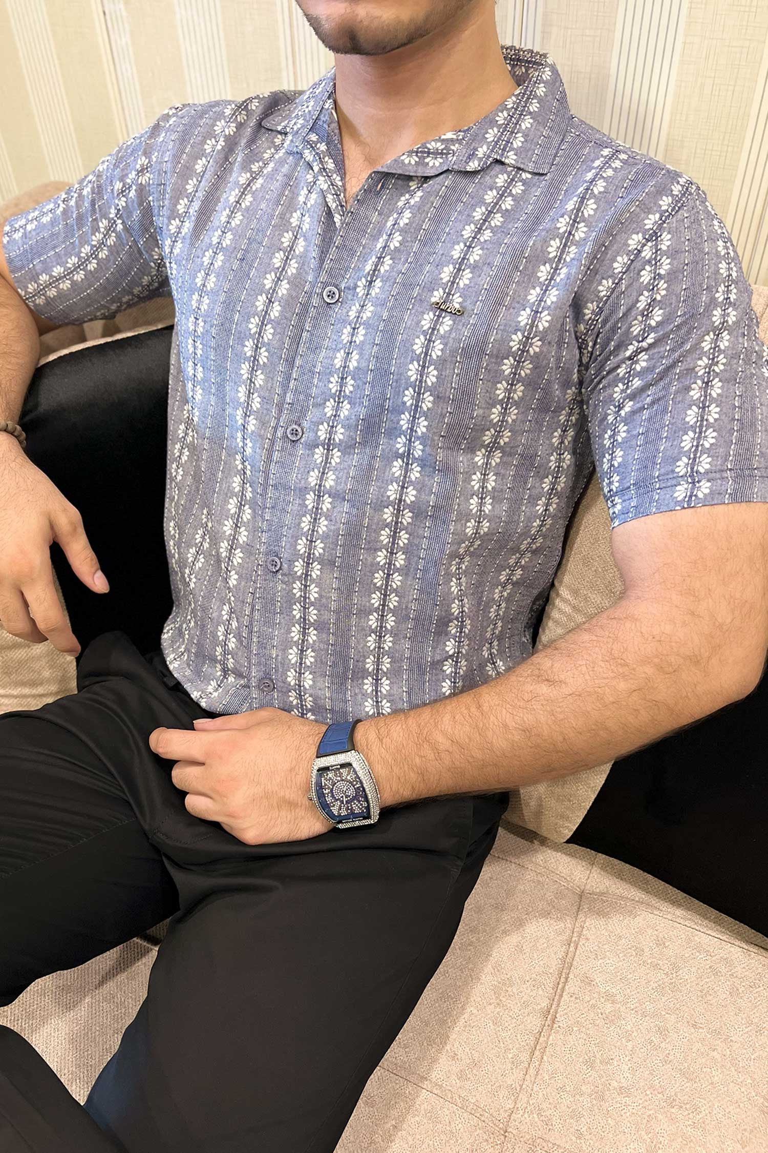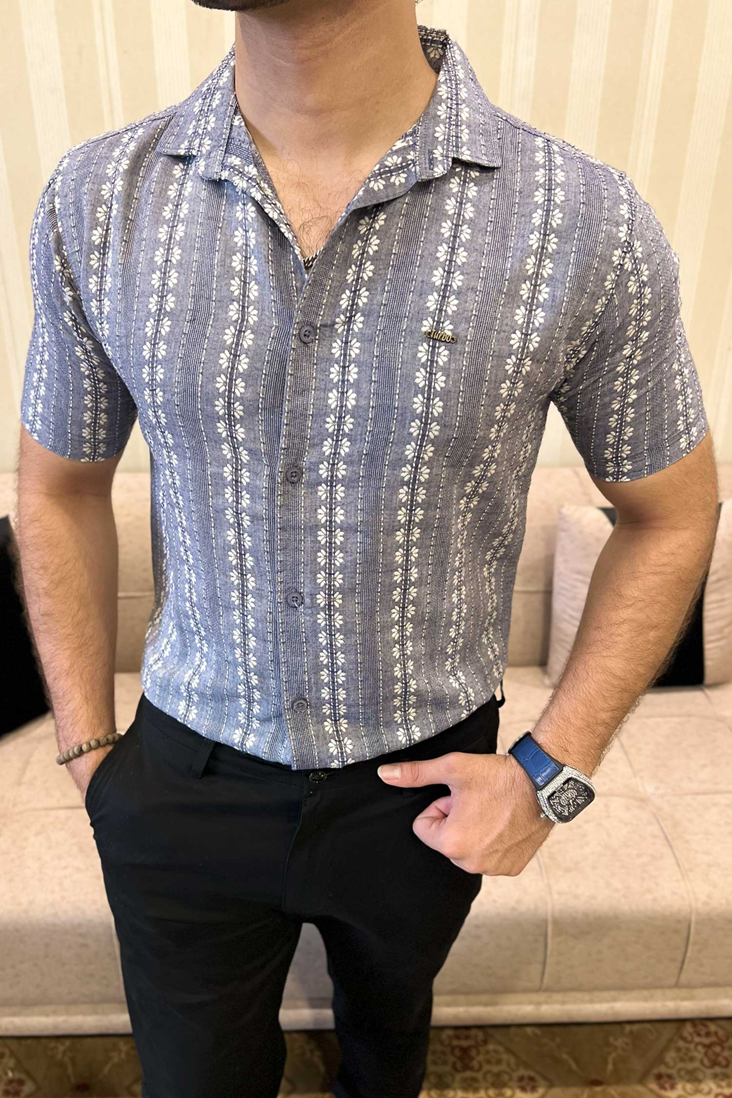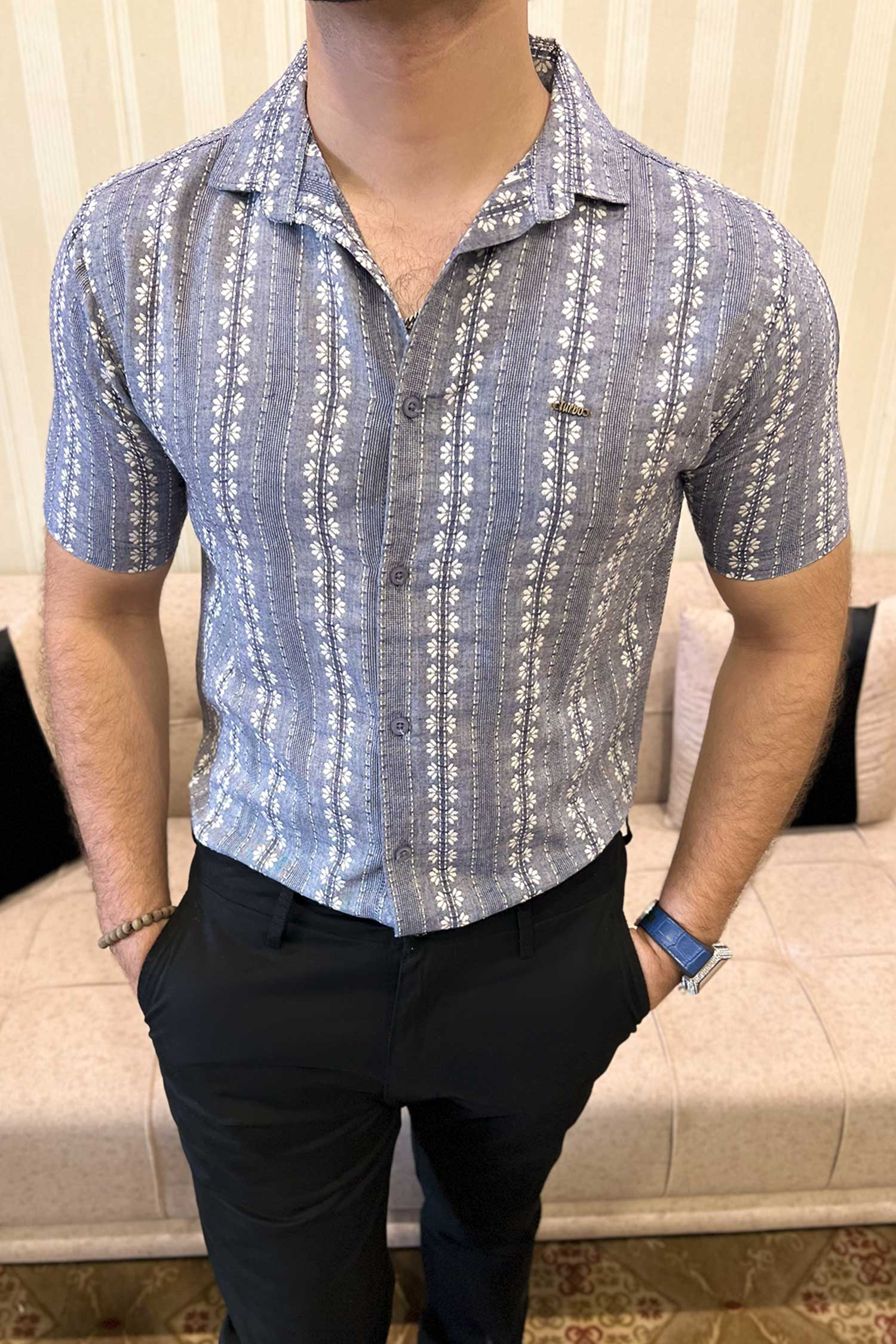 Turbo Cubin Textured Striped Casual Shirt