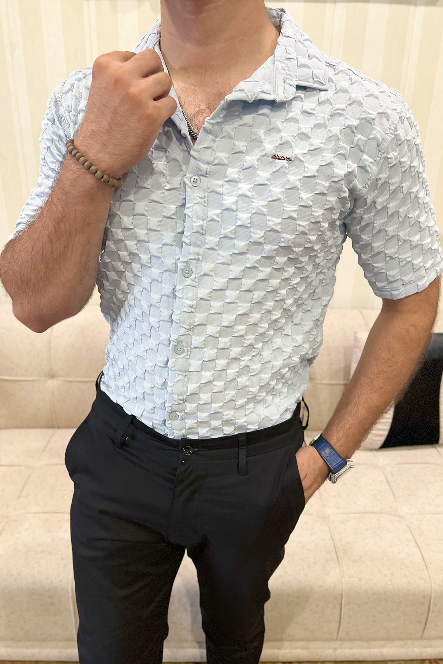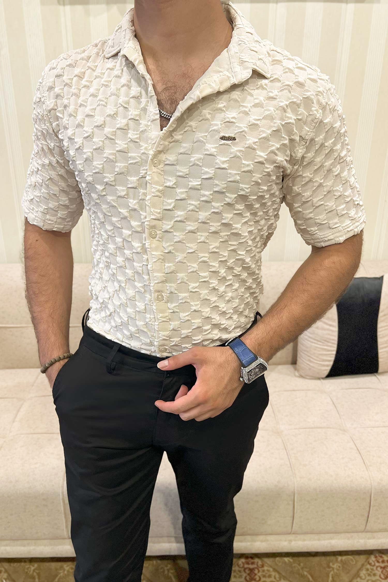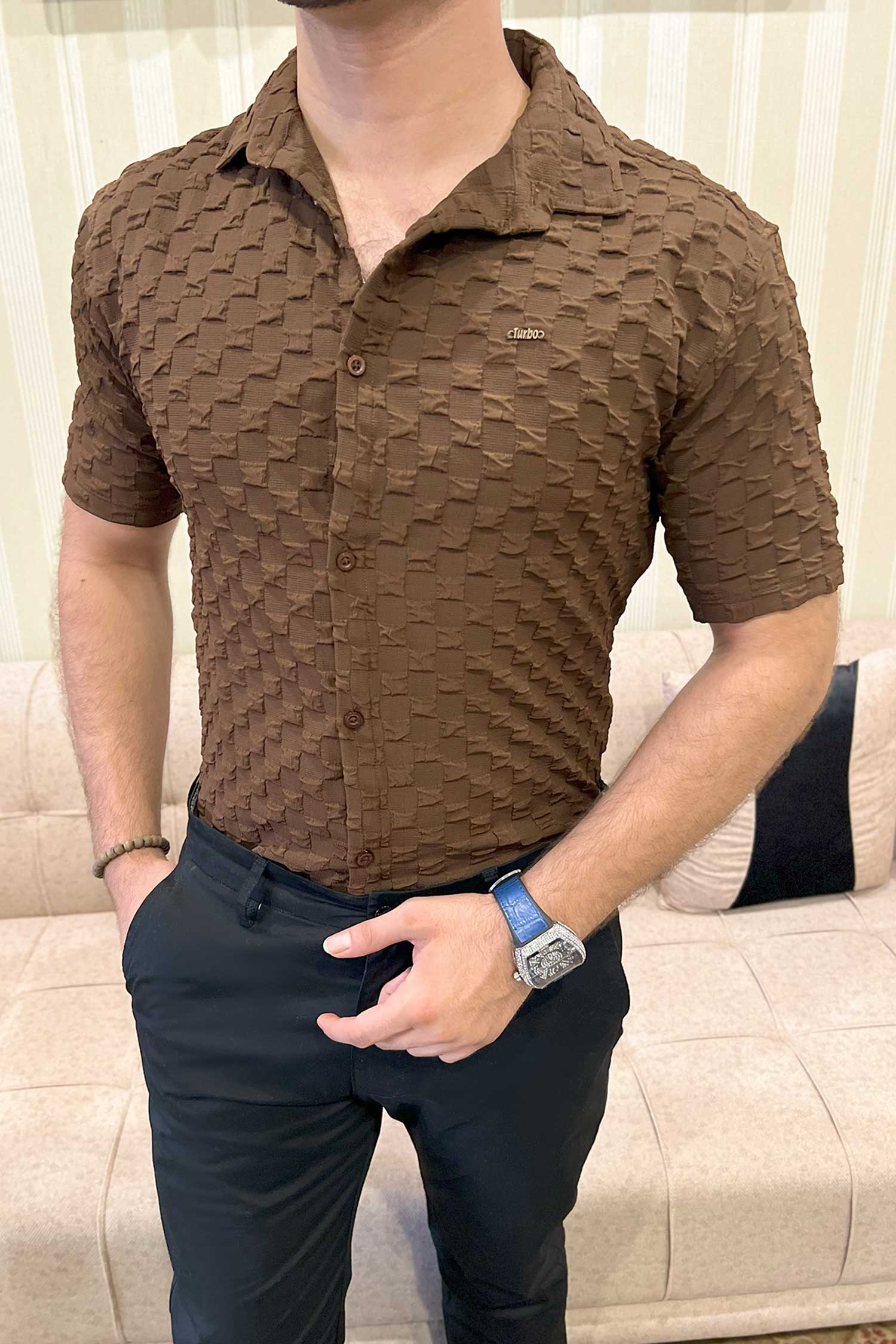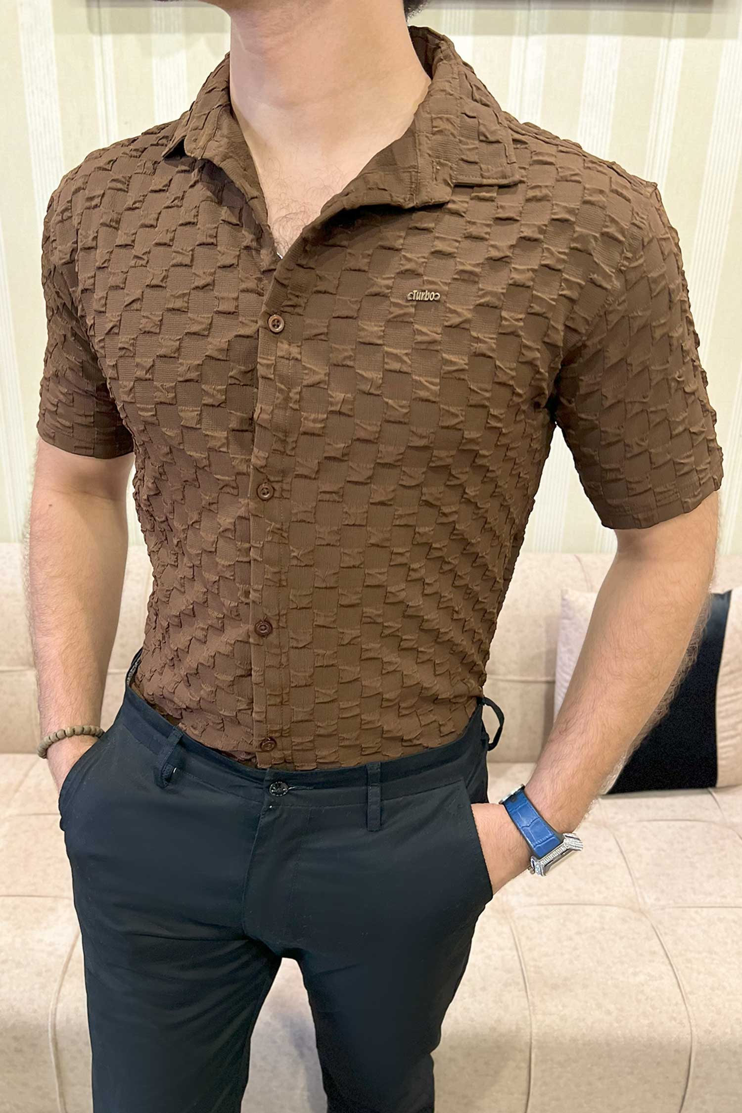 Turbo Puff Structured Pattern Casual Shirt