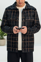 Neutral Gridline Shacket Imported Men's Woolen Jacket