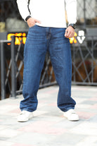 Loose Fit Comfy Denim Turbo Jeans in Navy Blue