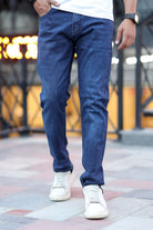 Plain Style Slim Fit Turbo Jeans In Dark Blue