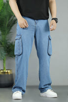 Turbo 6 Pockets Relaxed Baggy Jeans In Light Blue