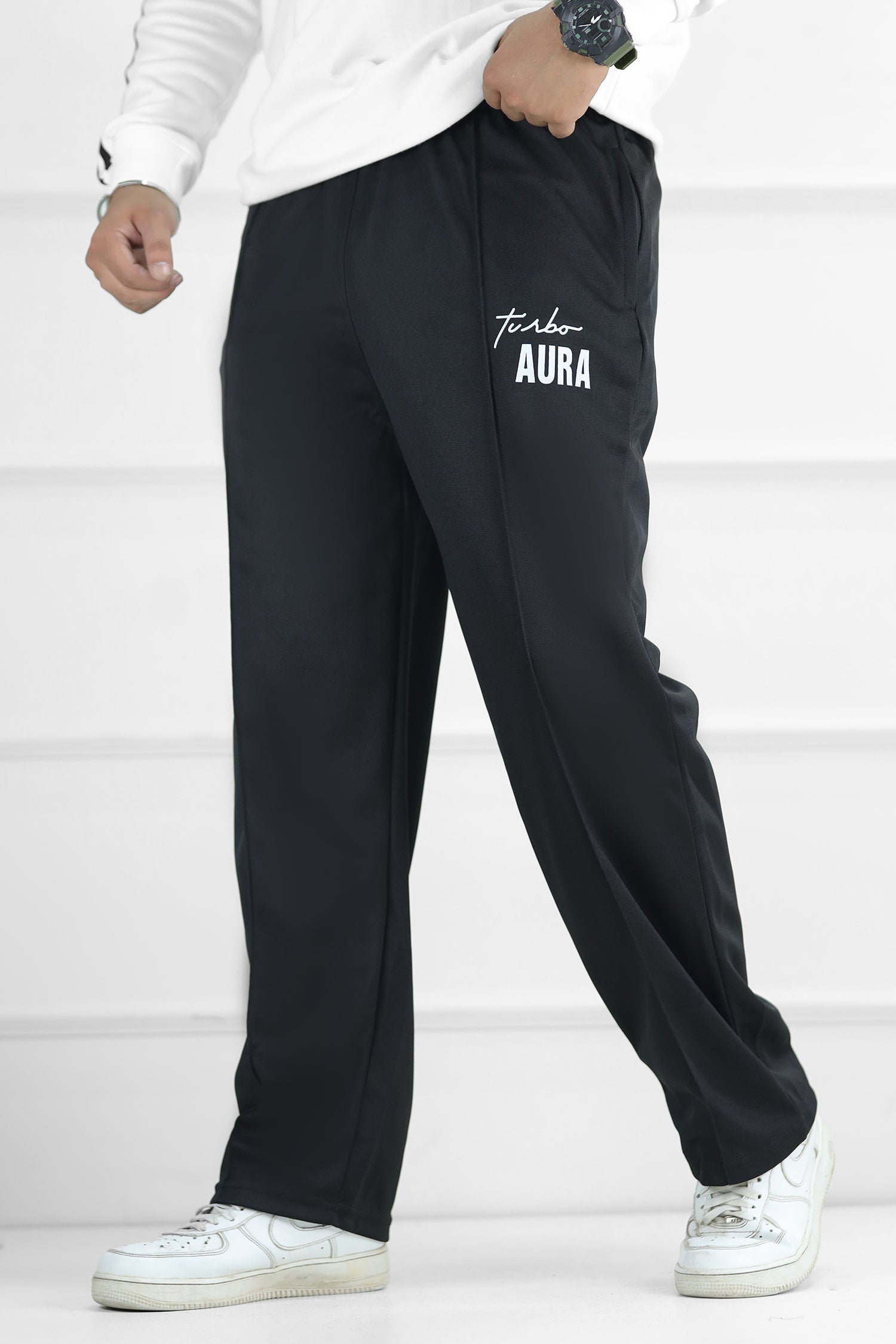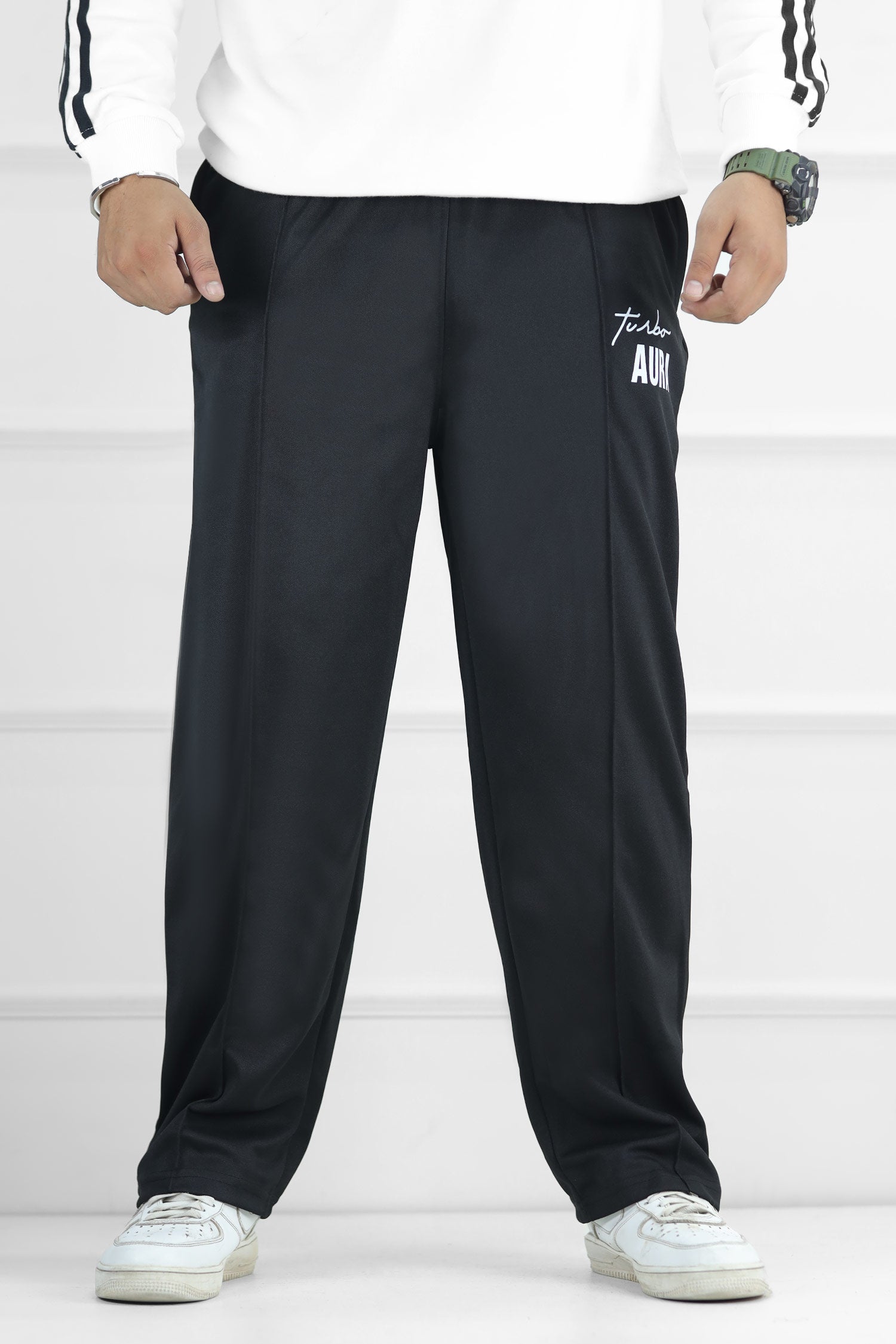Turbo Aura Signature Typography Oversize Trouser In Black