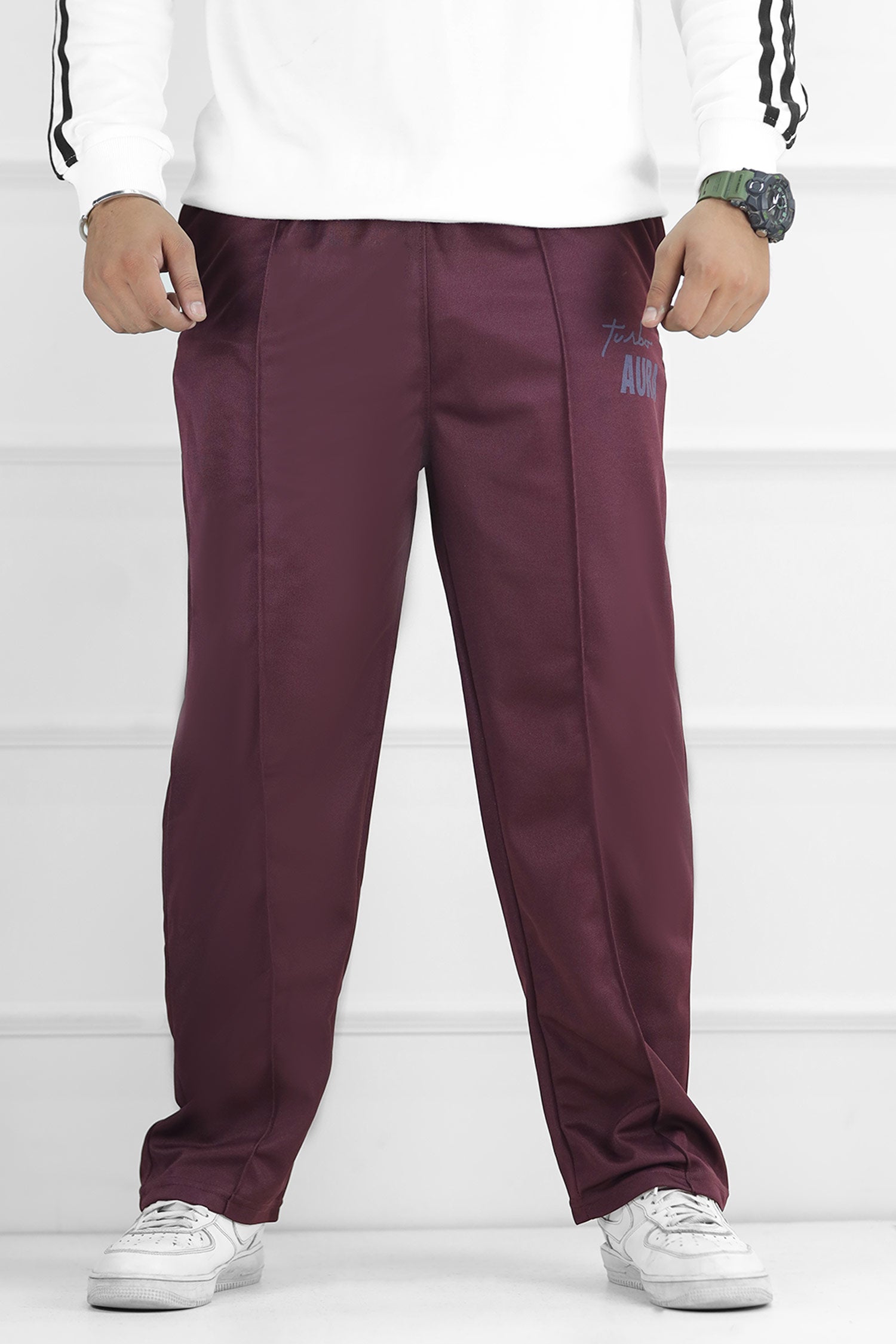 Turbo Aura Signature Typography Oversize Trouser In Maroon