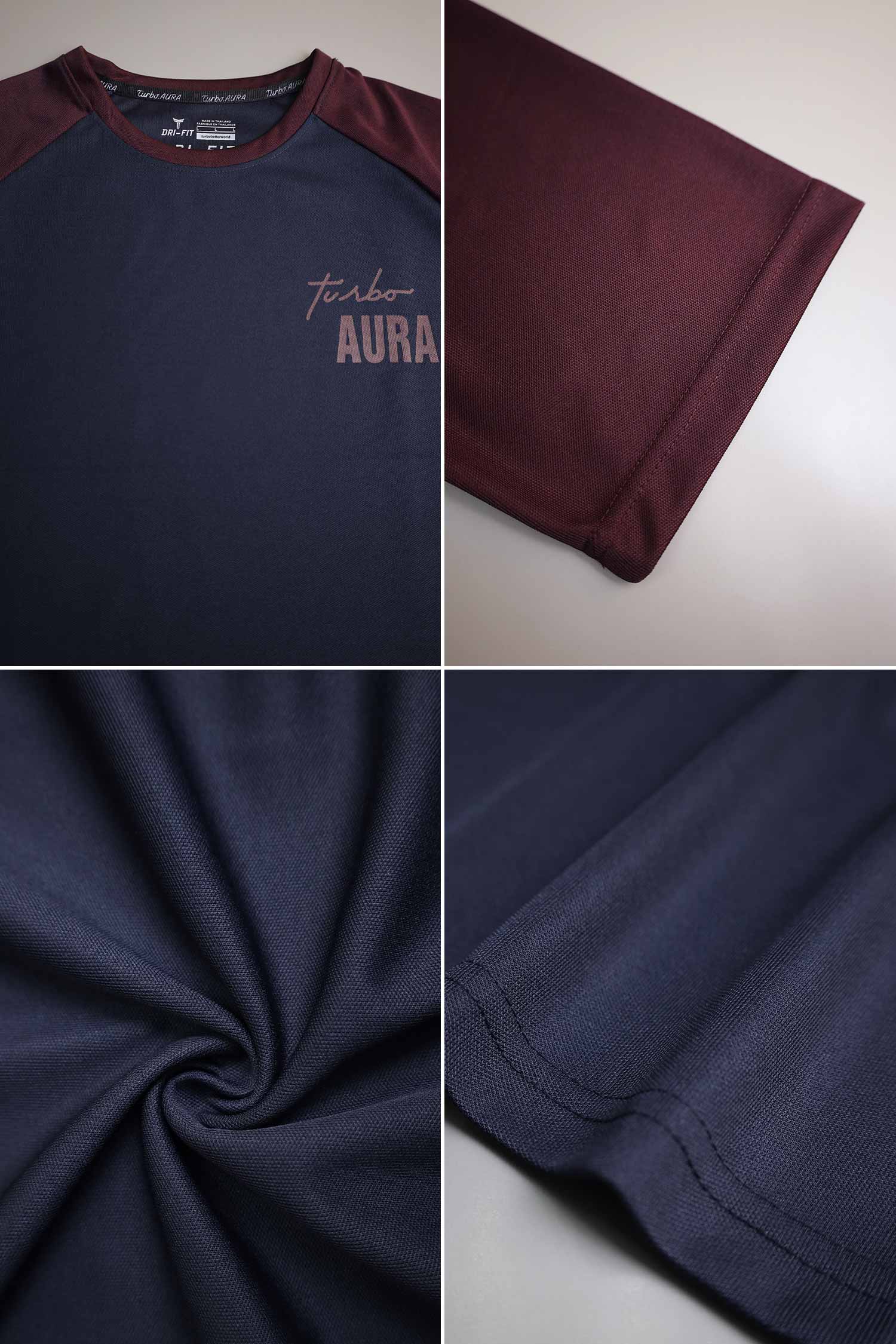 Turbo Aura Signature Typography Oversize T-Shirt In Navy&Maroon