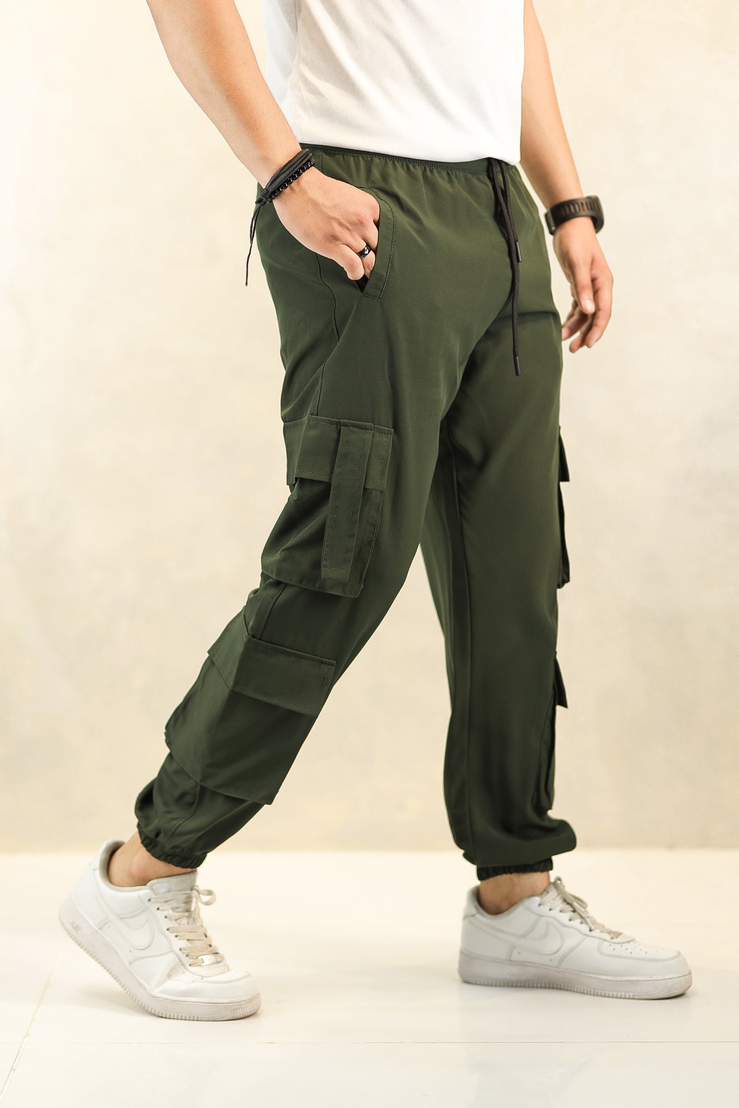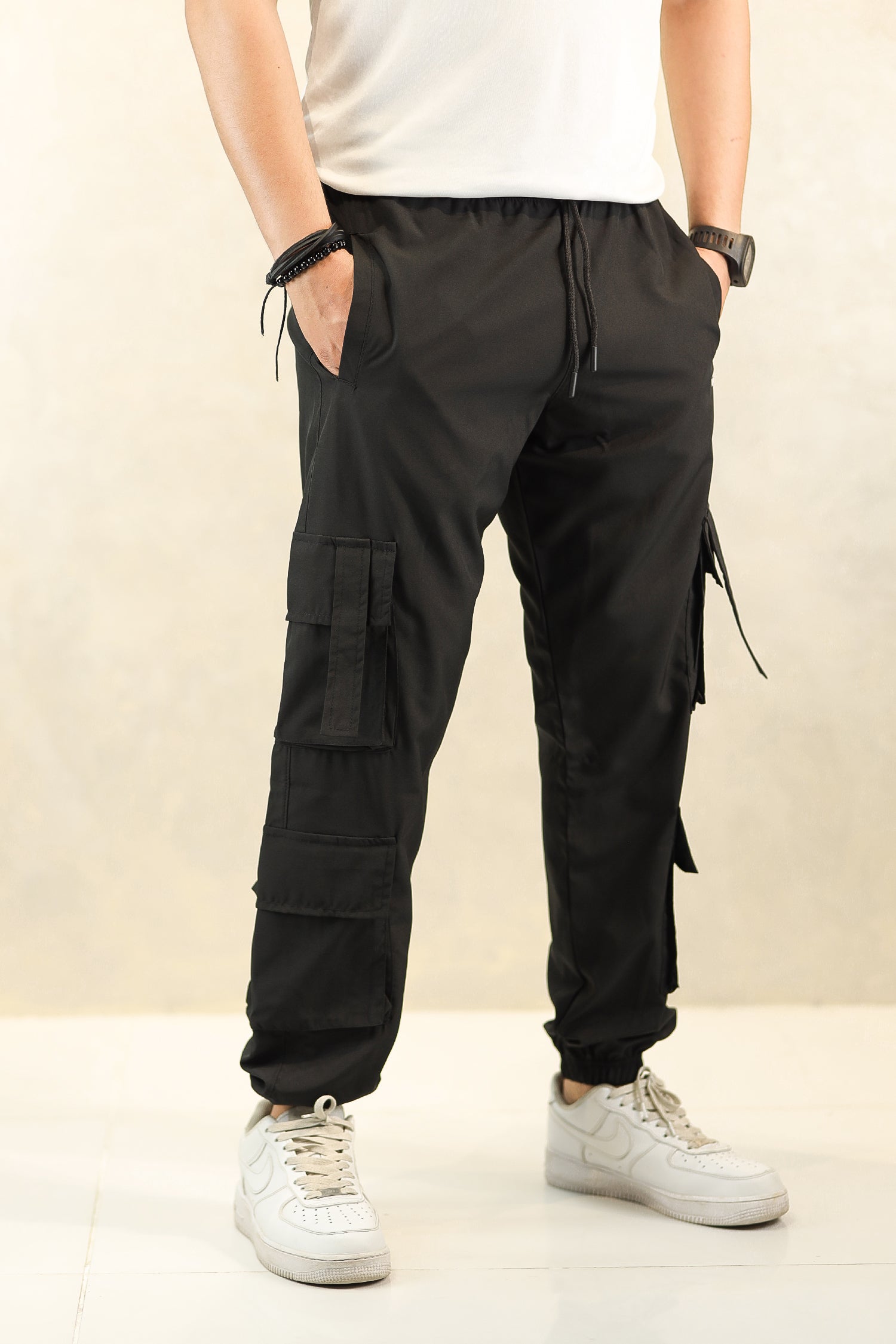 - These branded Pocket Style Slim fit trouser are designed with an elastic waist with adjustment strap and Grip bottom for the perfect fit.
