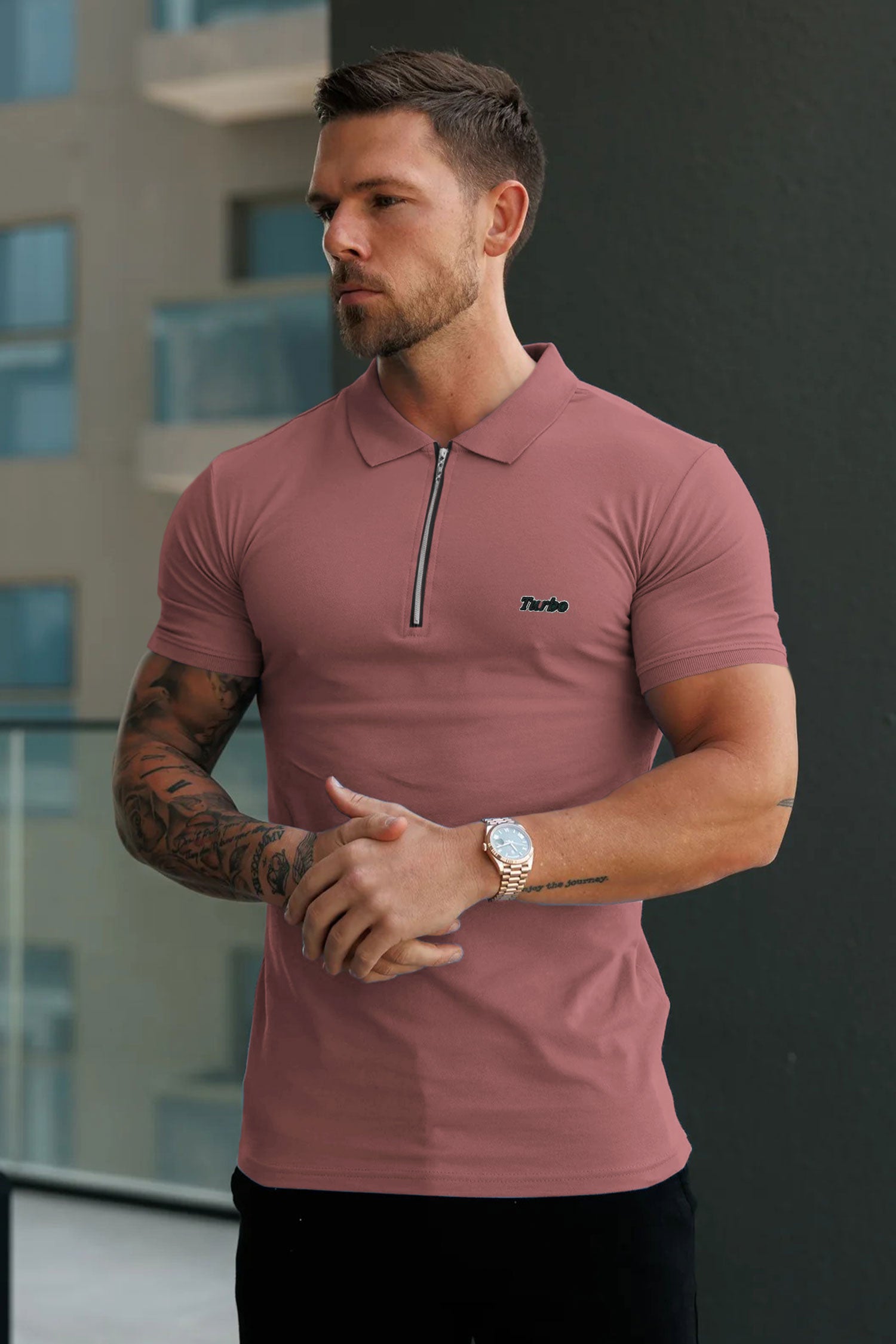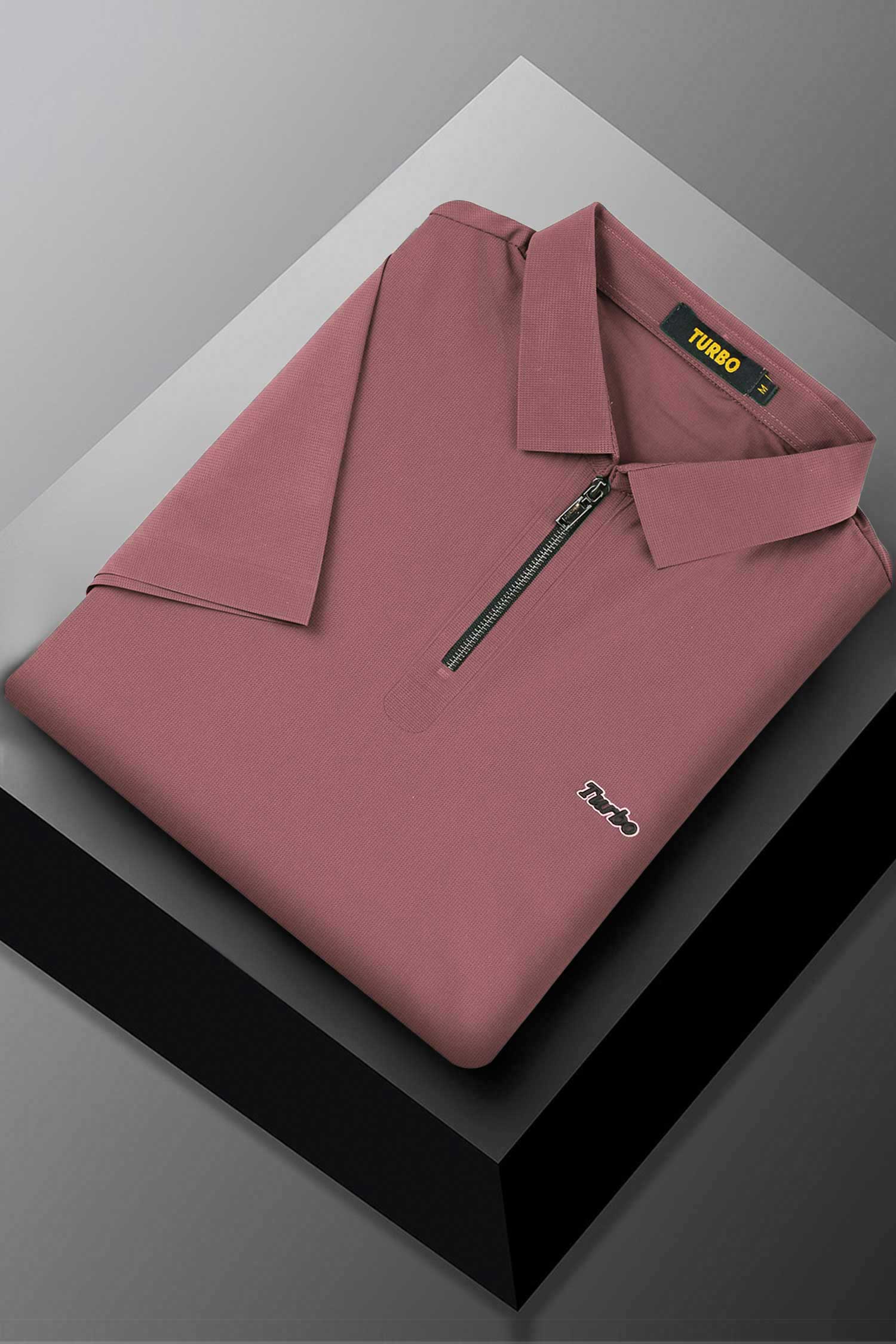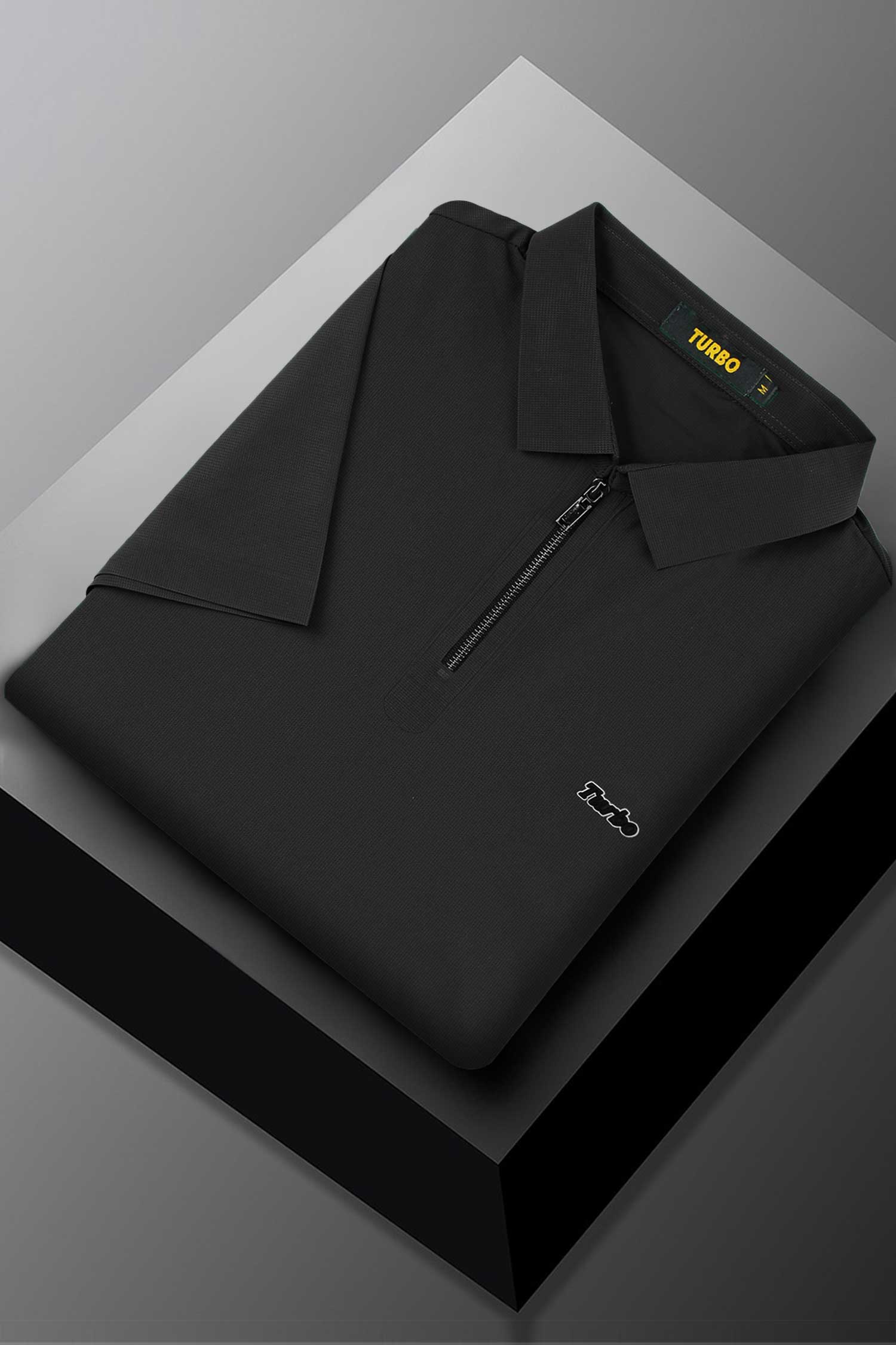 Turbo Signature Script Zip-Placket Men's Polo Shirt