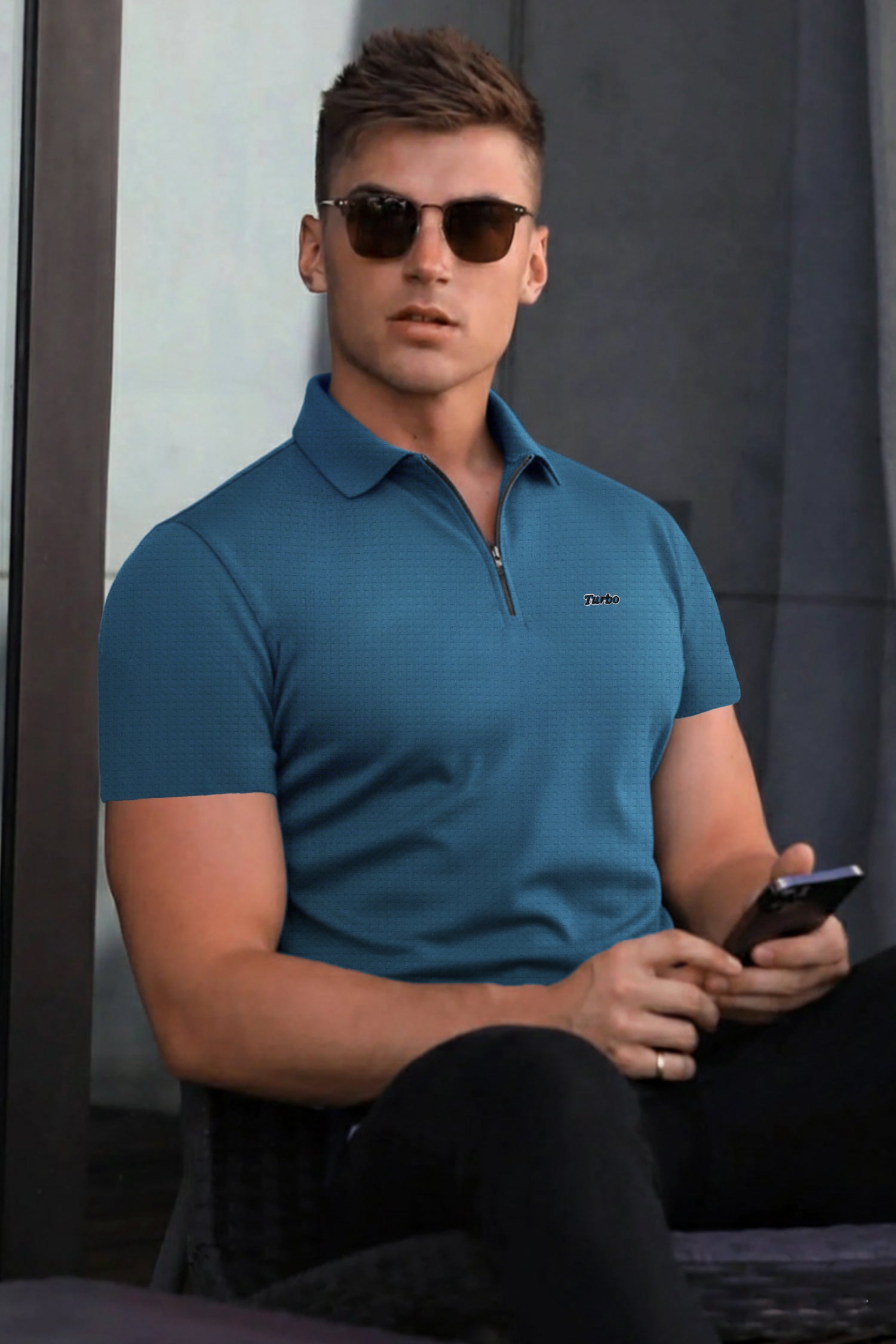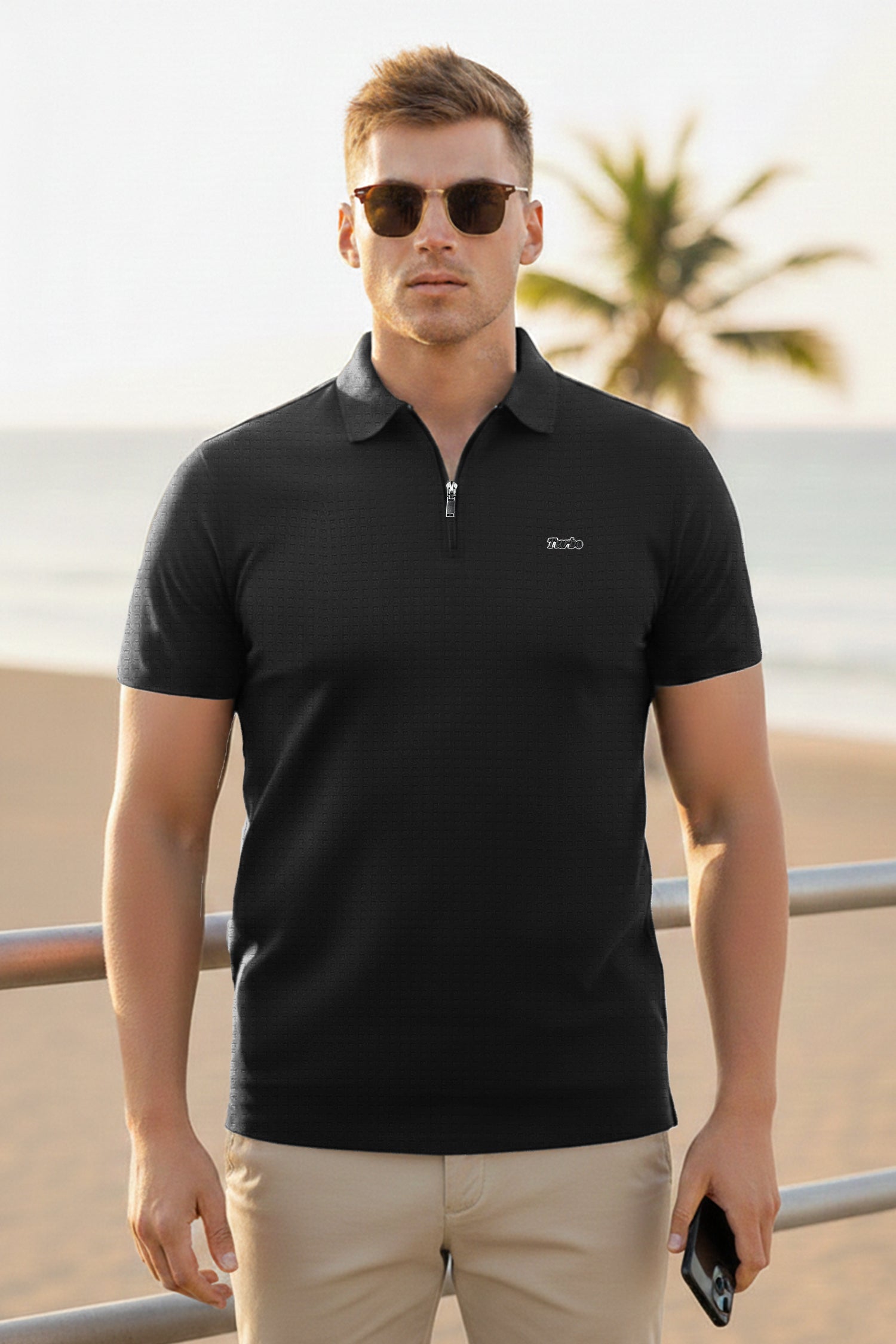 Turbo Fashion Transmission Zip Collar Men's Polo Shirt