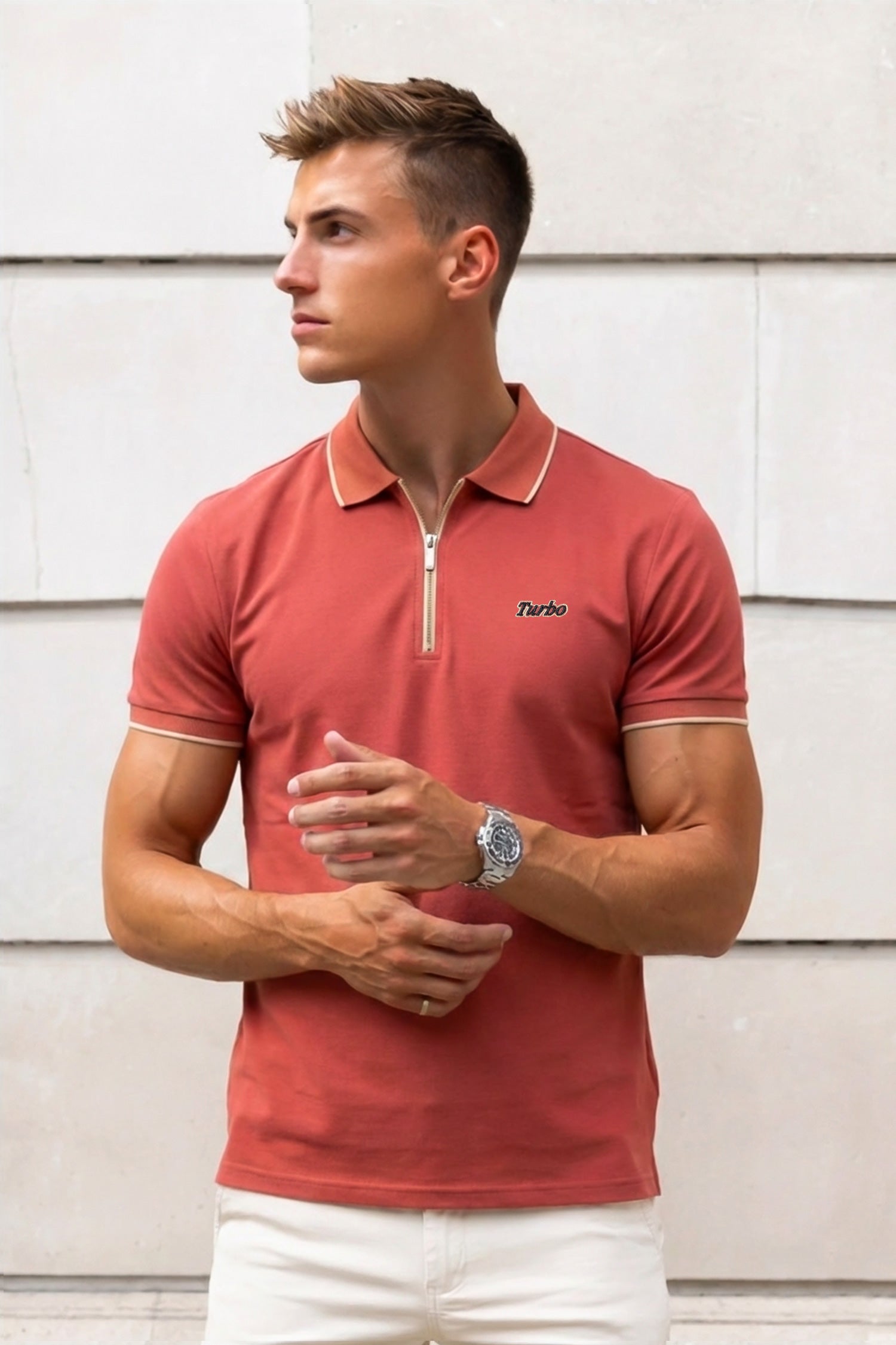 Turbo Contrast Tone Zip Collar Men's Polo Shirt