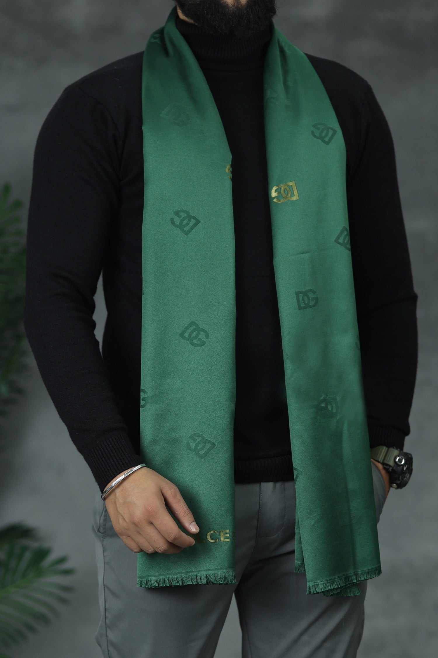 D & G Aesthetic Silk Unisex Scarf In Green