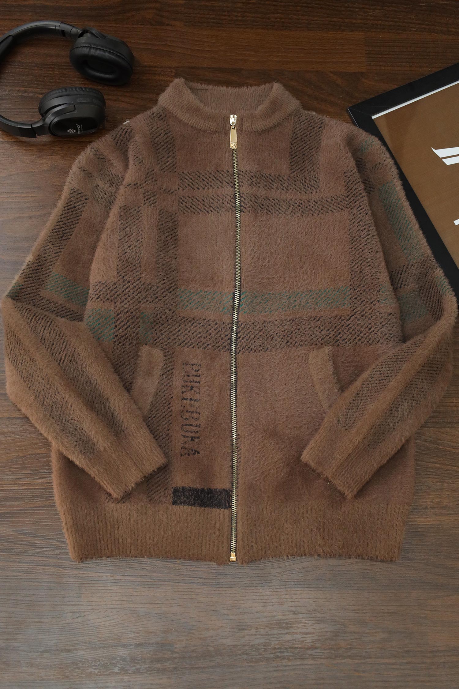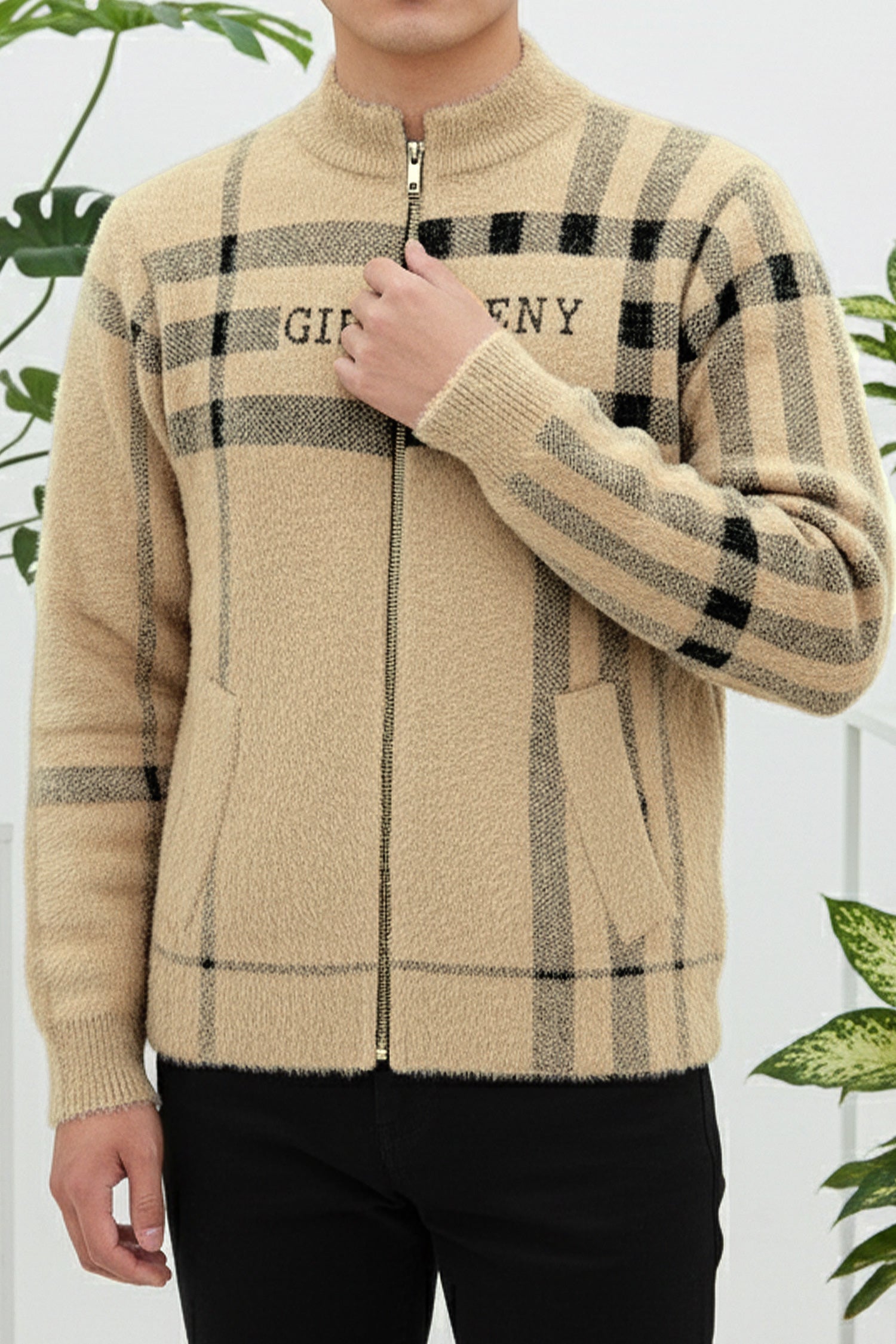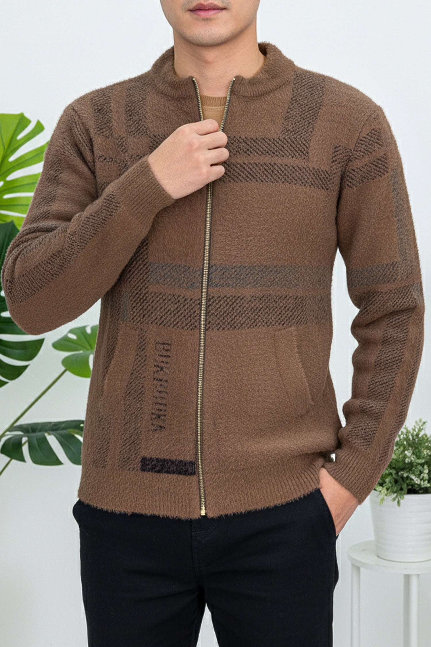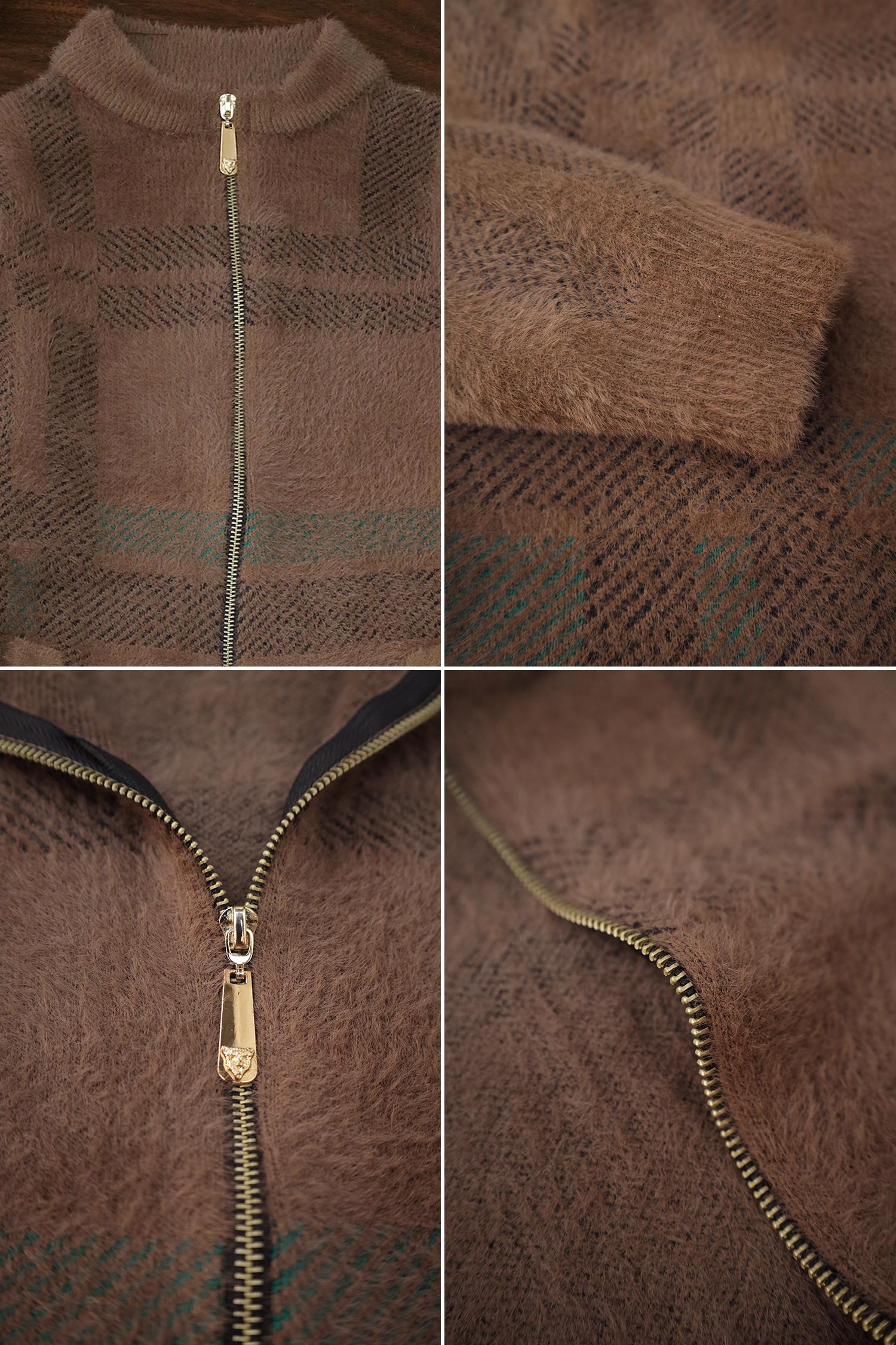 - This Sweater is made with Rabbit Wool & features a classic plain Zipper design.