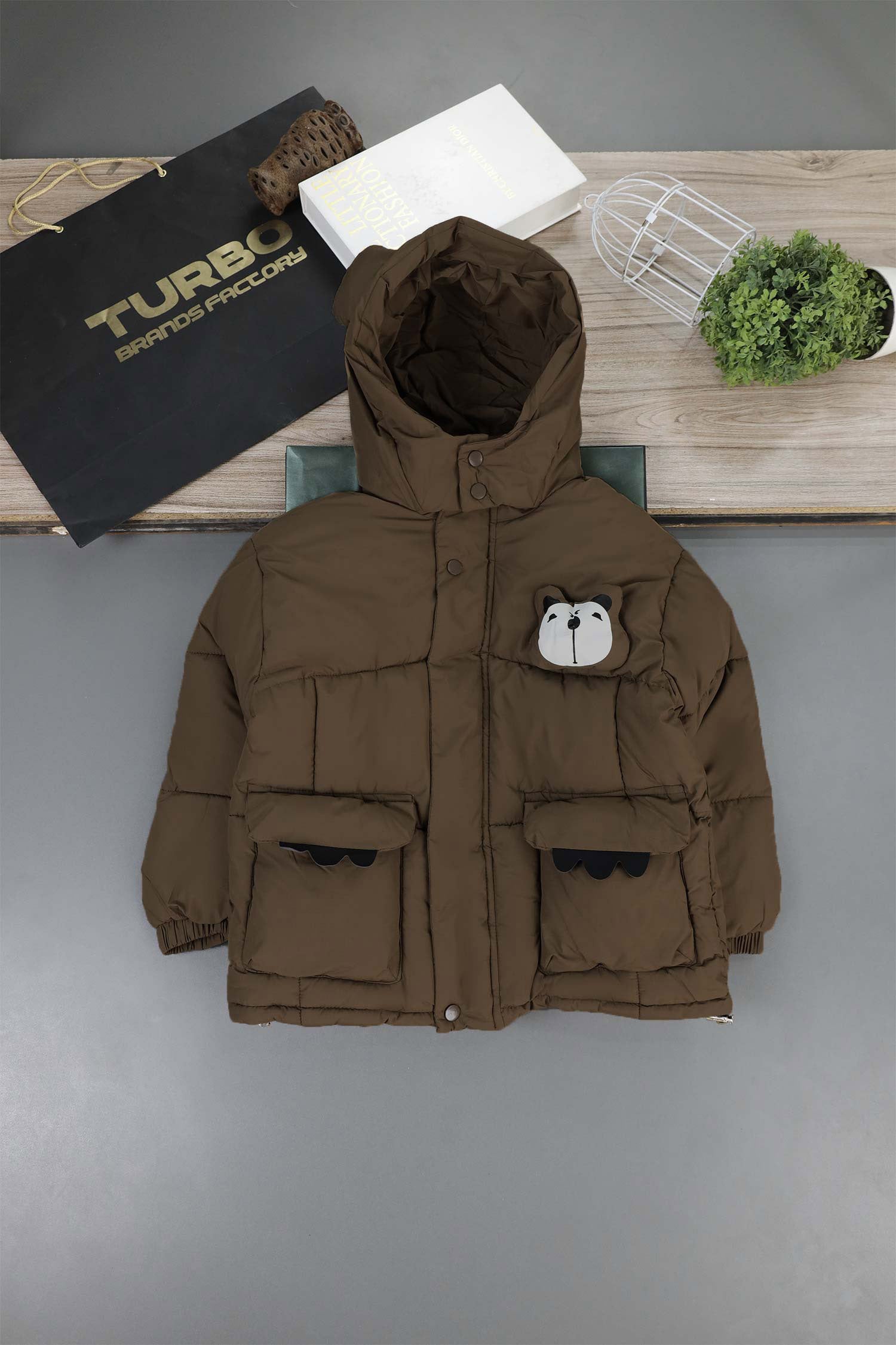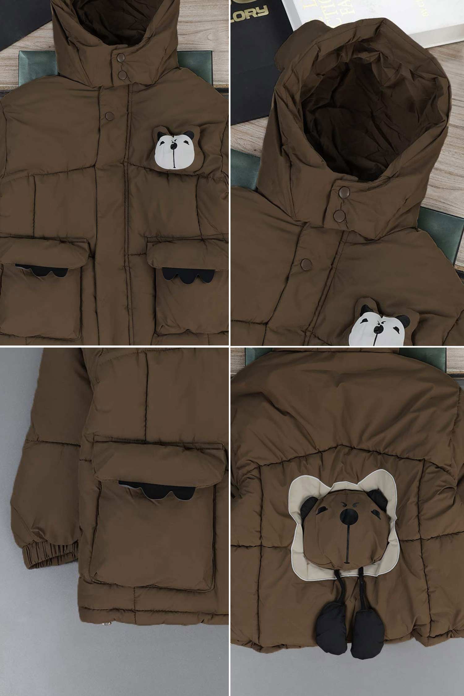 Panda Style Hooded Uni Sex Kids Puffer Jacket