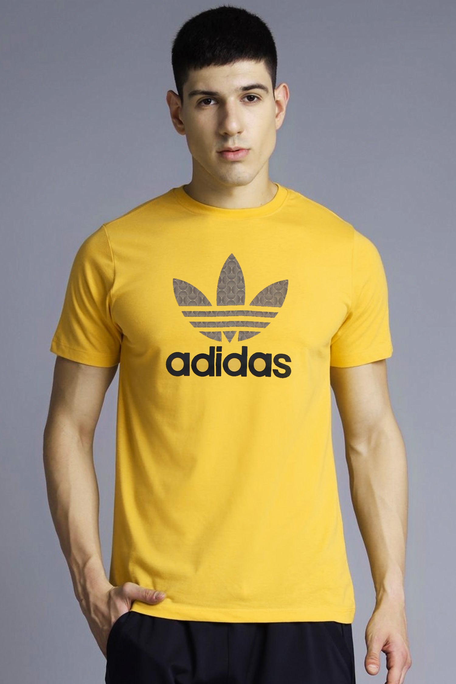 Adds Blend Trefoil Round Imported Neck T-Shirt In Mustard Yellow
