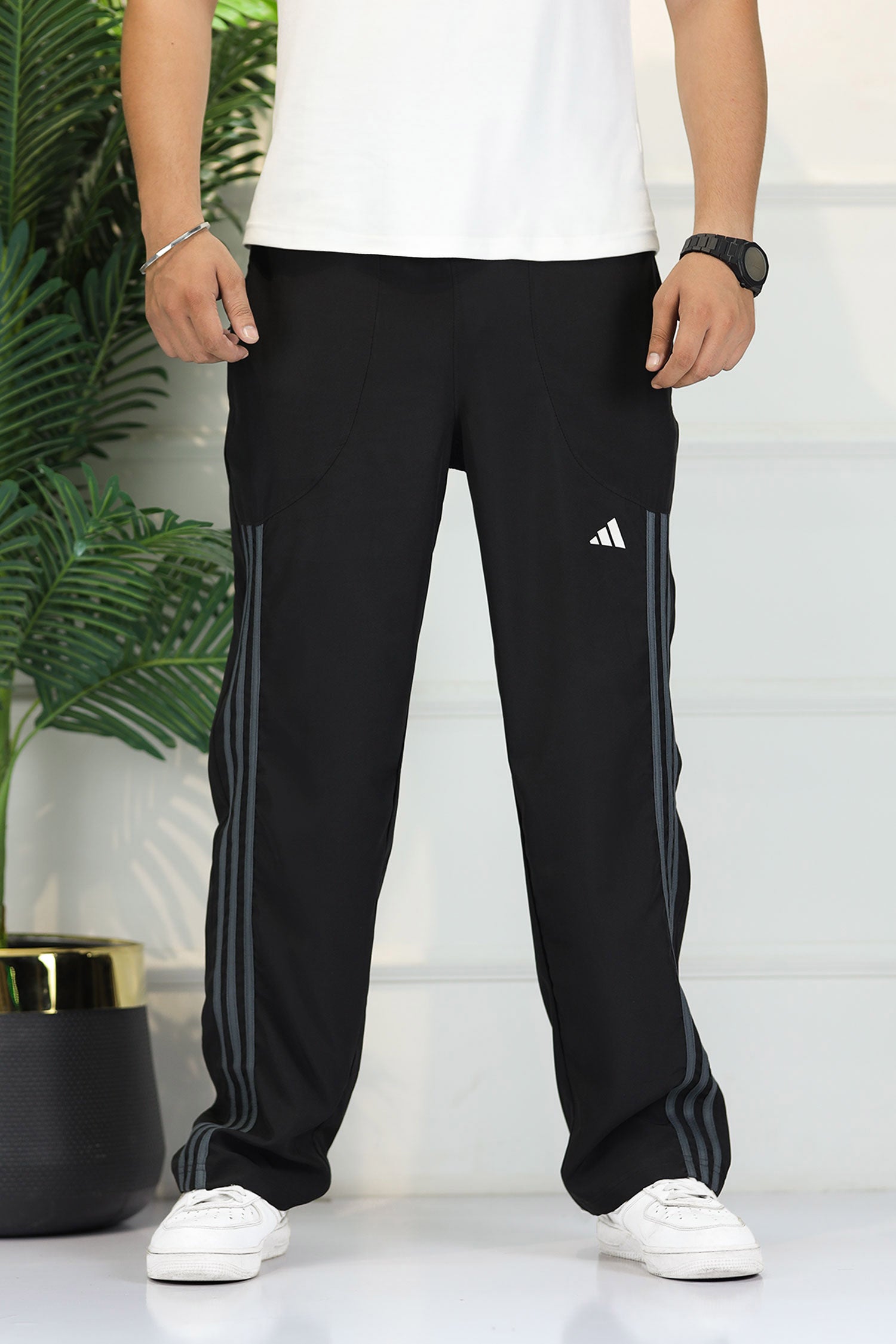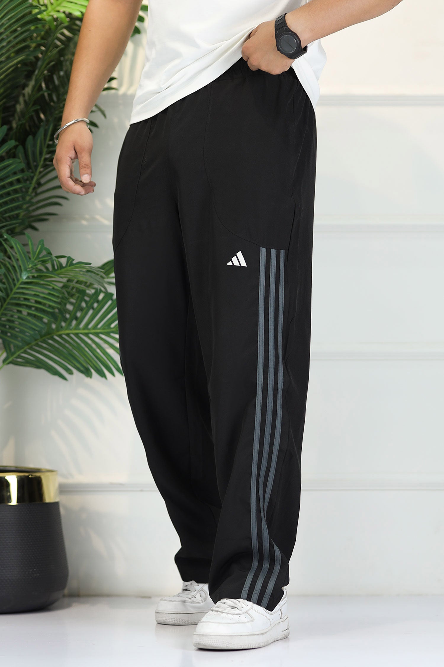 Adds Micro-Tech Half Stripes Loose Bottom Trouser In Black & Grey
