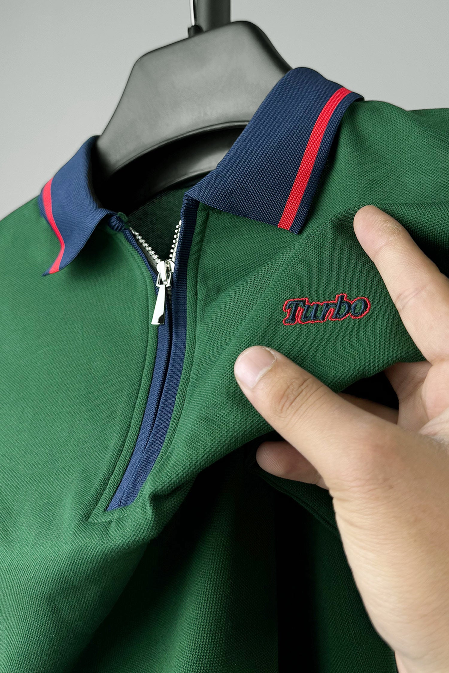 Turbo Record Zip Collar-Block Men's Polo Shirt In Green
