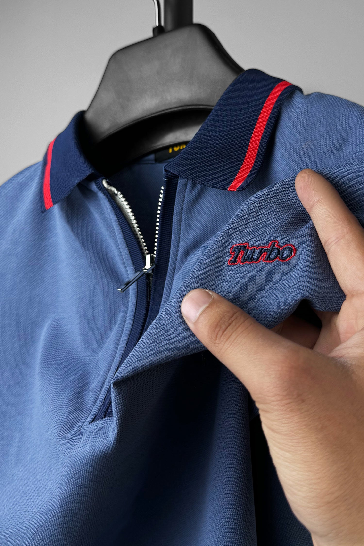 Turbo Record Zip Collar-Block Men's Polo Shirt In Light Blue