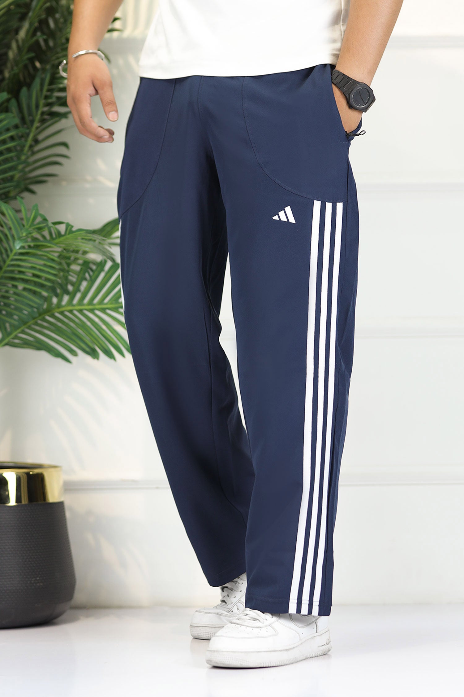 Adds Micro-Tech Half Stripes Loose Bottom Trouser In Navy Blue