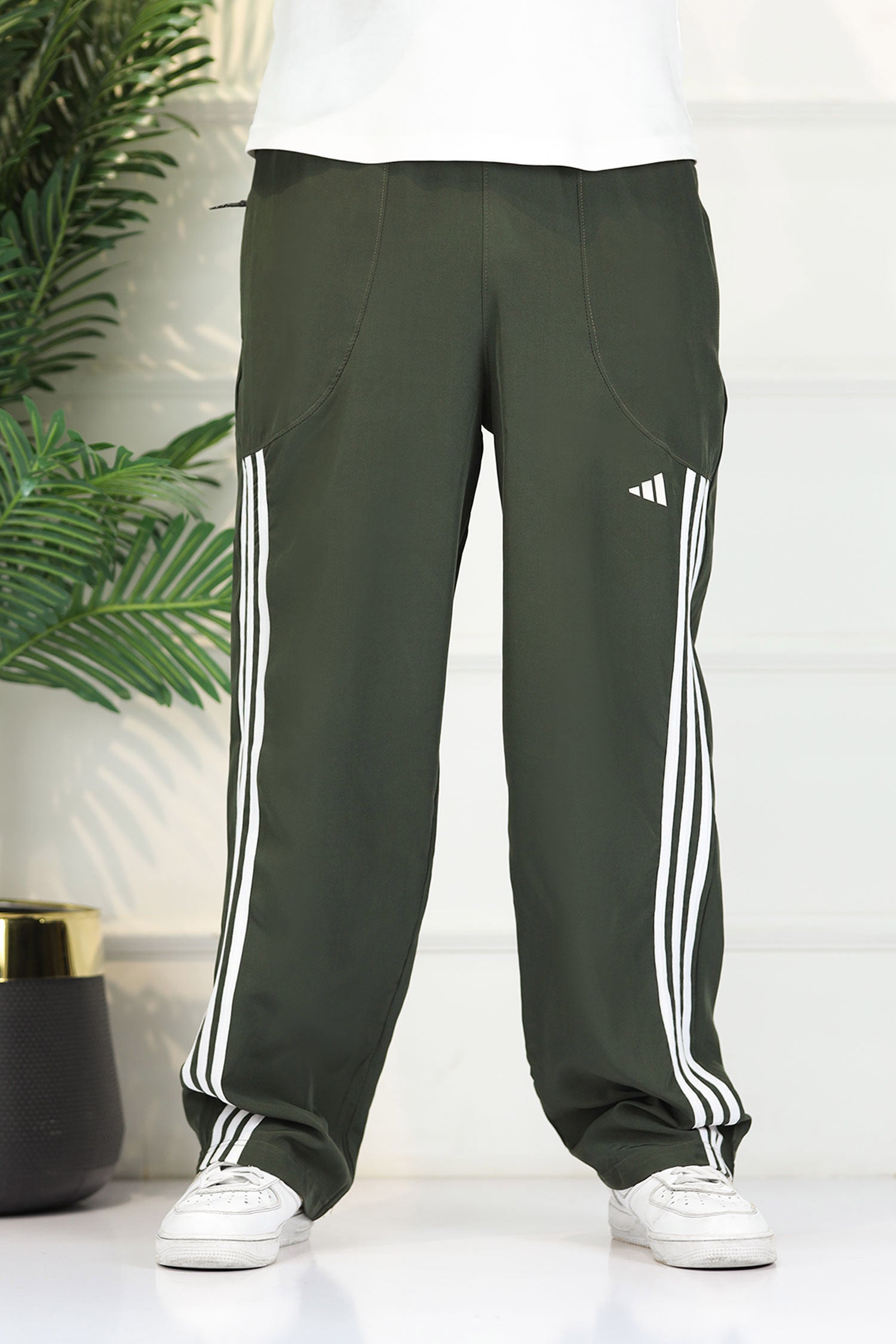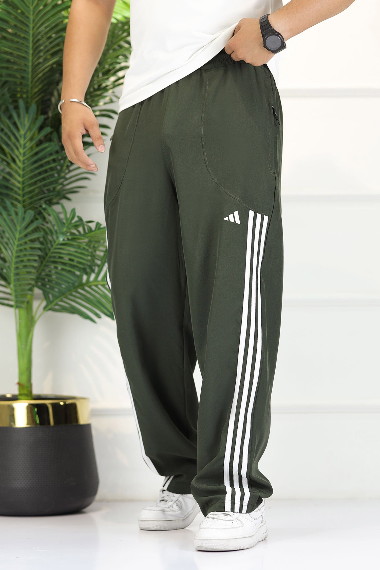 Adds Micro-Tech Half Stripes Loose Bottom Trouser In Olive