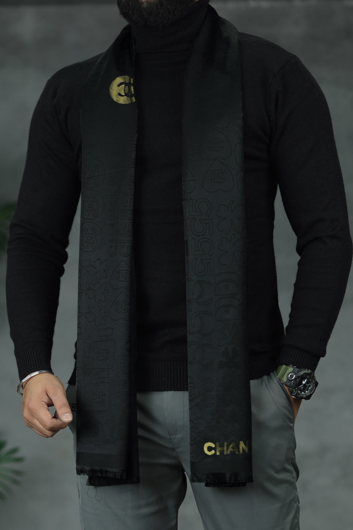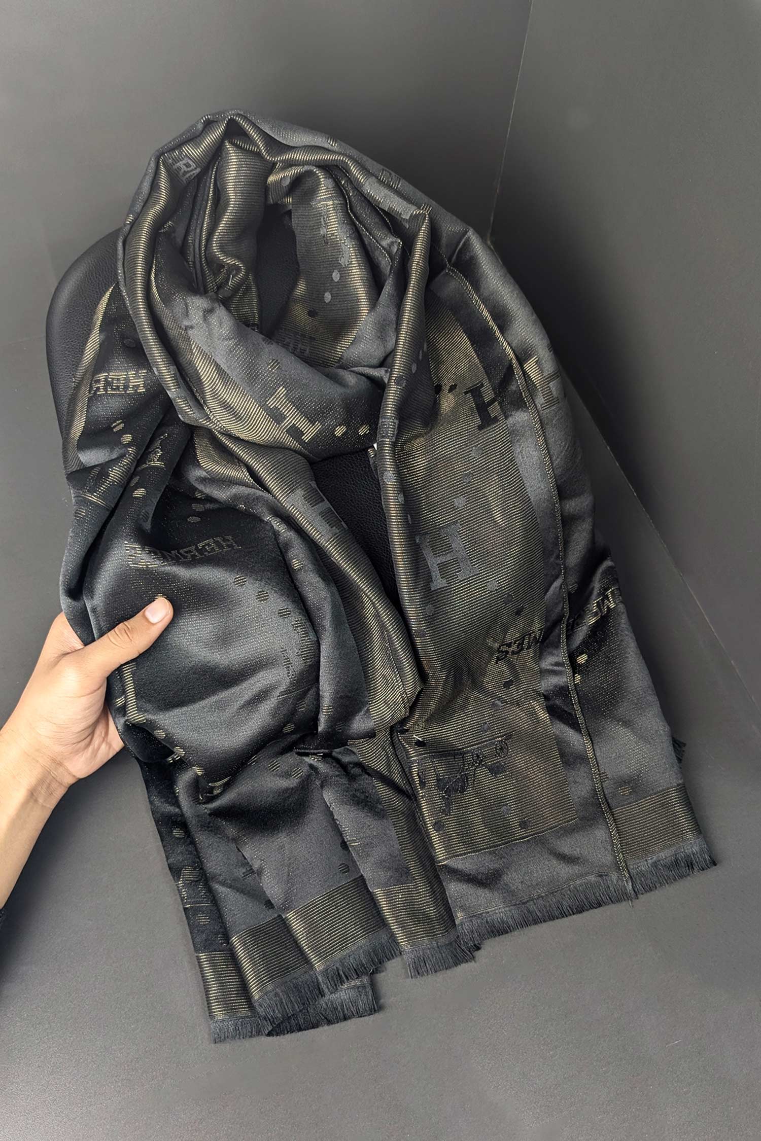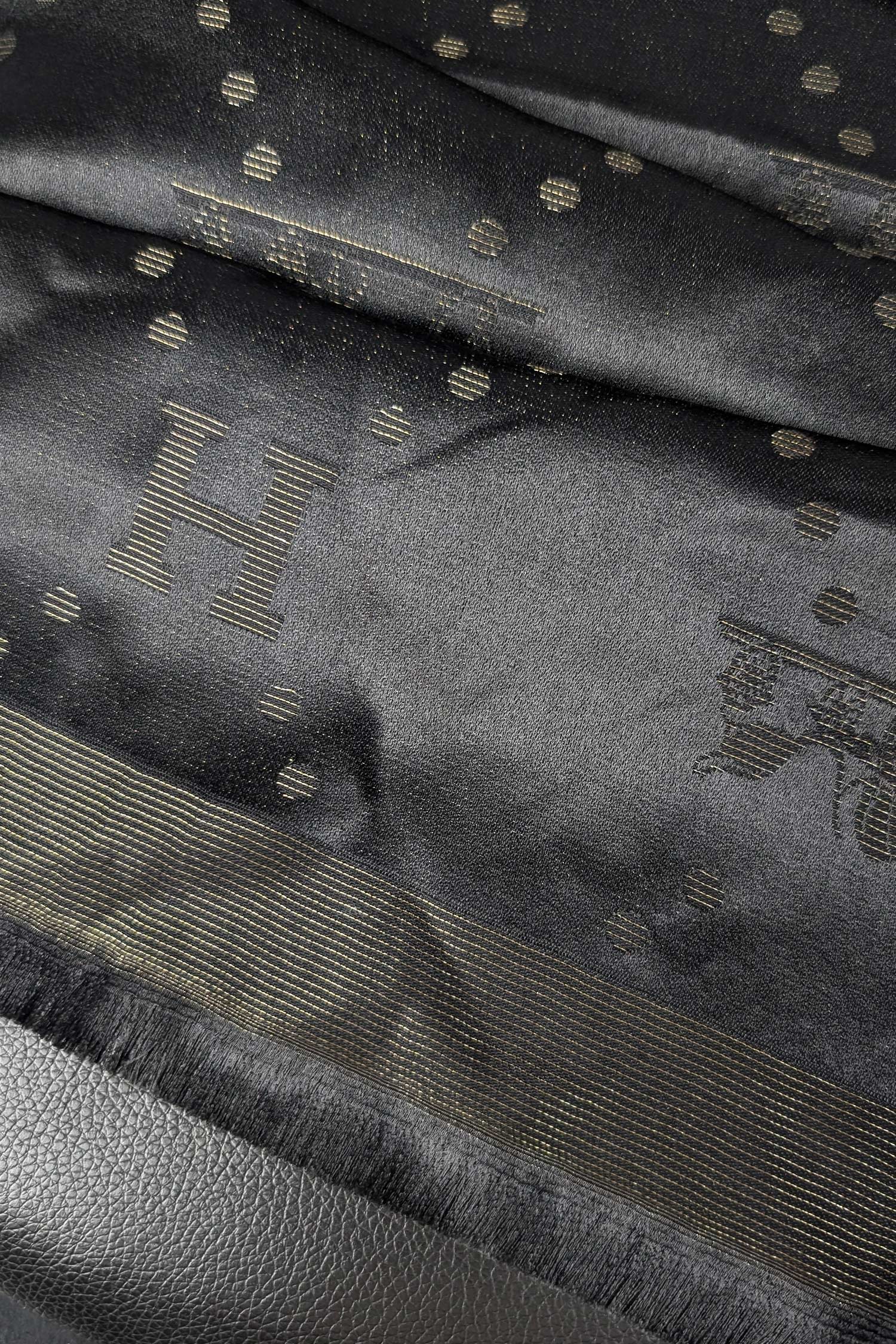 Hrms Beyond Monogram Silk Unisex Scarf In Black & Golden