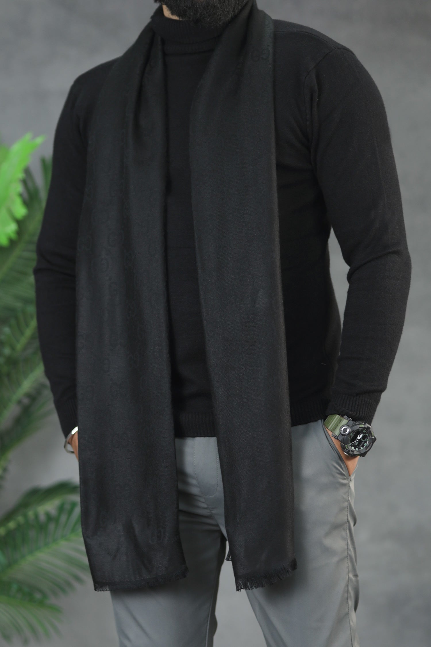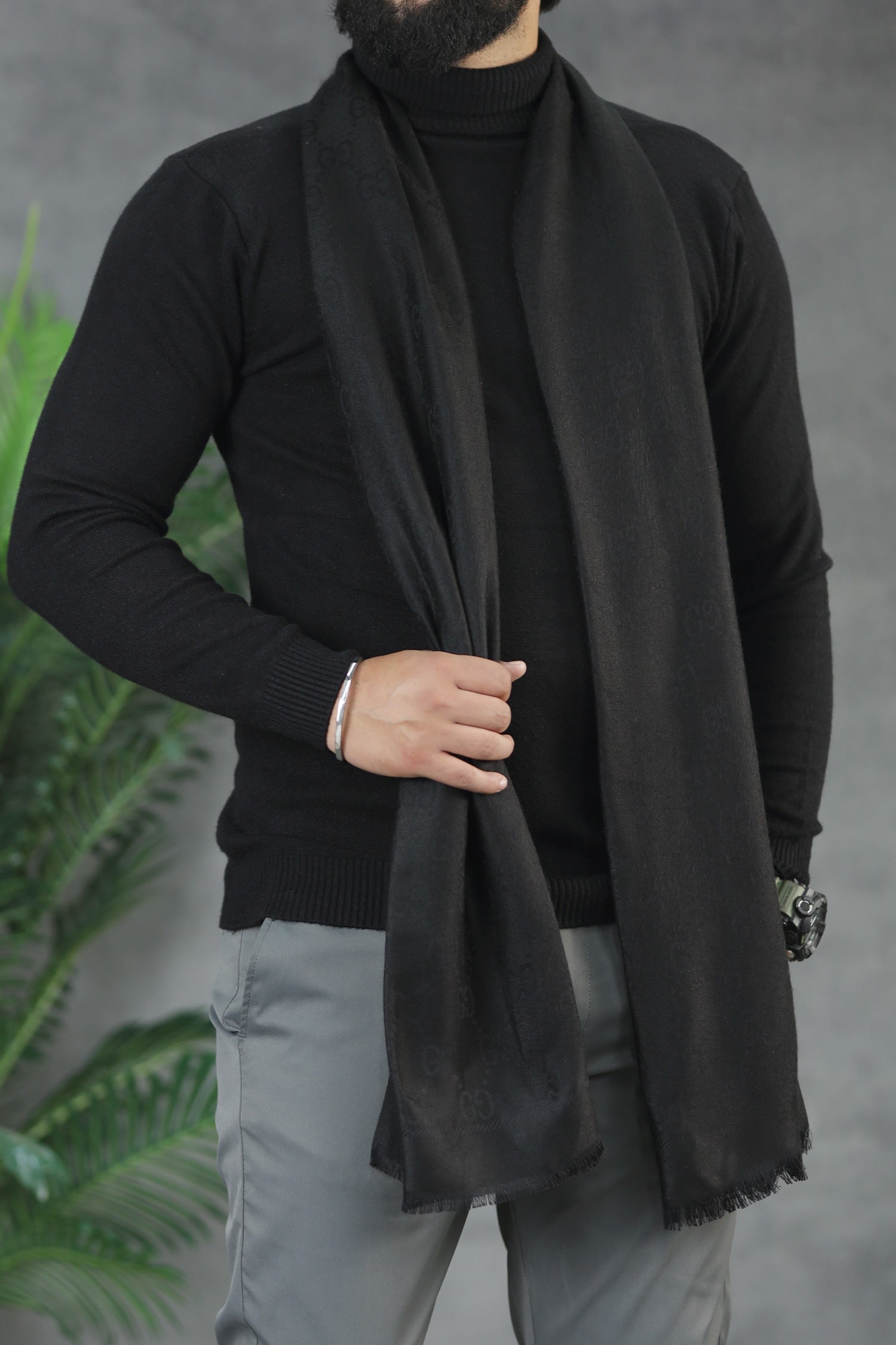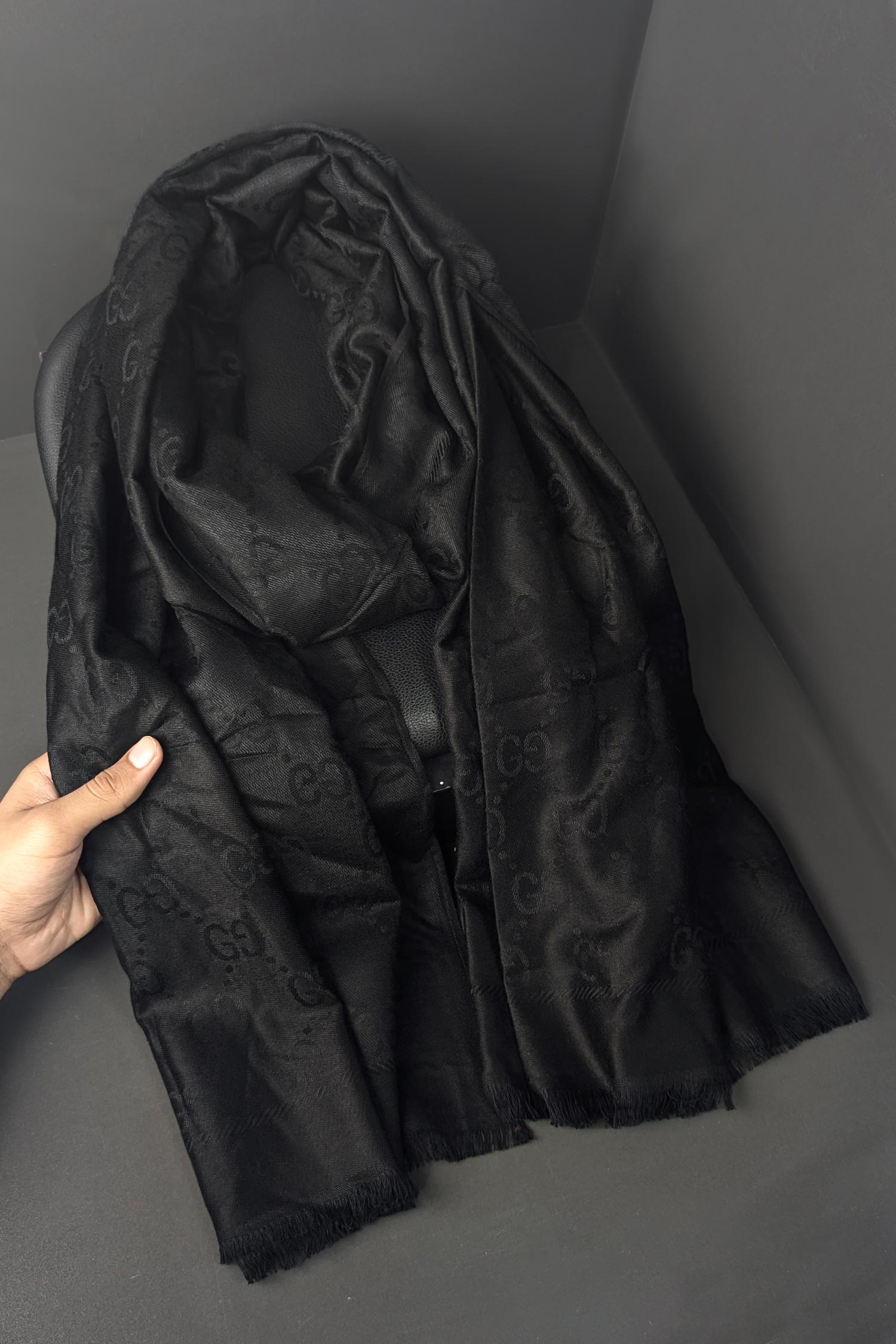 G.Logo Texture Silk Unisex Scarf In Black
