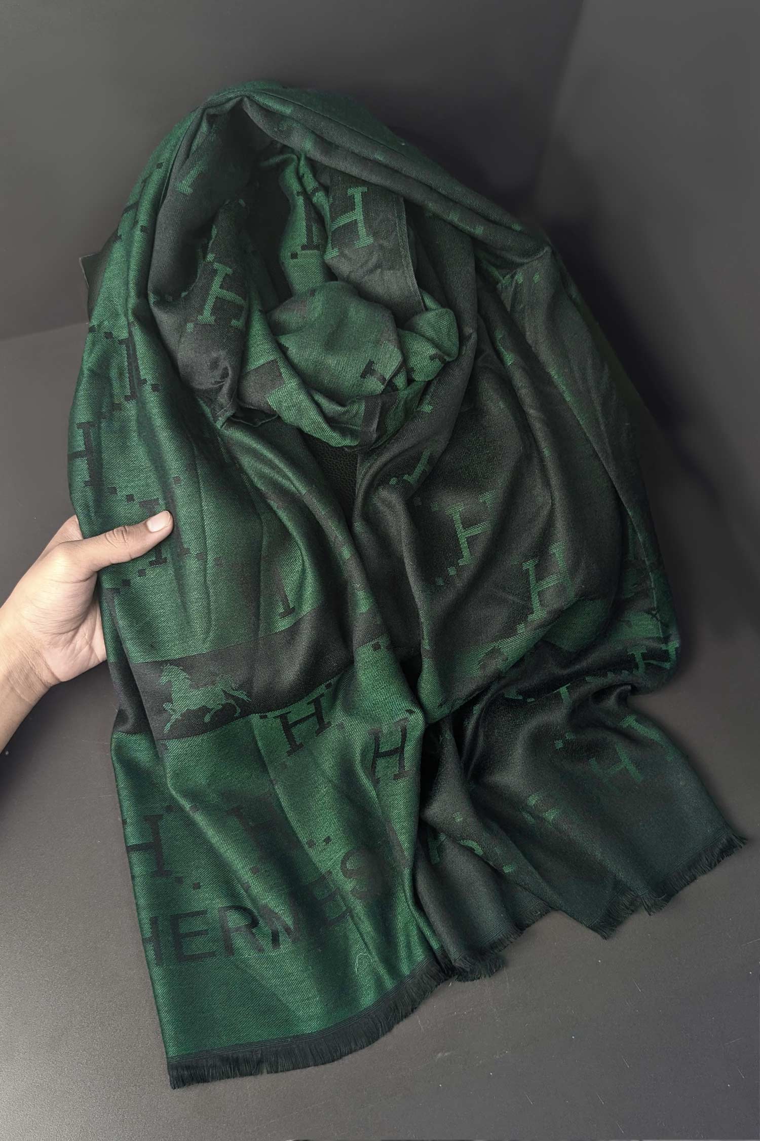 Hrms Premium Silk Unisex Scarf In Green
