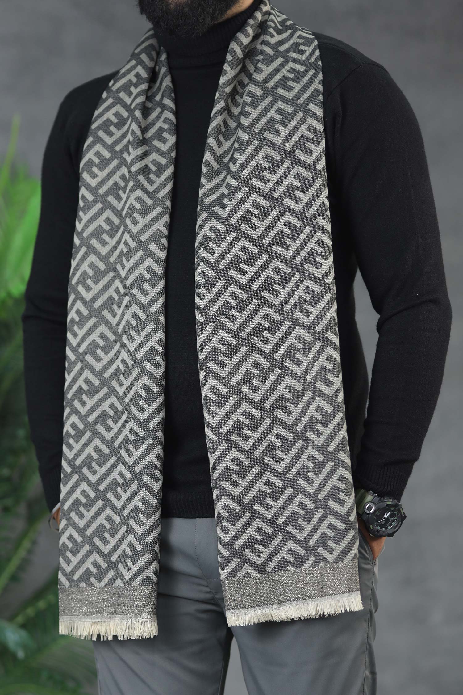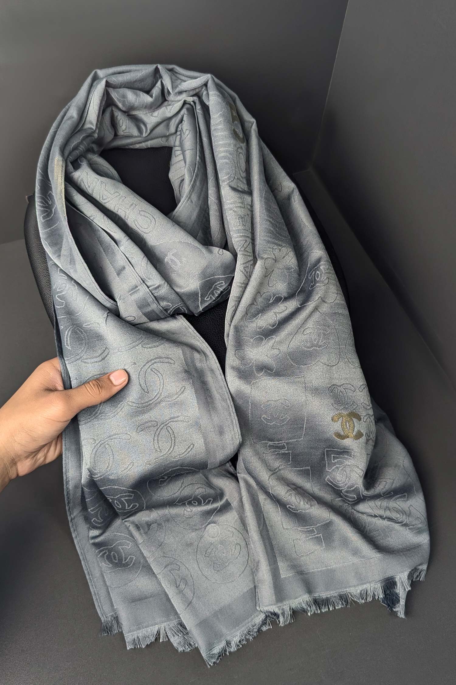 D & G Aesthetic Silk Unisex Scarf in Grey