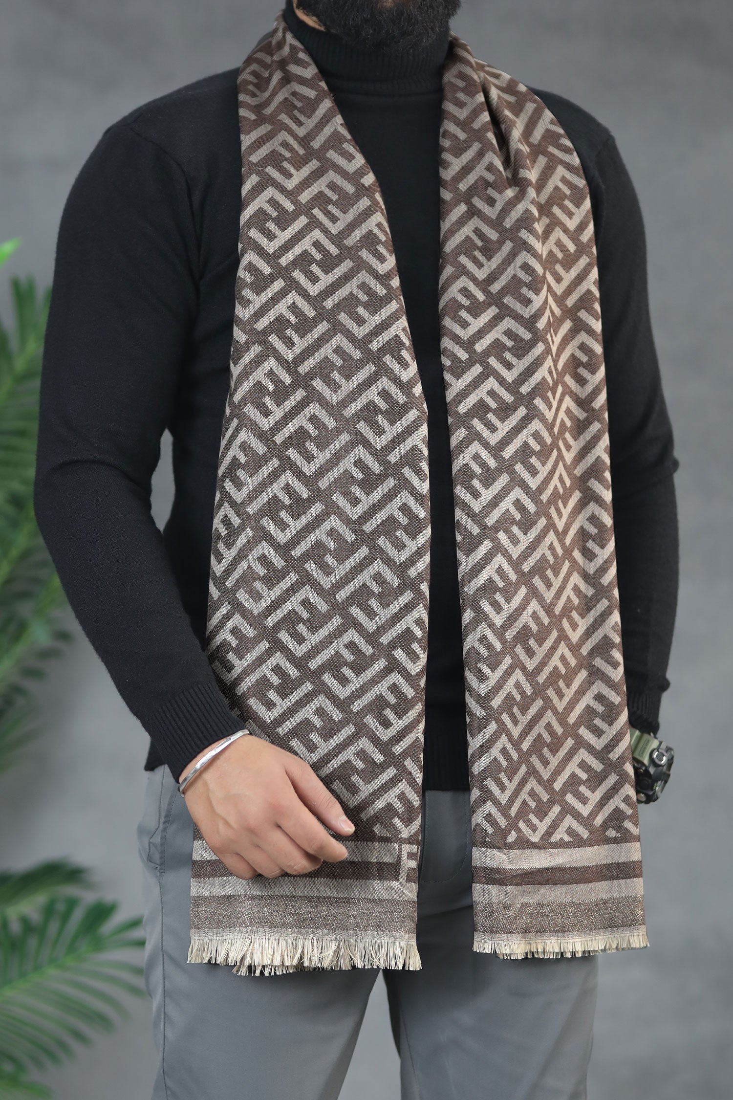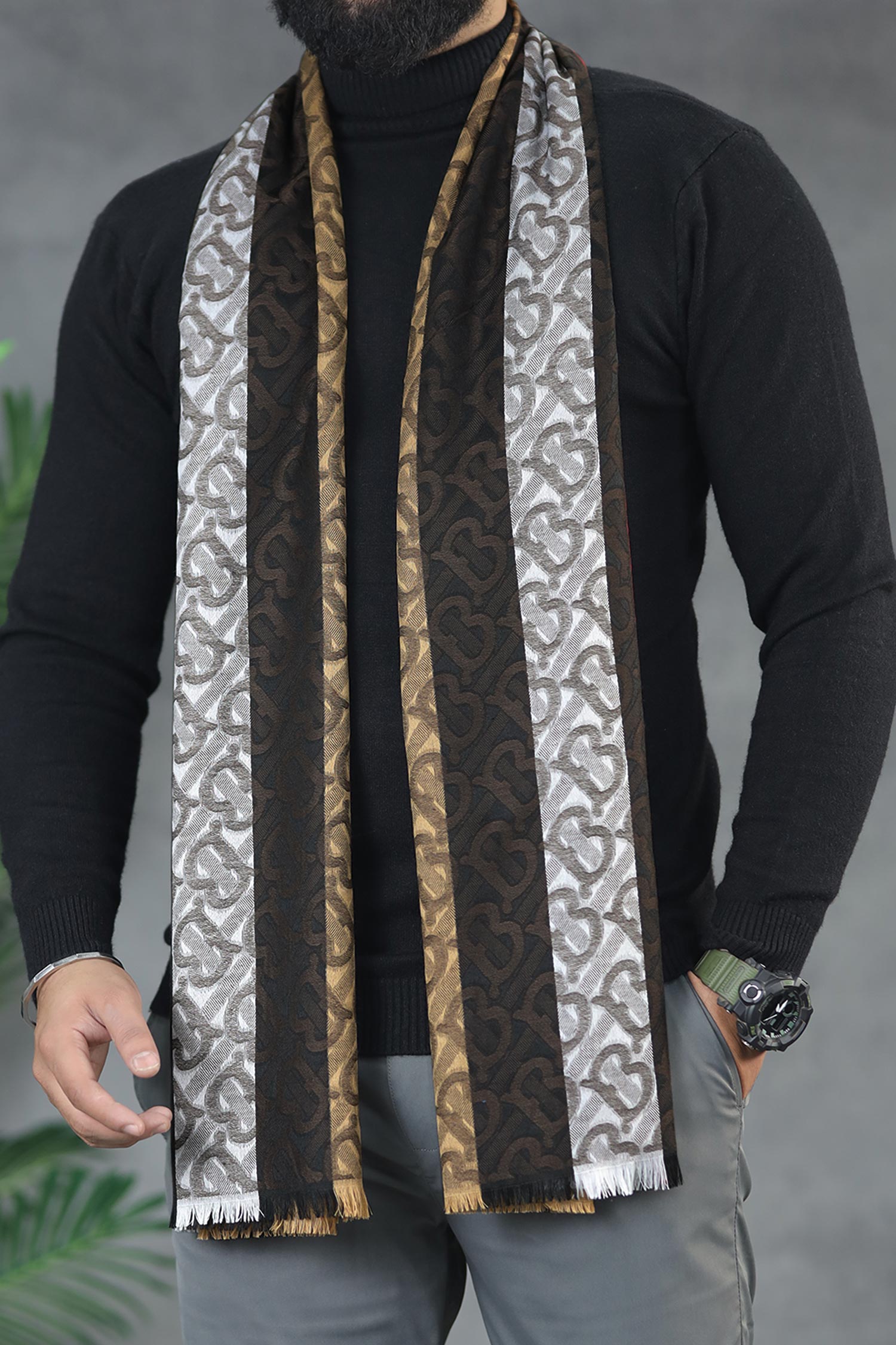 Belnr Reversible Monogram Unisex Scarf In Light Brown