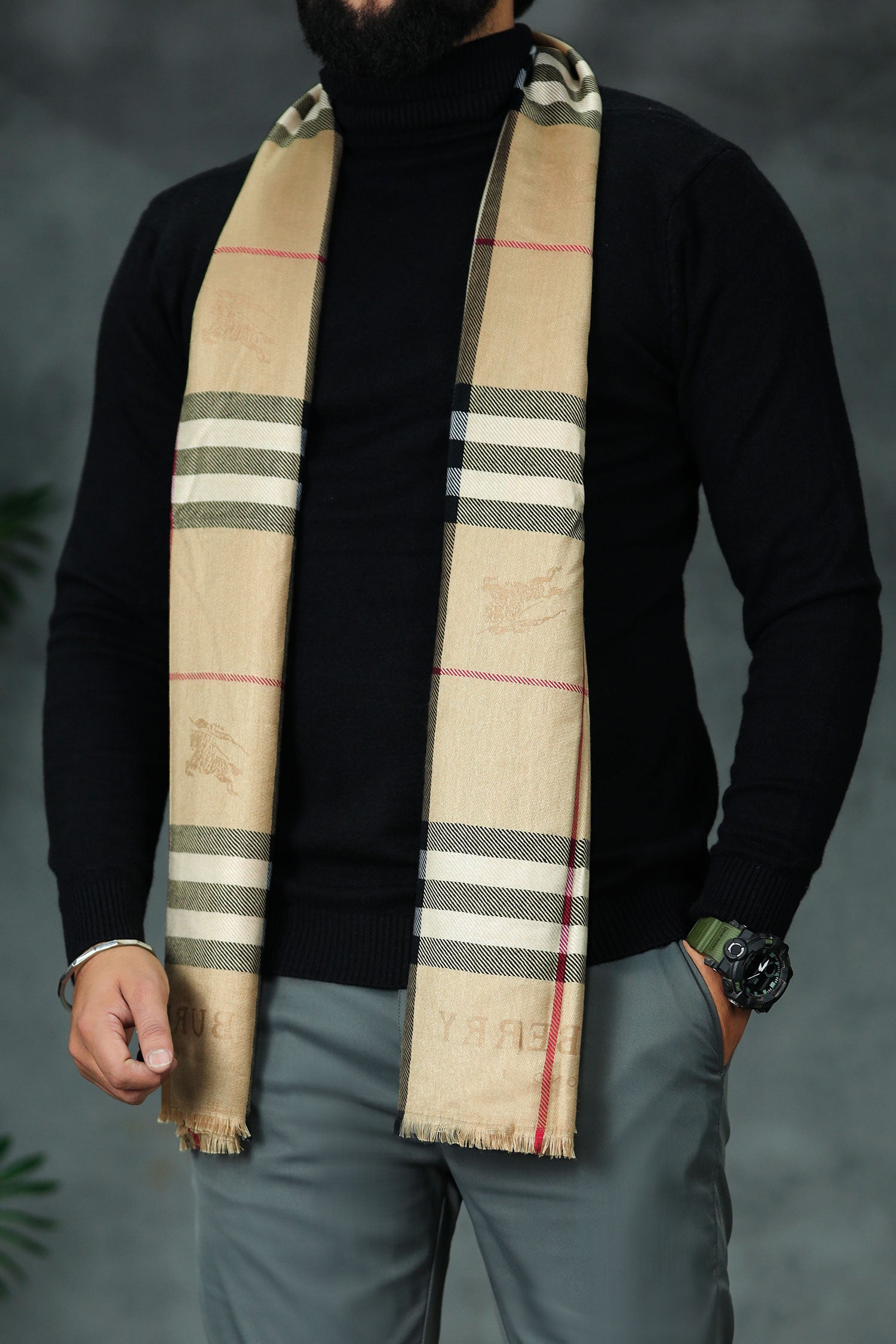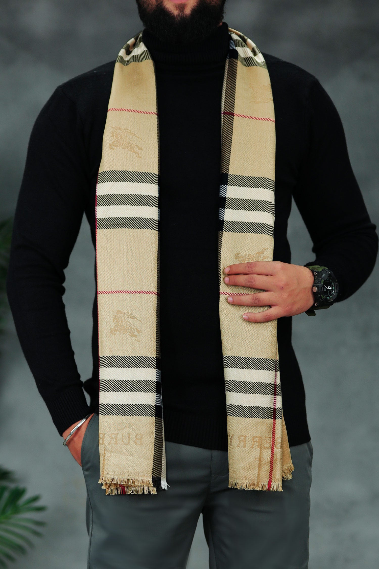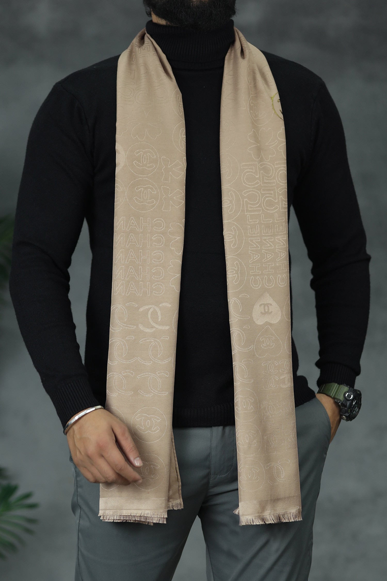Belnr Reversible Monogram Unisex Scarf In Skin