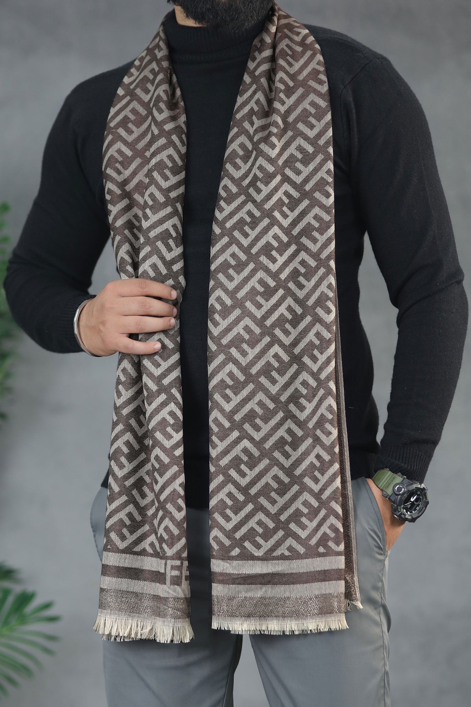 G.Logo Texture Silk Unisex Scarf In Coffee