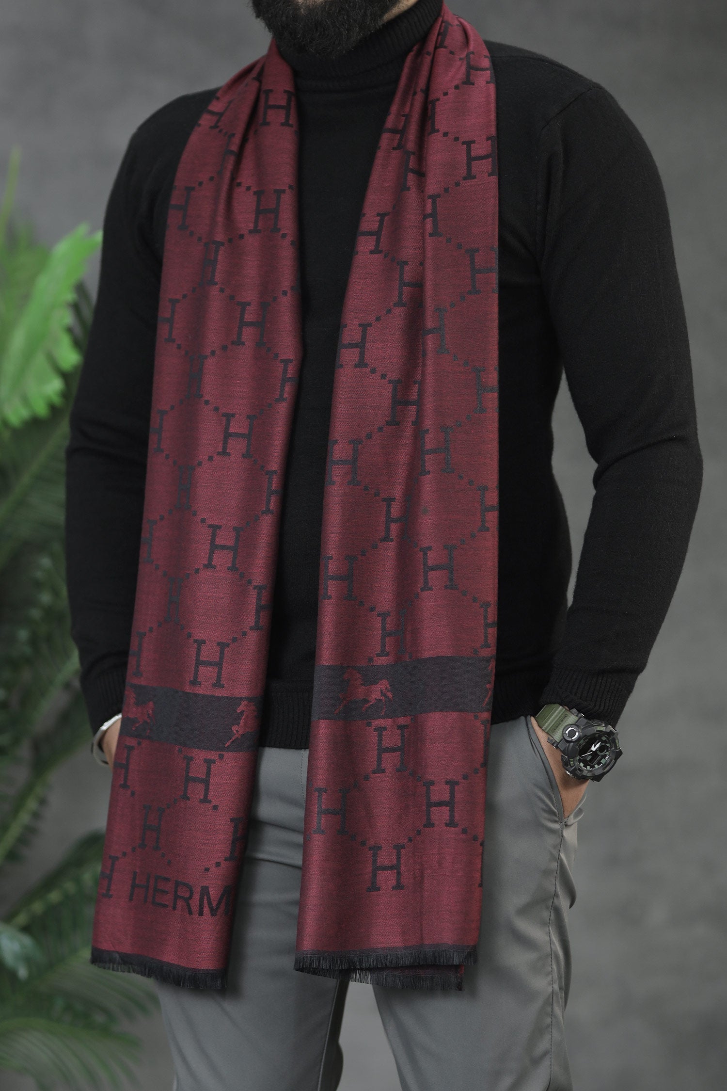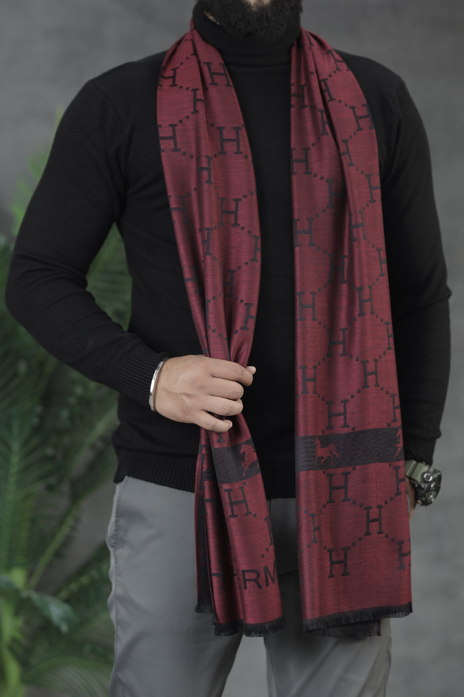 Hrms Premium Silk Unisex Scarf In Maroon