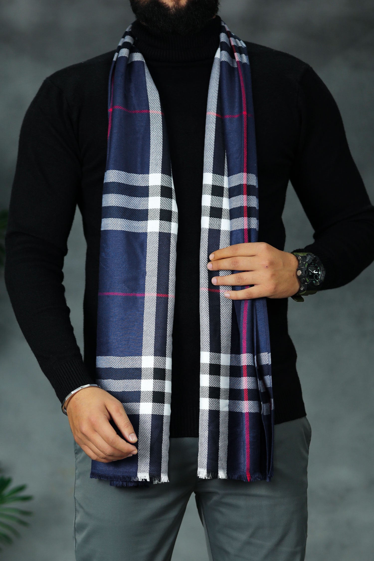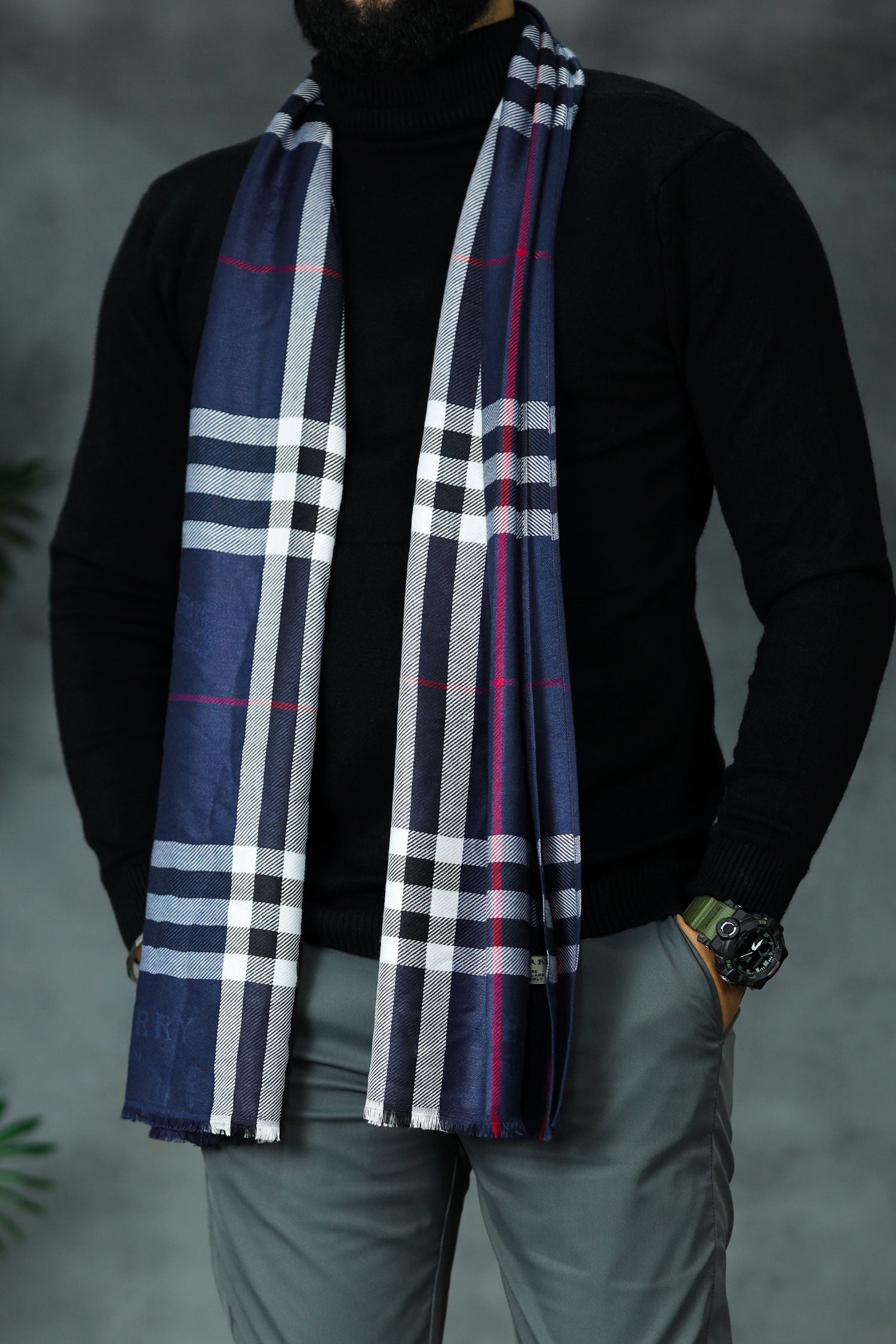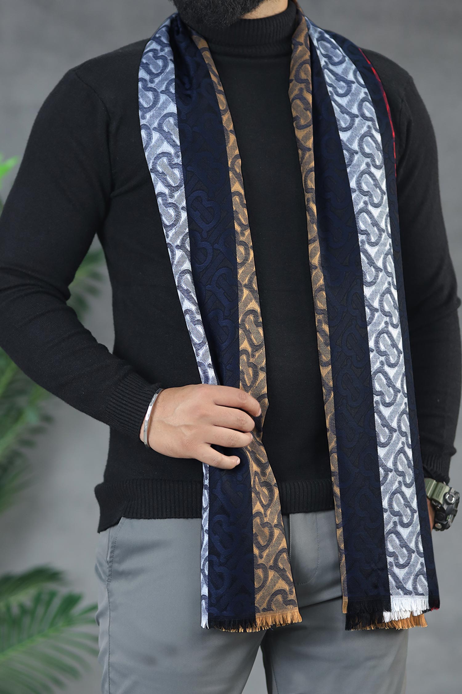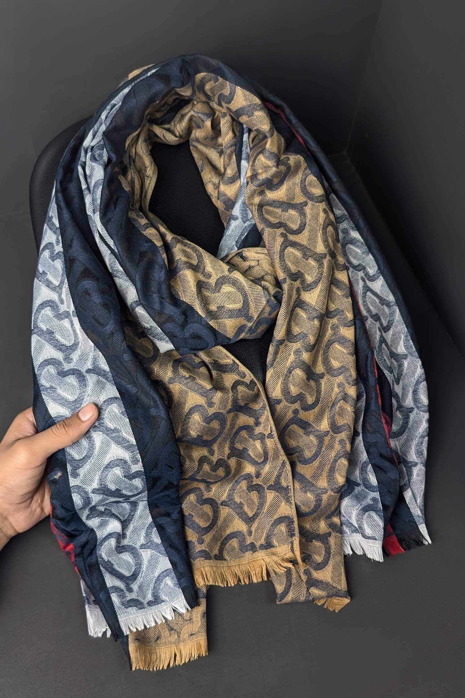 Belnr Reversible Monogram Unisex Scarf In Navy Blue