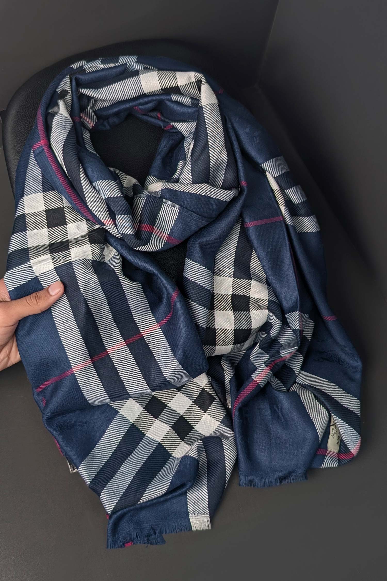 Burbry Unique Silk Unisex Scarf In Navy Blue