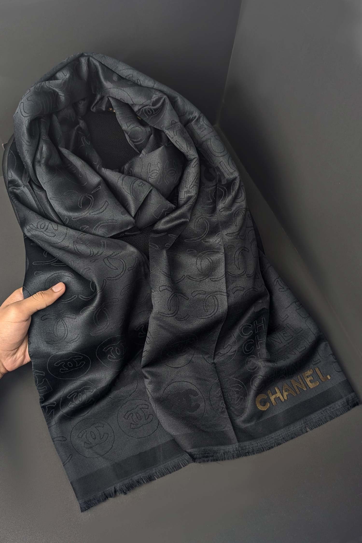Elegant Style Silk Unisex Scarf In Black