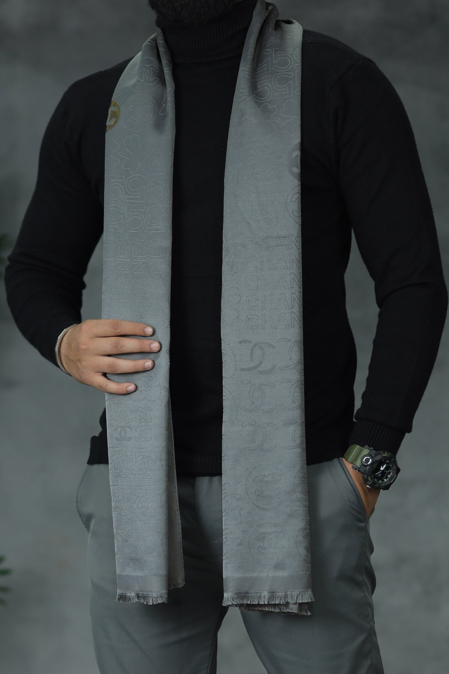 Elegant Style Silk Unisex Scarf In Grey