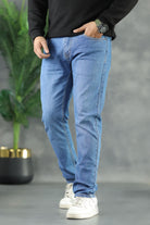 Plain Turbo Slim Fit Turbo Jeans In Mid Blue