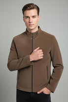 Regular Fit Suede Leather Jacket In Coffee
